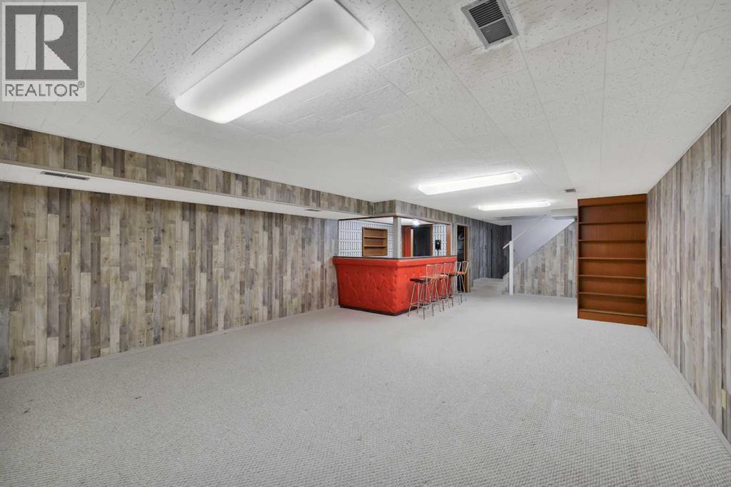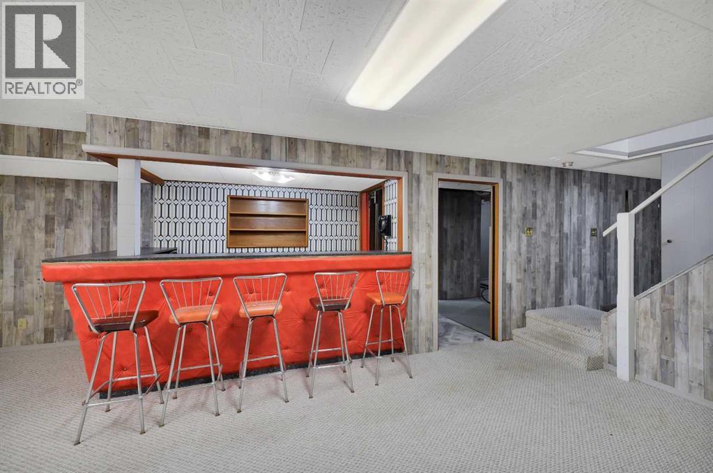 This bright 3+1 bedroom, 2-bathroom bungalow offers great potential and immediate possession. The bright and open-concept living/dining room is flooded with natural light from the floor to ceiling windows and has a walkout to the back deck—perfect for entertaining or relaxing outdoors. The kitchen has a generous amount of solid wood cabinets and plenty of counter space, including a convenient peninsula. Downstairs you have a large rec room, complete with a built-in vintage wet bar. There is a fourth bedroom, office or kids play room, a 4 piece bathroom and ample storage space. This home also has a detached double garage, a front paved driveway (parking for 2), central air conditioning and a shed, while the yard is beautifully landscaped with trees and shrubs. (id:53676)