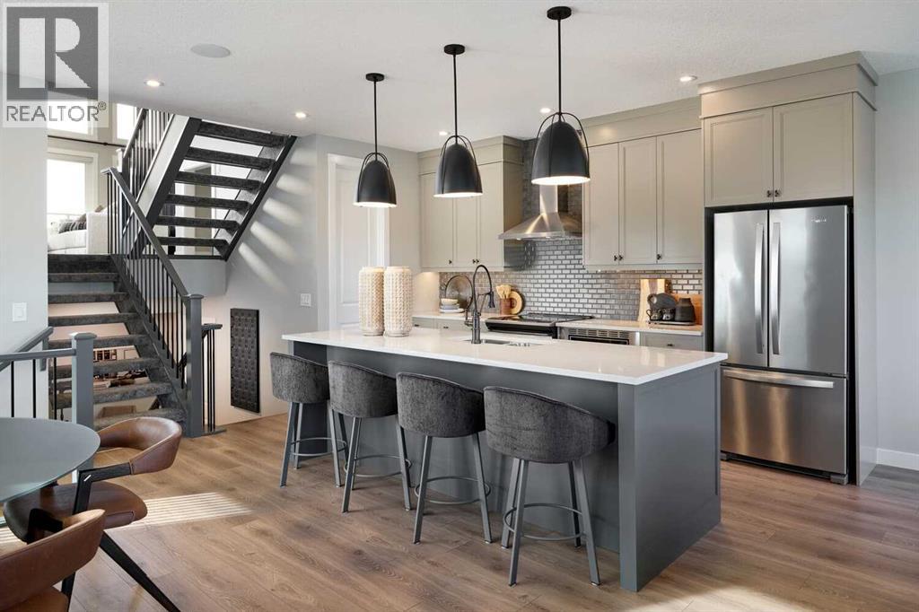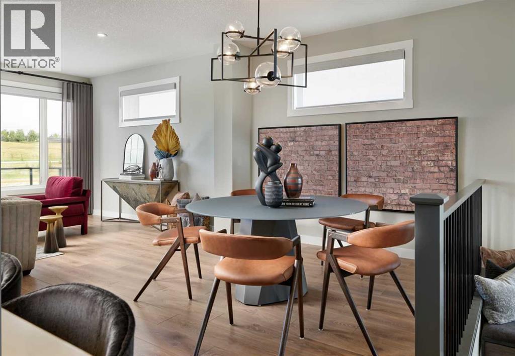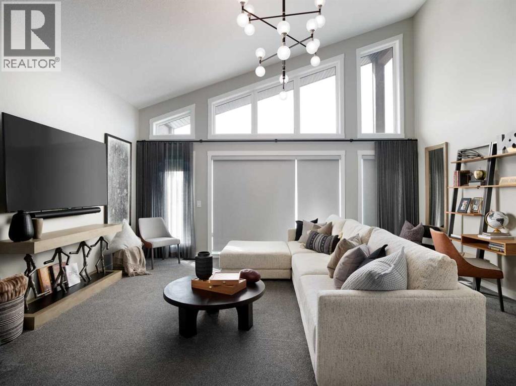 Nestled in the beautiful community of Pine Creek, this brand new four-level split, The Hudson, built by Brookfield Residential, features nearly 2,200 ft2 of developed living space + an undeveloped basement that awaits your imagination and design touches. Featuring 2 living spaces, a home office/flex space, 3 bedrooms, 2.5 bathrooms and plenty of living space, this beautiful family home provides the nostalgia of a four-level-split with the openness you desire in a modern home. Situated on a sunny lot with an ideal south-facing backyard, this home is beautiful both inside and out, giving you plenty of natural light all year long and optimal sunshine in the backyard throughout the summer. The bright and open main level features a gourmet kitchen complete with built-in chimney hood fan, built-in wall oven & microwave, and a gas cooktop. The kitchen is complete with a large walk-in pantry, providing ample storage. The central kitchen overlooks the living and dining areas - making it the perfect entertainment space. The main level is complete with a large flex room with doors, ideal for a home office space, and lastly a large mud room and 2 pc powder room round out the main level. Up a half set of stairs is the expansive bonus room with vaulted ceilings and access to the private balcony off the front of the home. With the main living area just a few steps down, the open concept allows for separation without compromising the open feel and making it feel closed off. Up another half set of stairs, you'll find the primary bedroom complete with a walk-in closet and 5pc ensuite bathroom including a soaker tub, walk-in shower, private water closet and dual sinks. The upper level is complete with two additional bedrooms, a convenient 5 pc main bathroom with dual sinks and a full laundry room. Situated on an incredible lot and featuring beautiful design throughout, this brand new home includes full builder warranty as well as 10 year Alberta New Home Warranty with countless amenit ies nearby! *Note: Photos are from a previous show home and are not an exact representation of the property for sale. (id:53676)