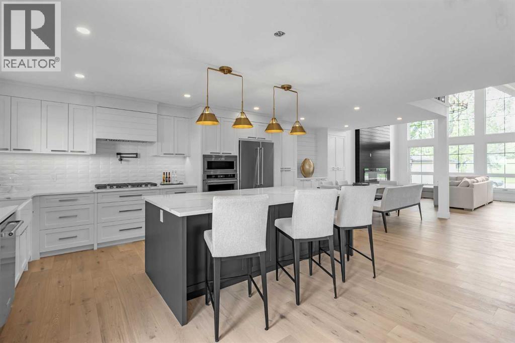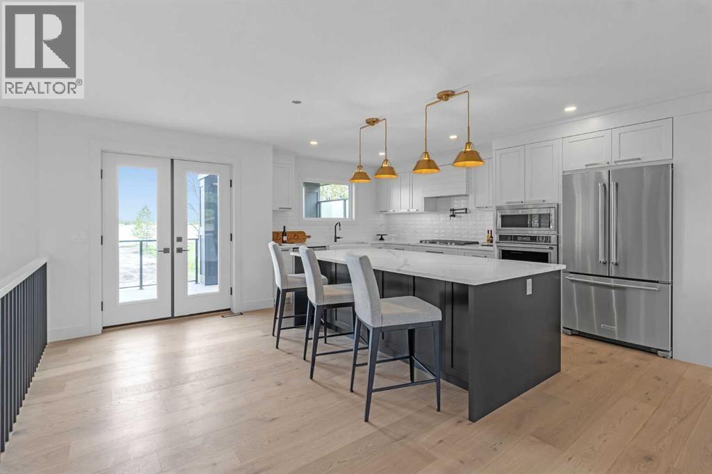 INSTANT EQUITY OF OVER 300K PLUS QUICK POSSESSION HOME !!! A CUSTOM DESIGNED LAKE FRONT MARVEL by SuiGeneris Homes! COMPLETELY RENOVATED DOWN TO THE STUDS WITH ALL NEW ELECTRICAL WIRING, PLUMBING, WINDOWS, SIDING, HUGE MAIN FLOOR DECK,MASTER SUITE PRIVATE LAKE FRONT DECK, Epoxy finish on garage floor. Oversized 2 car garage with epoxy floors, NEW FLOORING, NEW GARAGE DOOR, NEW HVAC, ALL NEW ROOFING, WINDOWS, DOORS, SPRAY FOAM INSULATION THROUGHOUT THE HOUSE AND MORE! COMPLETED WITH A NEW FLOOR PLAN AND ADDITION TO THE HOUSE. Sitting on a HUGE LOT THAT IS RIGHT ON THE LAKE with over 4,200 sq ft of living space. This well planned floor plan offers 5 Beds, 1 flex area, 5.5 baths & an attached OVERSIZED 2 car Garage. 3 ENSUITE BEDROOMS!!! ONLY 10 MINUTES TO/FROM CALGARY. The professionally designed interior is an elegant balance of light tan hardwood floors with white and grey walls and black finishing. The combination of Large windows and Vaulted ceilings in the living areas and bedrooms give lots of natural light to the living areas. In addition to the lake views, enjoy the views of the golf course from 2 bedrooms and a loft on the upper floor. Other features include Paved, drive through driveway, rich combination of Smooth Acrylic Stucco, stone & batten boards on exterior, Custom Cold Air Return Grills, Built in custom closet systems, ship lap feature walls, 2 fire places on main floor and one in master bedroom, Roughed-in Smart monitoring systems, Hardwood Flush Mount Vents in hardwood areas, open riser stairs, 5” Engineered Hard Wood on main floor, LVP basement floors and mudroom, premium carpet, Custom Shower Base with tile to ceilings in all showers, Premium Delta Plumbing package, 36” lower cabinets. All vanities have upgraded drawer style fronts, 8” Stone back splash, High efficiency Tankless Water Heater, Roughed-in Garburator, roughed-in Central Vacuum, High Efficiency Furnace & Smart Thermostat, BBQ Gas line and roughed in garage heater. The kitchen feat ures include a deluxe Kitchen Aid appliance package with waterline to the fridge. Offering Quick and easy access to highway 16, Downtown Calgary, lots of shopping at the nearby East Hills Mall, restaurants, nearby schools and other conveniences. Drive through drive way with fully completed landscaping. MOVE IN READY HOME. READY FOR QUICK POSSESSION (id:53676)
