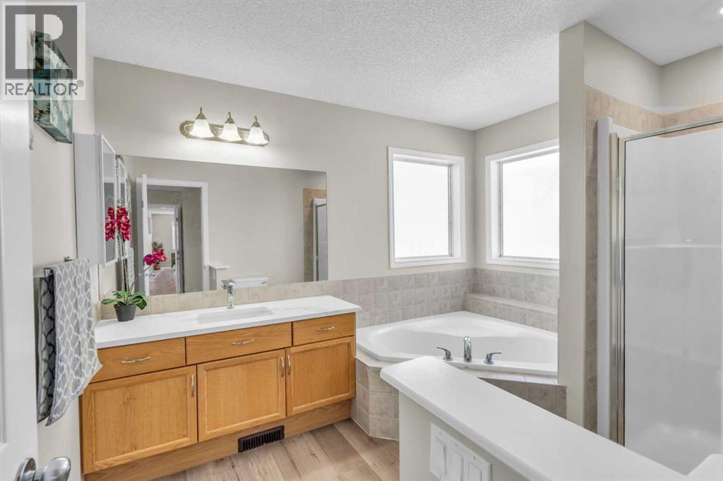 Welcome to this beautifully updated family home in the heart of Bridlewood, offering over 2,589 sq ft of finished living space across two levels and a fully developed basement. With a SOUTH-WEST facing backyard, the home is bathed in sunlight—an orientation often associated with calm, clarity, and positivity. Thoughtful updates have been made throughout, including quartz countertops in the kitchen and bathrooms, modern fixtures, a fresh interior paint in a soft, neutral palette, brand new LVP flooring throughout., two NEW double-glazed Low-E windows in Bonus Room upstairs (June 2025). The bright, spacious kitchen provides ample cabinetry, updated finishes, and a great layout for both everyday meals and entertaining. The open-concept dining area is perfect for hosting cozy family gatherings, filled with natural light from large windows and patio doors that open to a sun drenched backyard. This private outdoor space is ideal for summer evenings, with room for children to play and adults to relax. One of the home’s standout features is the abundance of living spaces—three family rooms in total—offering flexibility and comfort for every member of the household. Upstairs, you'll find three generously sized bedrooms, including a bright and spacious primary suite complete with a 4-piece ensuite. A large bonus room offers the perfect spot for a cozy family lounge or home office, and the convenient upper-level laundry adds ease to daily routines. The fully finished basement extends the living space with a fourth bedroom, an additional full bathroom, and a versatile recreation or games room—ideal for entertaining or relaxing. Exterior enhancements include stonework on the left side of the home and an extended driveway on the right, offering both curb appeal and added functionality. Located just a few minutes walk to Bridlewood Elementary School and Glenmore Christian Academy, 15 minutes to Monsignor JJ O'Brien Catholic School, parks, transit, Sobey's, medical and dental servi ces, and restaurants, the location makes daily life easy and convenient. You'll also be just minutes from the C-Train station, Fish Creek Park, and Spruce Meadows with easy access to Stoney Trail and the new Ring Road. The surrounding neighbourhood is quiet, family-friendly, and filled with a wonderful sense of community. Indeed a home where laughter and conversations flow effortlessly, and the stresses of the day seem to fade away. This is more than just a house—it’s a place where memories are made. (id:53676)