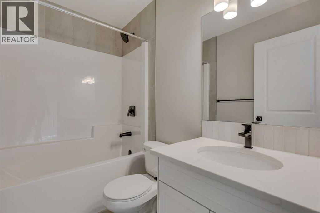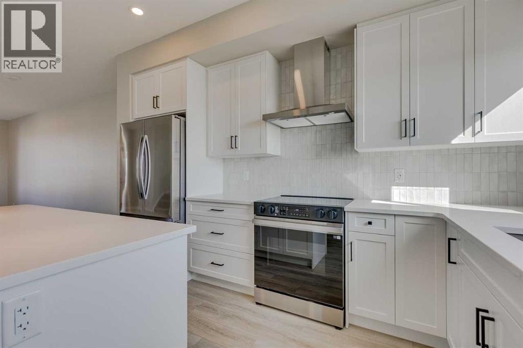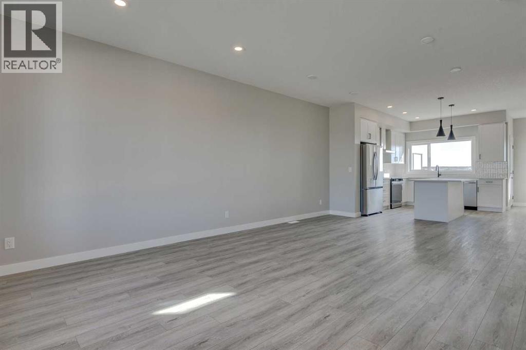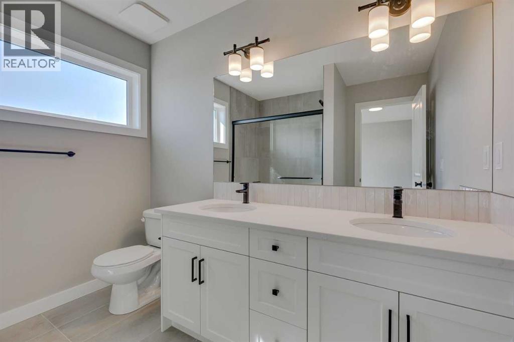 Discover the Eton, a move-in ready home in Chestermere with 1,490 sq ft of stylish living space. This craftsman-style home features Hardie board siding, black-framed windows, and an open-concept layout with luxury vinyl plank flooring. The rear-facing kitchen connects seamlessly to the backyard and includes Satin White cabinetry with black accents, quartz countertops, Samsung stainless steel appliances, a chimney hood fan, a large island, and a picture window above the granite sink. A functional back entry and walk-in pantry add convenience, while the front-facing great room is bright and inviting. Upstairs, the rear primary bedroom includes a dual-sink ensuite, complemented by upper-floor laundry and two additional bedrooms. Situated in Clearwater Park, one of Chestermere’s newest master-planned communities. Photos are representative. (id:53676)