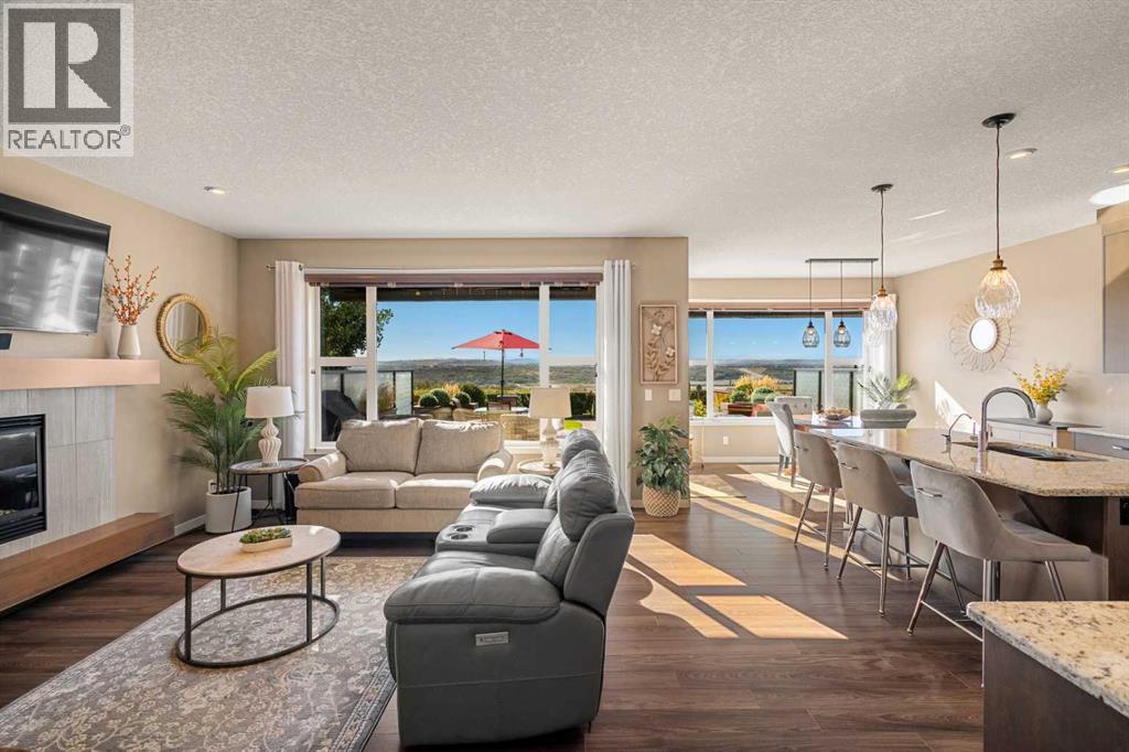 Welcome to 35 Cranarch Terrace – an executive residence in the highly sought-after community of Cranston. Perfectly positioned along Cranston’s Ridge, this home captures breathtaking, unobstructed views of the Bow River Valley, Fish Creek Park and the Rocky Mountains. With direct access to endless walking and biking trails, it offers the ideal blend of natural serenity and urban convenience. Step inside to a bright, open-concept floor plan designed to emphasize space, light and comfort. The main level features soaring ceilings, expansive windows to showcase the panoramic views and a warm living room centered around a gas fireplace. The chef-inspired kitchen is both stylish and functional, complete with granite countertops, rich cabinetry, a large central island, stainless steel appliances, and a spacious walk-through pantry with a built-in dog door that connects seamlessly to the mudroom and garage. A dedicated office space and a dining area that extends to the large low maintenance deck—perfect for morning coffee or evening sunsets! Upstairs, the luxurious primary suite is a true retreat, offering a spa-like ensuite with dual sinks, a walk-in closet with built in shelving, a Mi-Berry Spa Hot Tub and separate shower. Two additional bedrooms, a full bathroom and a versatile bonus room provides plenty of room for family and guests. The upper level laundry comes with custom cabinetry and a drying rack which adds to everyday convenience. The backyard is designed for year round enjoyment, featuring professional landscaping, extra-large composite deck with glass privacy panels, artificial turf, and a private putting green for a low maintenance fun outdoor lifestyle. Additional highlights include an oversized heated double attached garage, Gladiator cabinets, workbench with a matching fridge and central air conditioning throughout the house. All this on a quiet, family friendly location close to schools, shopping, restaurants, the South Health Campus Hospital, and easy acc ess to major roadways. With its spectacular views, elegant finishes, and thoughtful design, 35 Cranarch Terrace SE isn’t just a home it’s a lifestyle. Book your showing today! (id:53676)