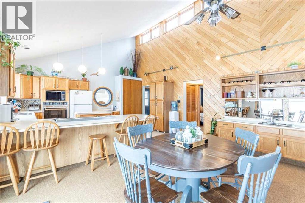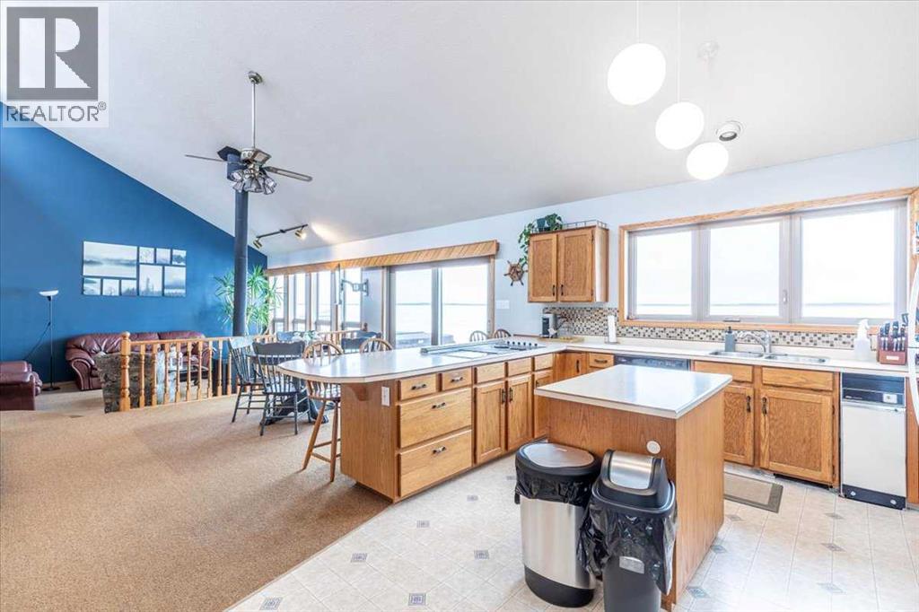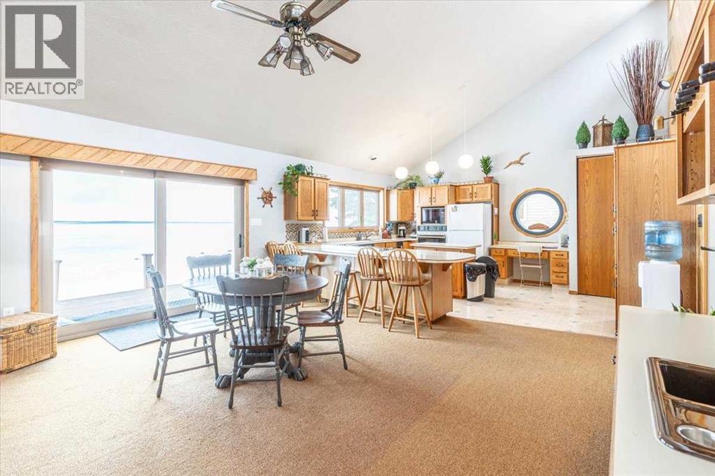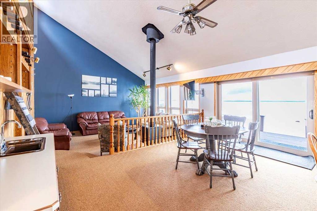 This LAKEFRONT PROPERTY is set up to be enjoyed year round. Inside the 1317.5sq/ft bungalow you'll be greeted by the open style kitchen, Dining room, and Living room. With tall ceilings and lots of windows providing beautiful views of the lake and allowing in natural sunlight. The fireplace and wet bar are located centrally making it a great place to unwind. Three bedrooms, a 4 piece bathroom, and laundry/utility room conclude the interior floorplan. Outside the composite deck wraps around 3 sides of the home with a hot tub that overlooks the Lake. The backyard has 2 storage sheds, a wood shed, and a private fire pit. Completely furnished and Turn Key with New Shingles! This Property is just minutes from the Village of Pigeon Lake that has all your amenities. Close to Schools and Enjoyable year round with lots of winter activities, and just minutes to many different Golf Courses. Currently being used as a Popular AirBnB. Neighboring property is also available allowing you to set up your own Lake Resort! (id:53676)
