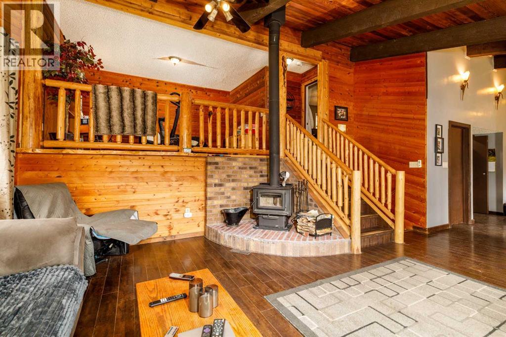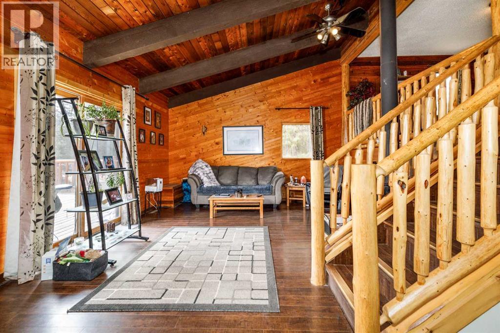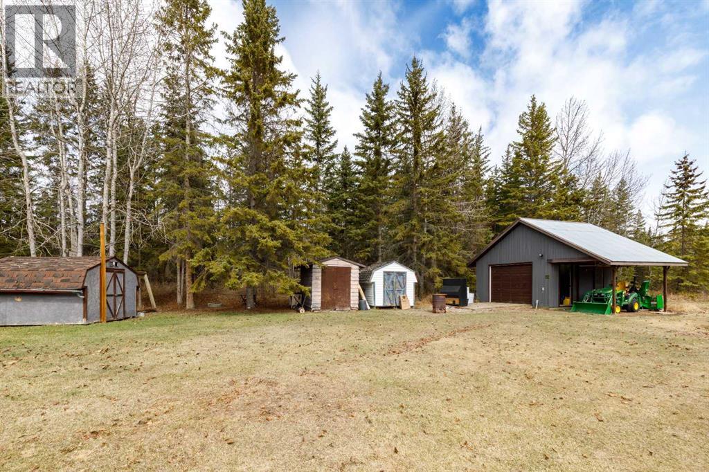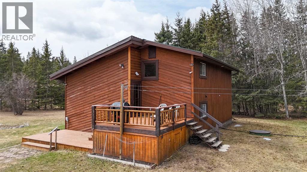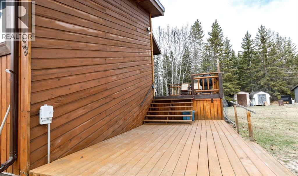 Tired of city living? Looking for a quiet spot? This home is what you need plenty of space to sit back and relax here in a very private setting in the acreage community of Silver Lagoon. Located 20kms from Innisfail and 4kms from a free boat launch at Glennifer lake. The main floor has a nice well lit south facing kitchen space with pantry and main floor laundry. The living room opens up to a large deck and features a wood burning stove with recent Wett inspection and a vaulted ceiling with wood beams . The second floor has a sitting area with log railings looking down on the living room space. The master bedroom with 2 piece ensuite. The lower level has a four piece bathroom and 2 bedrooms one with a walk out to a separate shaded deck space. In the basement there is some room for more development , storage space and one finished room. Recent improvements include new water filtration system, all new Whirlpool brand fridge, stove , dishwasher and LG stacked washer/dryer. There is an another two level deck off the side entrance of the home. There is a detached 14ft x 15ft shop space with power and a covered car port area where the current owner parks his tractor. The property is not fenced but surrounded by trees and backs on a large 11 acer reserve. Owners have installed pet smart system with collar around the property to keep their dog on contained. The homes wood siding has recently been stained and has metal roofing. There is several storage sheds and 2 firepits with lots of room on this 1.9 acre lot for more outbuildings. (id:53676)