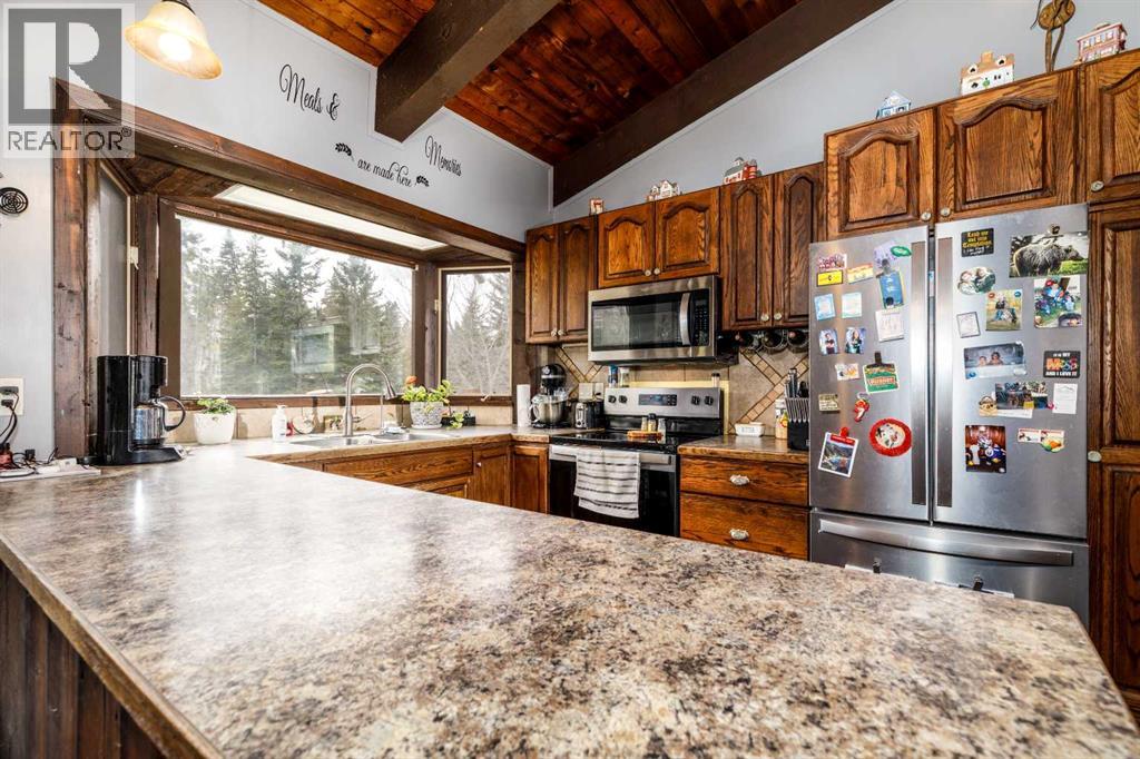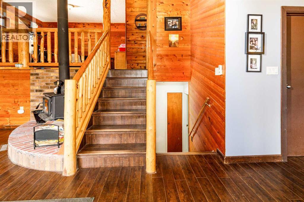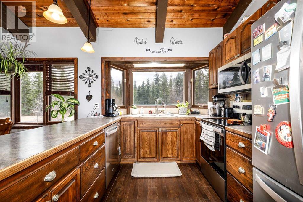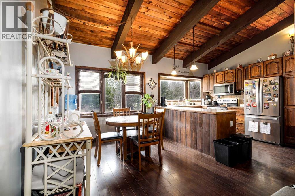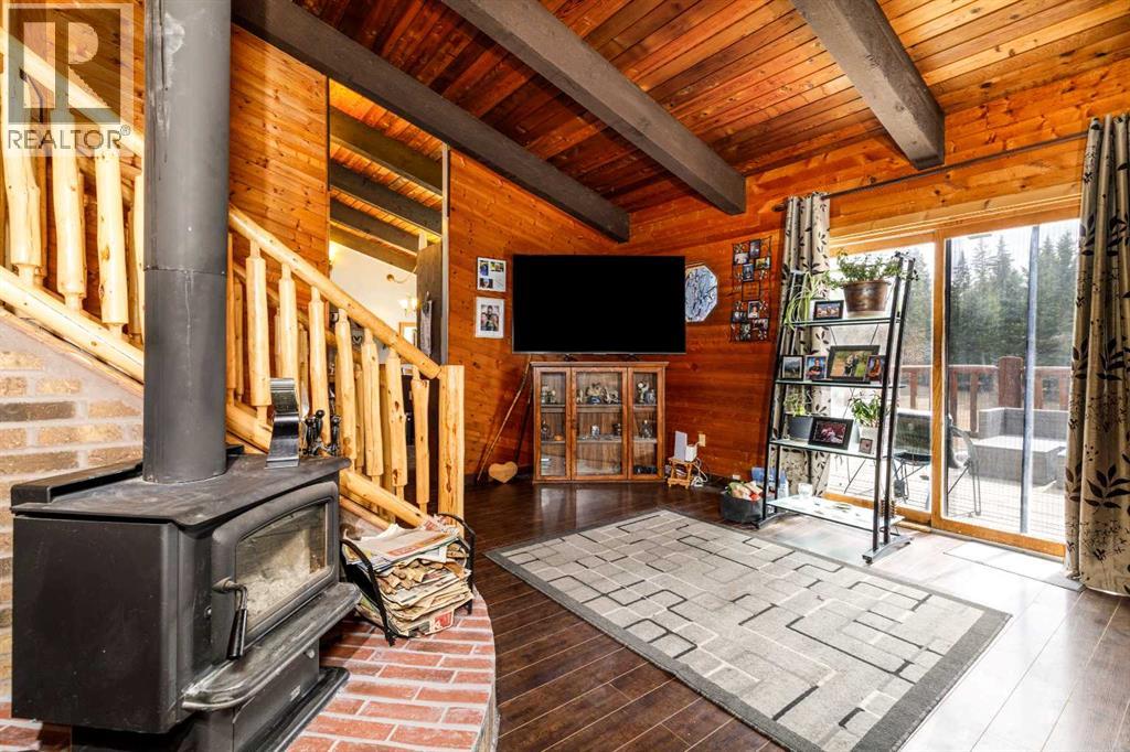 Tired of city living? Looking for a quiet spot? This home is what you need plenty of space to sit back and relax here in a very private setting in the acreage community of Silver Lagoon. Located 20kms from Innisfail and 4kms from a free boat launch at Glennifer lake. The main floor has a nice well lit south facing kitchen space with pantry and main floor laundry. The living room opens up to a large deck and features a wood burning stove with recent Wett inspection and a vaulted ceiling with wood beams . The second floor has a sitting area with log railings looking down on the living room space. The master bedroom with 2 piece ensuite. The lower level has a four piece bathroom and 2 bedrooms one with a walk out to a separate shaded deck space. In the basement there is some room for more development , storage space and one finished room. Recent improvements include new water filtration system, all new Whirlpool brand fridge, stove , dishwasher and LG stacked washer/dryer. There is an another two level deck off the side entrance of the home. There is a detached 14ft x 15ft shop space with power and a covered car port area where the current owner parks his tractor. The property is not fenced but surrounded by trees and backs on a large 11 acer reserve. Owners have installed pet smart system with collar around the property to keep their dog on contained. The homes wood siding has recently been stained and has metal roofing. There is several storage sheds and 2 firepits with lots of room on this 1.9 acre lot for more outbuildings. (id:53676)