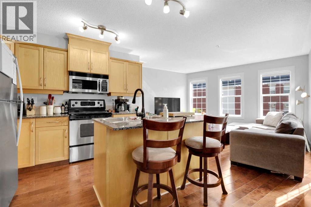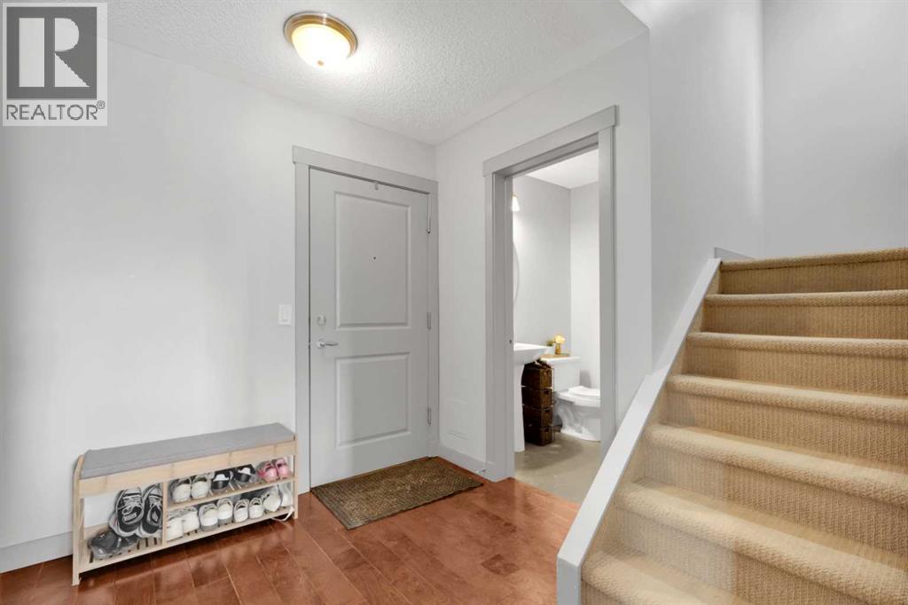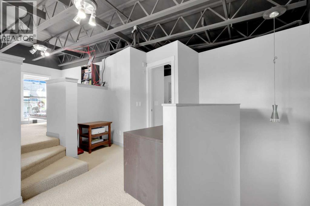 Welcome to this stunning and unique multi-level condo in the heart of desirable Garrison Woods! This bright and airy top-floor corner unit is full of natural light and boasts soaring ceilings, oversized windows, and an industrial-chic vibe that makes it stand out from the rest. The main level features an open-concept layout perfect for entertaining, with a modern kitchen, spacious living and dining areas, a convenient half bath, extra in-suite storage, and a private south-facing balcony to soak up the sun. Upstairs, you’ll find a spacious primary bedroom, a full bathroom, in-suite laundry, Office space, and a versatile den that’s perfect as a kids’ room, nursery, or flex space to suit your lifestyle. There's also direct access to the 4th-floor hallway, providing a unique dual-entry layout. Located in one of Calgary’s most walkable communities, you’re just steps from everything—trendy cafes, restaurants, groceries, fitness studios, and more. This is urban living at its best in one of the city’s most charming neighbourhoods. Whether you're a professional, a couple, or someone looking to downsize in style, this condo delivers the perfect balance of character, function, and unbeatable location! (id:53676)