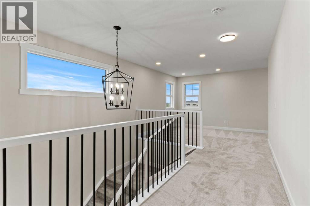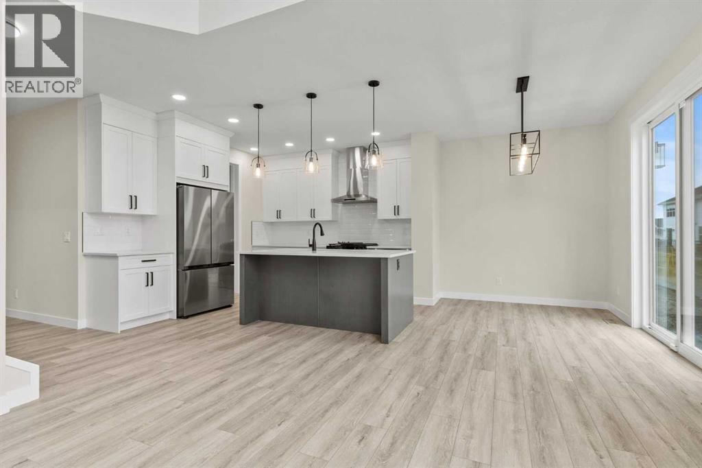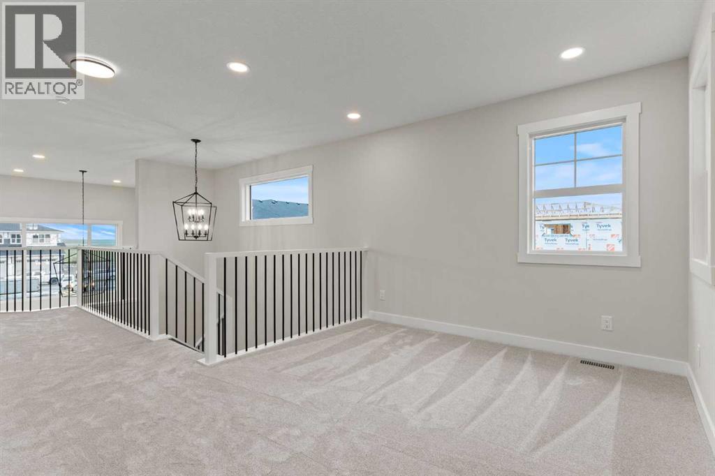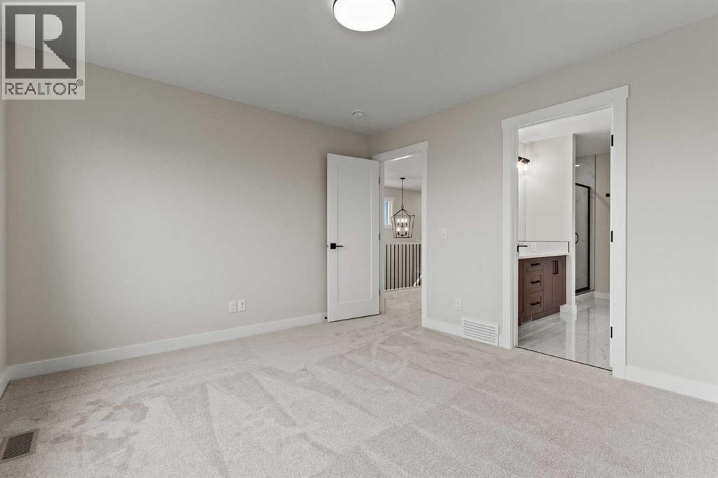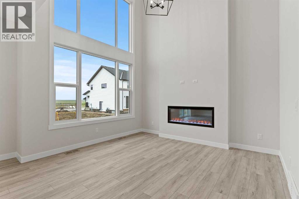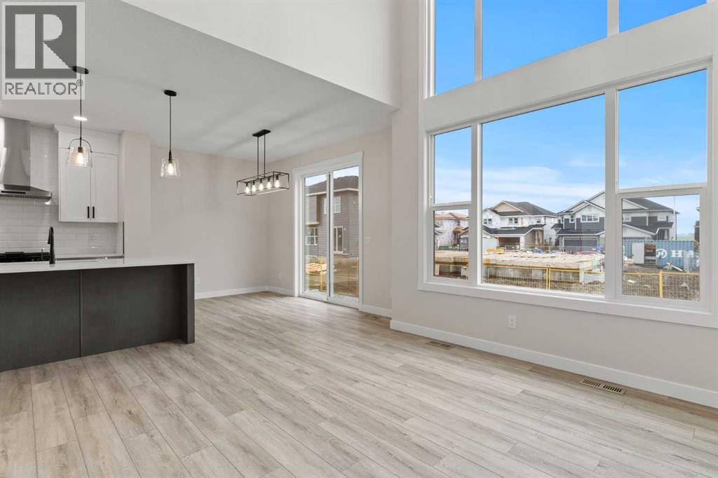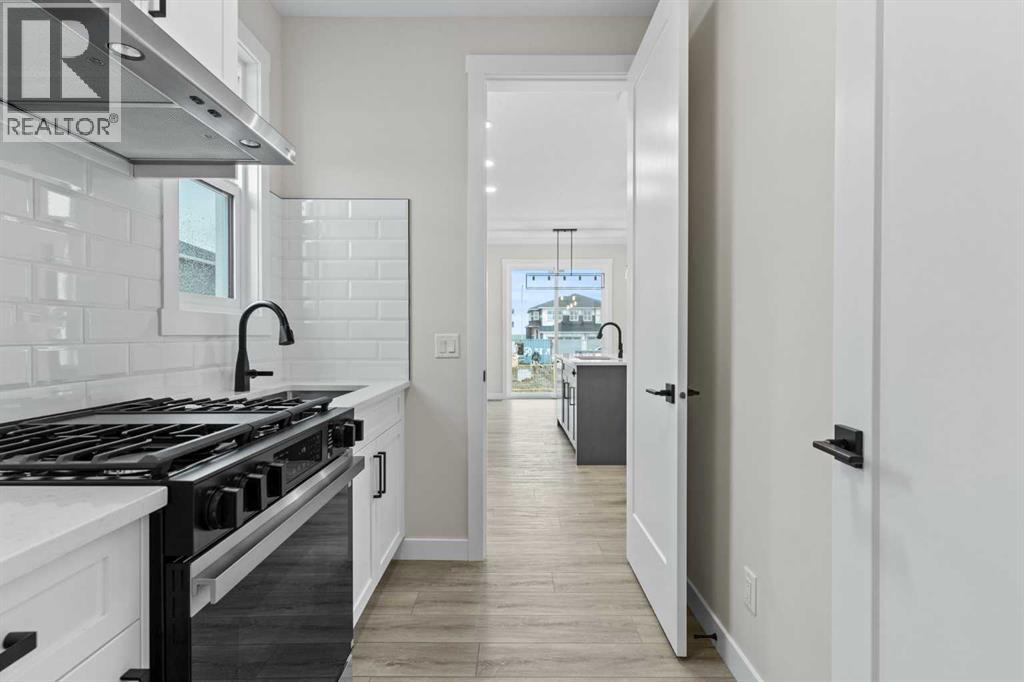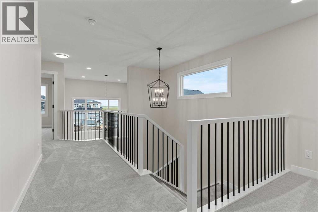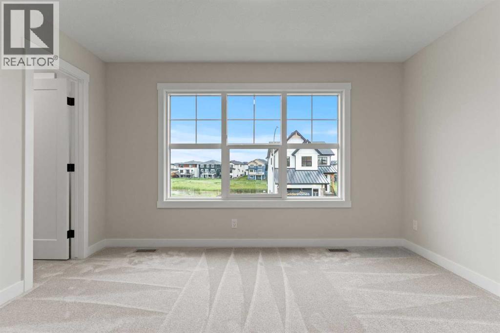 Welcome to 354 Kinniburgh Loop – A Stunning New Build with 4-Bedroom, 3-Bathroom Walkout Backing Onto the Chestermere Canal with Mountain Views!This 2200 SQFT home offers 4 bedrooms, 3 bathrooms, and a walkout basement that brings in an abundance of natural light and provides direct access to your backyard. Backing onto the Chestermere canal with unobstructed mountain views, this home delivers a rare combination of location, luxury, and lifestyle.The main floor is thoughtfully designed with a bedroom and private full bathroom, perfect for guests or multi-generational living. The open-concept layout includes a large family room with a grand open-to-below feature, a spacious dining area, and a designer kitchen with gold accents an oversized quartz island, stainless steel appliances, and a full-height cabinet package. A spice kitchen with a second gas range provides the perfect space for additional cooking, while the mudroom with upgraded MDF shelving keeps your family organized.Upstairs, the primary bedroom offers true luxury, with a luxurious 5-piece ensuite with a freestanding tub, fully tiled mosaic shower base with wall tile to the ceiling, dual vanities, and a private toilet. The ensuite connects to a large walk-in closet with built-in MDF shelving and drawers, which further connects directly to the laundry room, accessible from both the closet and the hallway for everyday convenience. Two additional bedrooms, each with plenty of space, share a Jack & Jill bathroom with a sink and toilet/shower area. A spacious bonus room completes the upper level, perfect for family movie nights or a home office.The walkout basement feels just like the main floor, thanks to oversized triple-pane windows and sliding glass doors that fill the space with natural light and provide easy backyard access. The basement is fully roughed-in, with a separate enclosed mechanical room for safety and convenience.This home is packed with high-end upgrades, including two gas ranges, s tainless steel appliances, black painted railings with black iron spindles, matte black fixtures throughout with gold accents in the kitchen, full-height painted cabinets, upgraded carpet underlay, and metal-sided soft-close drawers. Golden Homes’ Standard features are also included: true 9' ceilings on the main floor and basement, 8' interior doors on the main floor, triple-pane oversized windows, tankless hot water heater, HRV system, smart home features, gas line to the deck, rough-in for a garage heater, upgraded landscaping (lot graded and loamed, sod to side entry, and a tree in the front yard), solar panel rough-in, and more.With its premium location backing onto the canal, mountain views, walkout basement, and countless luxury upgrades, this home is truly one of a kind in Kinniburgh South. Don’t miss your chance to make it yours! Photos of are the same model, Builder specification may vary. (id:53676)