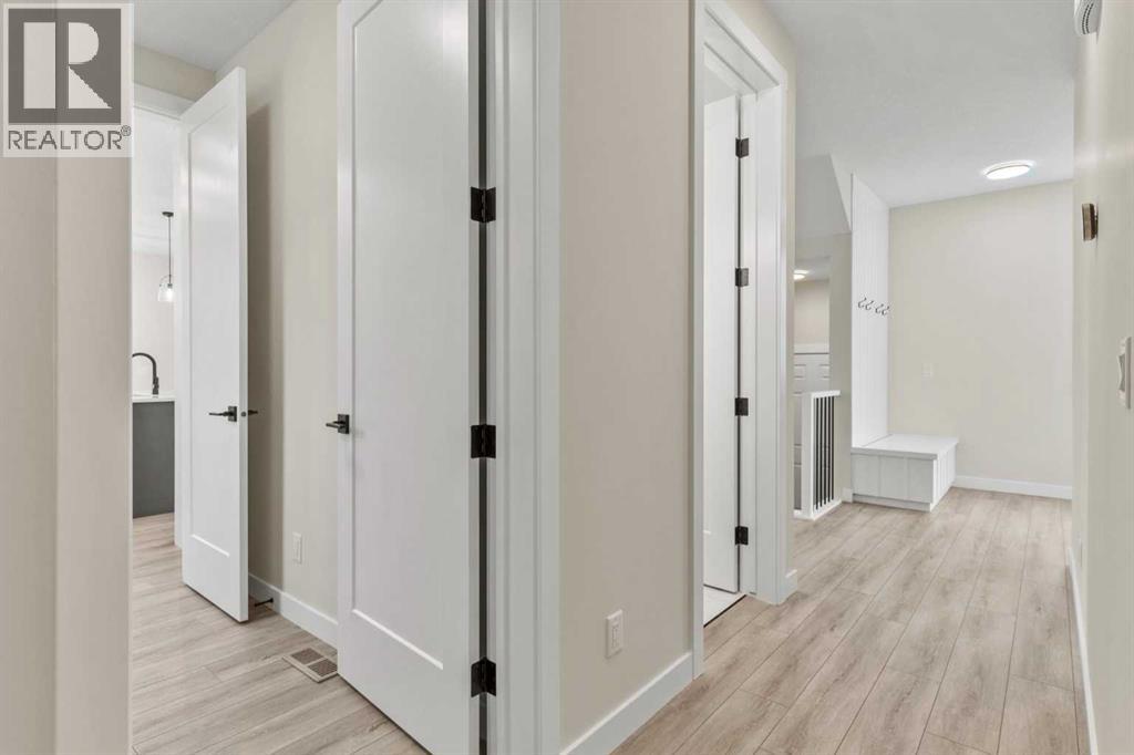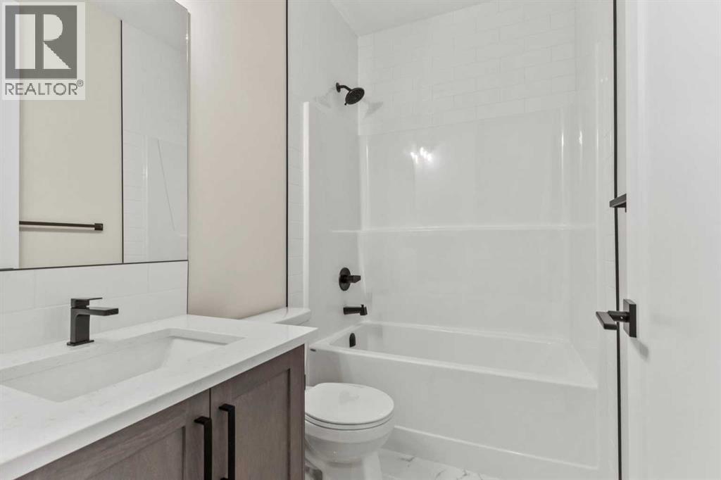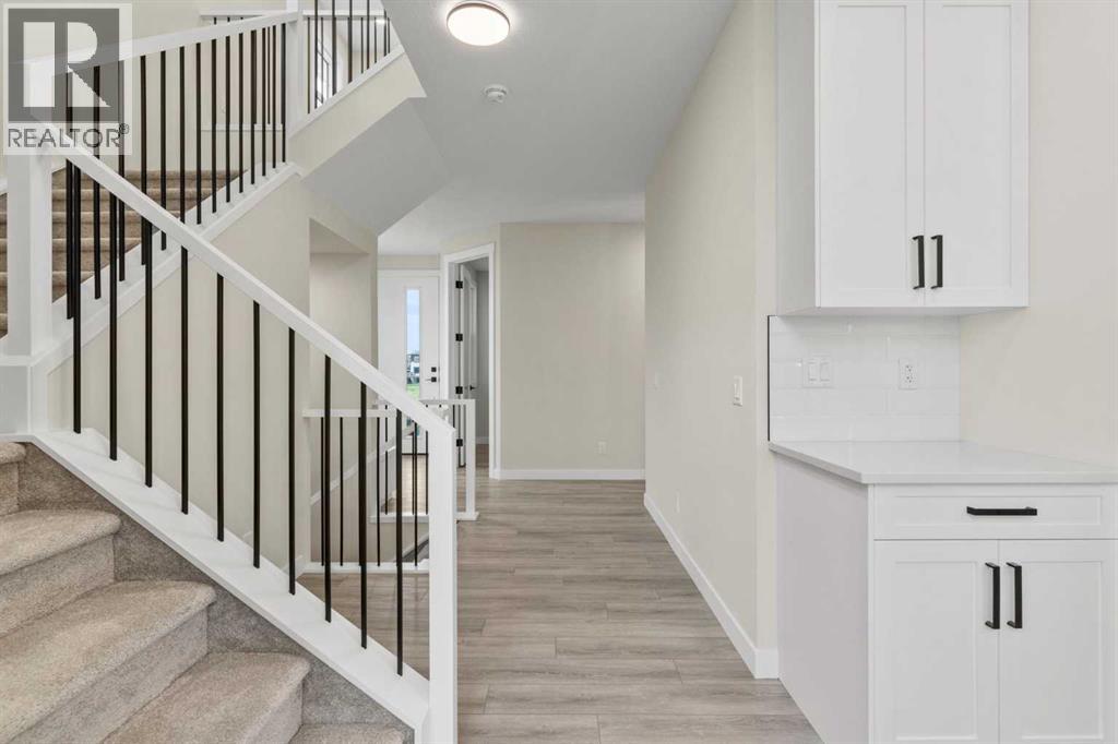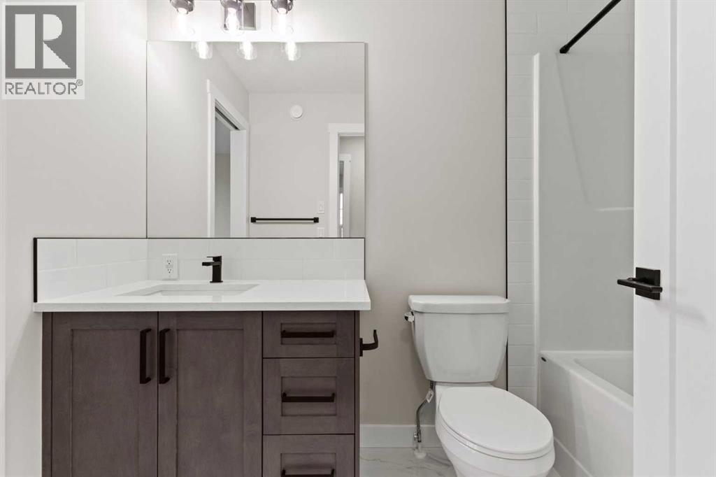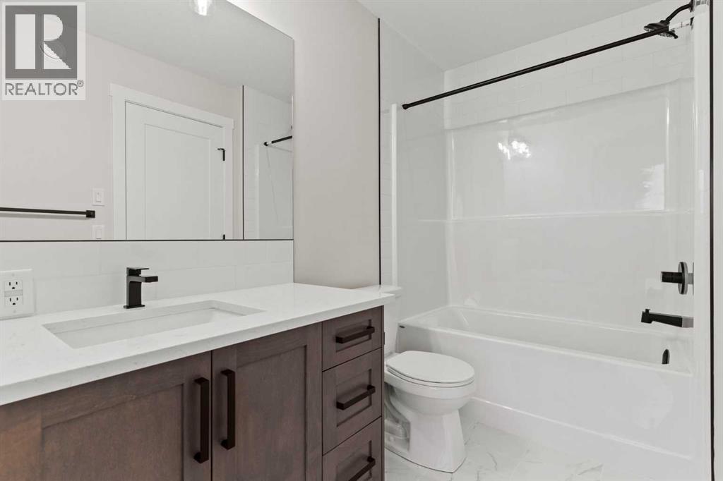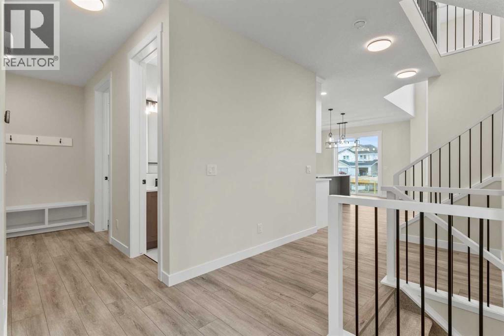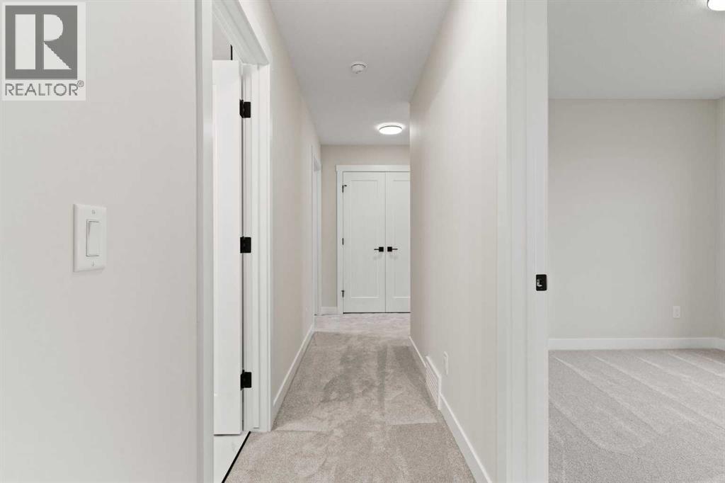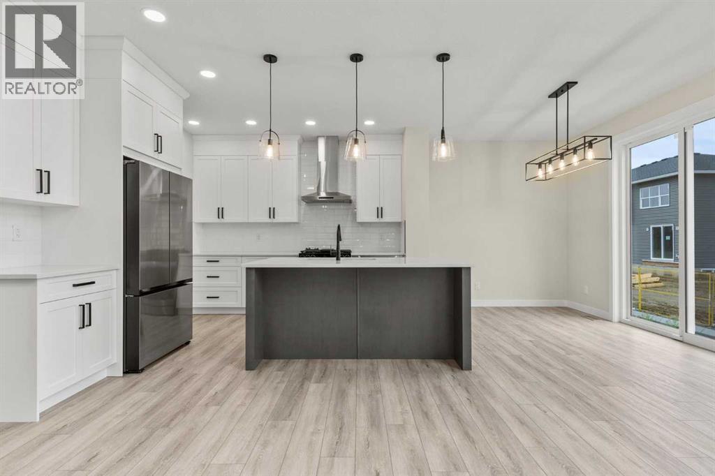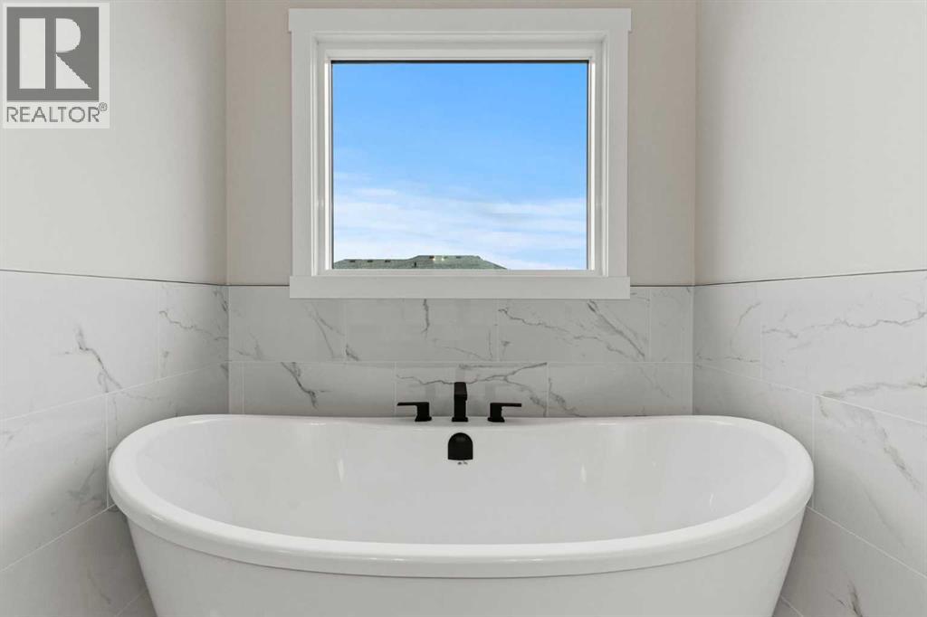 Welcome to 354 Kinniburgh Loop – A Stunning New Build with 4-Bedroom, 3-Bathroom Walkout Backing Onto the Chestermere Canal with Mountain Views!This 2200 SQFT home offers 4 bedrooms, 3 bathrooms, and a walkout basement that brings in an abundance of natural light and provides direct access to your backyard. Backing onto the Chestermere canal with unobstructed mountain views, this home delivers a rare combination of location, luxury, and lifestyle.The main floor is thoughtfully designed with a bedroom and private full bathroom, perfect for guests or multi-generational living. The open-concept layout includes a large family room with a grand open-to-below feature, a spacious dining area, and a designer kitchen with gold accents an oversized quartz island, stainless steel appliances, and a full-height cabinet package. A spice kitchen with a second gas range provides the perfect space for additional cooking, while the mudroom with upgraded MDF shelving keeps your family organized.Upstairs, the primary bedroom offers true luxury, with a luxurious 5-piece ensuite with a freestanding tub, fully tiled mosaic shower base with wall tile to the ceiling, dual vanities, and a private toilet. The ensuite connects to a large walk-in closet with built-in MDF shelving and drawers, which further connects directly to the laundry room, accessible from both the closet and the hallway for everyday convenience. Two additional bedrooms, each with plenty of space, share a Jack & Jill bathroom with a sink and toilet/shower area. A spacious bonus room completes the upper level, perfect for family movie nights or a home office.The walkout basement feels just like the main floor, thanks to oversized triple-pane windows and sliding glass doors that fill the space with natural light and provide easy backyard access. The basement is fully roughed-in, with a separate enclosed mechanical room for safety and convenience.This home is packed with high-end upgrades, including two gas ranges, s tainless steel appliances, black painted railings with black iron spindles, matte black fixtures throughout with gold accents in the kitchen, full-height painted cabinets, upgraded carpet underlay, and metal-sided soft-close drawers. Golden Homes’ Standard features are also included: true 9' ceilings on the main floor and basement, 8' interior doors on the main floor, triple-pane oversized windows, tankless hot water heater, HRV system, smart home features, gas line to the deck, rough-in for a garage heater, upgraded landscaping (lot graded and loamed, sod to side entry, and a tree in the front yard), solar panel rough-in, and more.With its premium location backing onto the canal, mountain views, walkout basement, and countless luxury upgrades, this home is truly one of a kind in Kinniburgh South. Don’t miss your chance to make it yours! Photos of are the same model, Builder specification may vary. (id:53676)