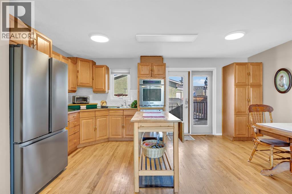 Welcome to 36 Alpine Crescent. Nestled in a quiet, non through road , in the mature community of Airdrie Meadows. This bright spacious 3 level split has so much to offer its new family. The main floor greets you with an open floor plan flooded with natural sunlight. Hardwood floors usher you into the front sitting room. Large dining room area with a built in pantry & French doors leading to your outside oasis. The kitchen is open to the dining & sitting rooms making interaction with family & guests during meal preparation optimal. Newer stainless steal appliances including the built in wall oven, dishwasher (2025), refrigerator (2025) & countertop range (2020). Upstairs you will be introduced to the spacious primary bedroom with closet built ins. The second & third bedroom. And, the 4 pc main bath with updated vanity & light fixtures. The lower level rec room boasts 2 large windows which keeps the natural light flowing throughout this warm welcoming space. This is where families gather & memories are made. This large open area is ideal for family movie/games nights & has plenty of space to accommodate an office or study area. The extended laundry & utility area offers plenty of additional storage while the massive crawl space will ensure that your garage is never cluttered with unnecessary items. This area is also home to a cold storage room. Ideal for canning or wine. There is plenty of space in the utility room to install a second bathroom & a portion of the rec room could be converted to a bedroom if desired. Ask your mortgage broker about the purchase plus improvements program. Outside the rear French Doors you will enter your garden oasis. The massive 3 tiered deck is ideal for entertaining or kicking back & enjoying those warm summer nights. Step into your very own Secret Garden...where the magic of imagination awaits you. Creatively thought out flower beds & design. A secluded lower patio with a beautiful arched entry. Extensive storage under the deck. Storag e shed. Side storage shed. And, an oversized garage measuring almost 22 x 24 ft. Fully insulated with 220 wiring. This large lot could also accommodate an RV pad with some alterations. Additional upgrades include a stunning wrought iron side gate. Windows & doors replaced app 20 yrs ago. Furnace replaced app 2010. Hot water tank replaced app 2015. Roof replaced app 2014. Phantom screens at the front & rear doors. Vacu Flo & Water softener. This home is conveniently located within walking distance to 4 different schools. Churches. The Kinsmen Park & Arena. The Urgent Centre & downtown Airdrie. Quick access to highway 2 for those who commute. This is a great starter home for a single person, couple, or small family. Under $475,000 with no condo fees! Contact your favourite agent today to call this home your own. (id:53676)