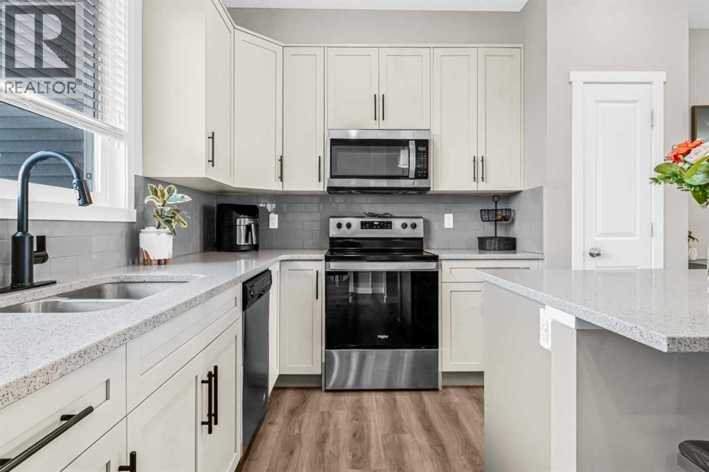 Welcome to this stunning row townhouse in the desirable Belmont community, where modern living meets exceptional value! This charming home boasts no condo fees or HOA fees, making it an ideal choice for those seeking both freedom and affordability. Step inside to discover sublime finishes throughout, featuring elegant vinyl plank flooring that adds both warmth and durability. The stylish kitchen is a true highlight, showcasing exquisite quartz countertops and an open-concept layout that seamlessly connects to the spacious living area—perfect for entertaining family and friends. With **three generously sized bedrooms and two and a half bathrooms**, this townhouse provides ample space for family living or guests. The well-designed layout allows for comfortable daily routines and endless possibilities for personalization. Venture down to the basement, a blank canvas awaiting your creative designs, whether it’s a cozy media room, a personal gym, or additional guest quarters. Outside, the backyard is a private oasis, fully fenced for added security and serenity. It features a large concrete patio, perfect for summer gatherings or peaceful mornings with a cup of coffee. There's also ample room for a double detached garage, with a gas line already installed for future use. This townhouse is ideally situated near shopping, making daily errands a breeze. Plus, Belmont has exciting future plans to develop schools and a large field house for sporting activities, enhancing the value of this vibrant community and ensuring a family-friendly environment. Don’t miss your opportunity to own this exquisite townhouse in Belmont—where modern finishes, low-maintenance living, and community growth await! Schedule your viewing today and experience the best of contemporary living. (id:53676)