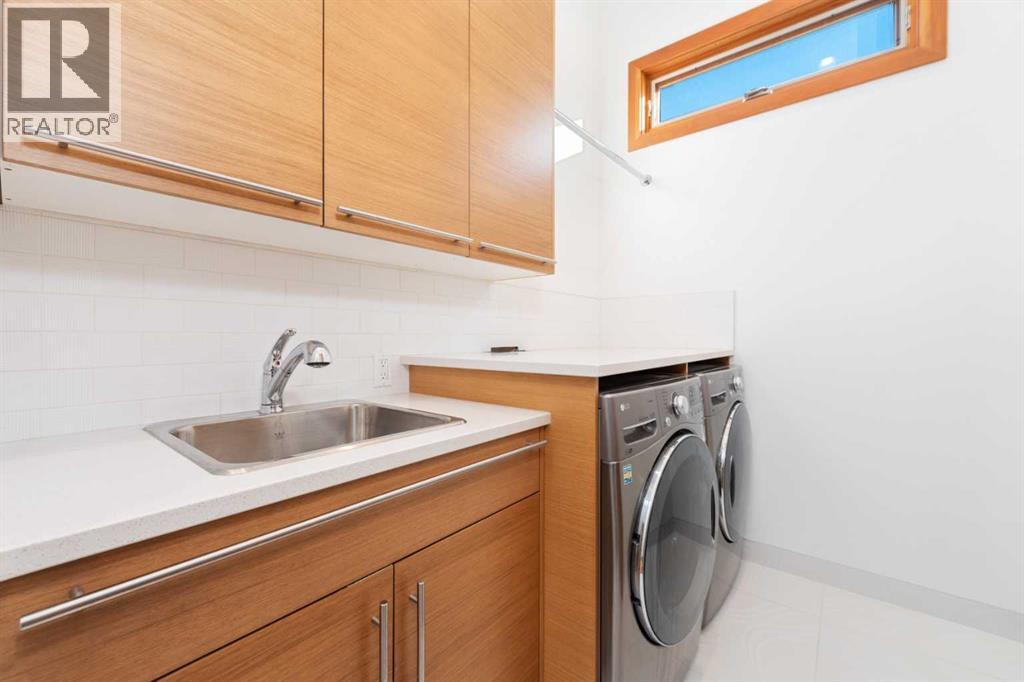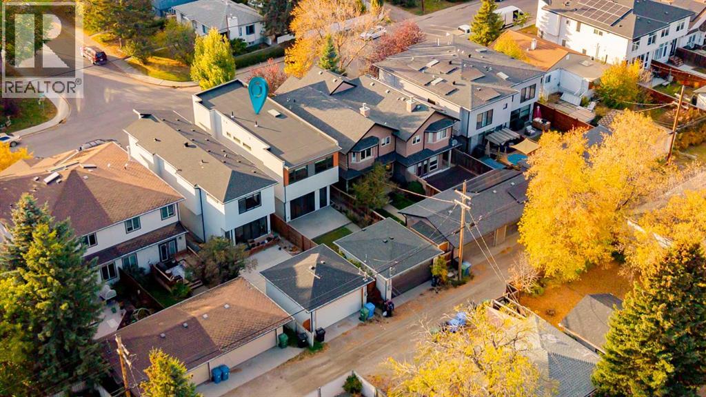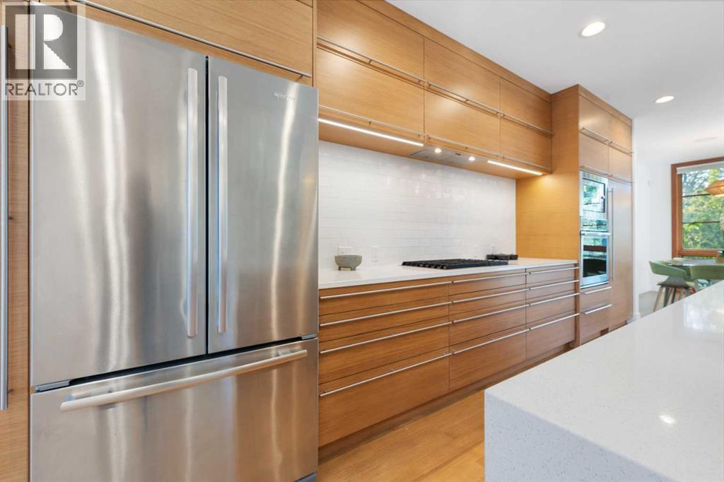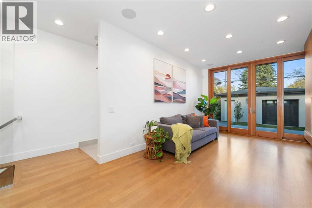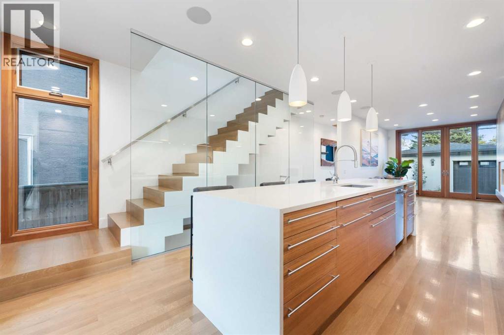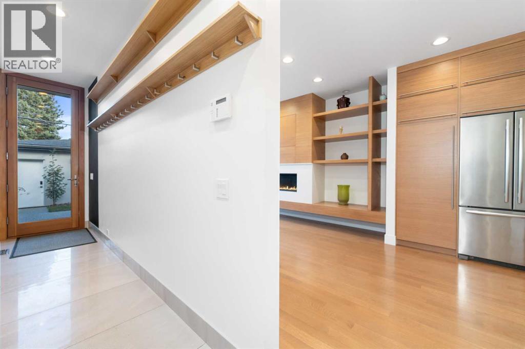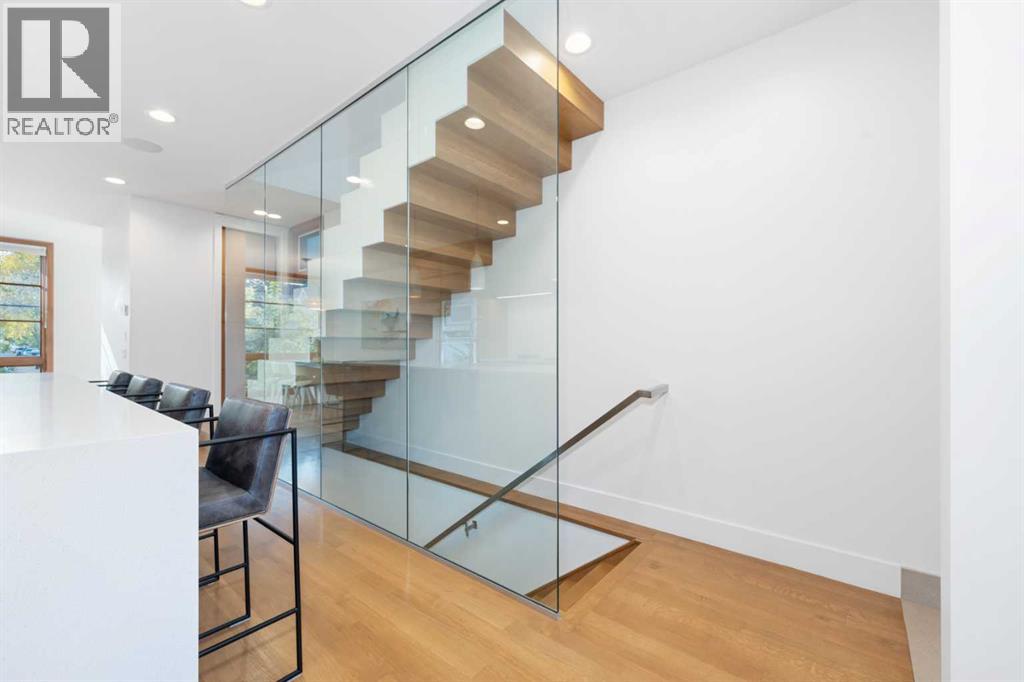 This custom-built 4-bedroom, 3.5-bathroom home in Highland Park delivers an elevated living experience defined by thoughtful design, quality craftsmanship, and refined style across every level. From the moment you step inside, it’s clear that this is not a standard new build — every finish, fixture, and detail has been carefully chosen to create a home that feels both modern and timeless. The main floor features 9’ ceilings and an open-concept layout that’s bright, inviting, and perfectly balanced for everyday living and entertaining. The chef’s kitchen impresses with high-end JennAir appliances, a striking waterfall-edge quartz island, and full-height custom cabinetry that combines form and function. The dining area offers tranquil treetop views, while the living room is anchored by a sleek gas fireplace framed with custom millwork — a contemporary focal point that adds warmth and character. A glass-walled staircase and overhead skylight enhance the sense of space, creating a seamless flow of natural light throughout the home.Upstairs, 11’ ceilings and solid hardwood floors set a tone of quiet sophistication. The primary suite is a serene retreat with a spacious walk-in closet and a spa-like ensuite featuring heated tile floors, dual vanities, and a double soaker tub. Two additional bedrooms and a well-appointed full bath provide comfort and flexibility for family or guests, while the convenient upper laundry room adds practicality to the space. The fully developed lower level continues the home’s modern aesthetic, featuring 9’ ceilings, large windows, and polished, stained concrete floors that lend a stylish, urban edge. A wet bar with a dishwasher makes entertaining easy, while the open recreation area offers versatility as a media room, gym, or guest suite. With a sauna rough-in and generous storage, every need has been anticipated. Behind the design, high-performance features ensure lasting comfort and efficiency, including a Lennox 4-zone HVAC system, triple- pane windows, and built-in ceiling speakers. Outside, the home’s appeal continues with professional landscaping, wide exposed aggregate walkways, and contemporary exterior lighting that highlights its architectural form. Set on a quiet, tree-lined street with west-facing exposure, this property offers exceptional light and privacy in a sought-after inner-city location. With easy access to the core and other major routes, it combines urban convenience with a peaceful residential setting. Sophisticated yet welcoming, this Highland Park home stands out for its thoughtful design, exceptional build quality, and effortless livability — a space that feels as good as it looks. (id:53676)
