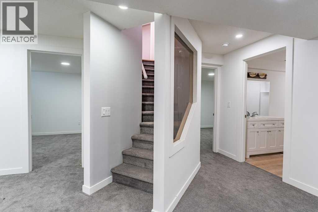 Well maintained, fully finished bungalow located in the desirable community of Douglasdale. Situated on a quiet street with no neighbours behind, this spacious open-concept home offers vaulted ceilings throughout the main floor, creating a bright and airy feel.The main level features two generous bedrooms, including a large primary retreat with a four-piece ensuite complete with jetted tub, separate shower, and skylight. The inviting living and dining areas are centered around a gas fireplace with wood mantle, perfect for both everyday living and entertaining. The kitchen is flooded with natural light from large windows and includes an island, pantry, and dining nook, offering ample cupboard and counter space. New carpet throughout the home adds comfort and a fresh, move-in-ready feel.The fully renovated basement significantly expands the living space and includes three additional bedrooms, a full bathroom, and a large recreation room with wet bar—ideal for guests, teens, or multi-generational living.Additional highlights include a double attached garage, large fenced backyard, spacious deck and patio for outdoor entertaining, and front veranda. Located on a large lot in one of Douglasdale’s most sought-after communities, close to golf courses, pathways, parks, and amenities. This home is a must-see! (id:53676)