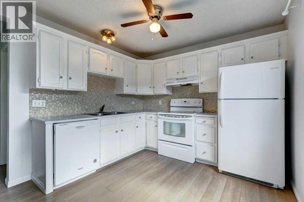 NO CONDO FEES. This bright and cheery three bedroom home features a double detached garage, 1.5 baths, and a big family room in the basement. Upgraded Windows in 2022 (except living room); Upgraded Roof Shingles in 2019; High Efficient Furnace replaced in 2013 and Hot Water Tank in 2017. Newer fridge and dishwasher; Upgraded laminate flooring on all levels, and plush carpets on the stairs; All appliances included; Covered front porch with maintenance free composite decking; Fully fenced with a south backyard and close to schools, parks, playgrounds, the pathways to South Glenmore Park and beyond, shops, transit, and more! Enjoy your own strawberry and raspberry patch next summer! Ready for possession well before this Christmas for your sweet place to call home!Everything is ready for you—just move in and enjoy! (id:53676)