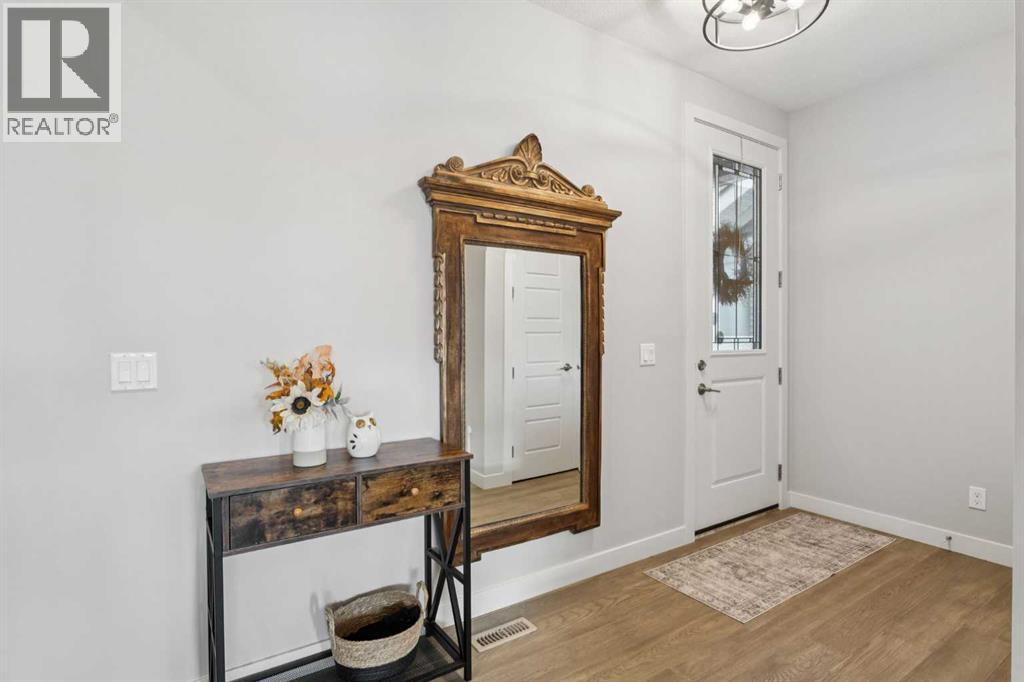 OPEN HOUSE SATURDAY OCTOBER 18 from 2PM - 4PM | Experience refined living in this beautifully designed 2023 built home, where timeless style meets everyday comfort. The heart of the home is a BRIGHT, luxurious WHITE kitchen featuring QUARTZ countertops and STAINLESS STEEL appliances, DESIGNER TILE, and elegant finishes throughout—perfectly suited for both entertaining and everyday living.Upstairs includes a stunning primary retreat with VIEWS of Cochrane’s Glenbow Valley. Indulge in the spa-inspired 5-piece ENSUITE, complete with a SOAKER TUB, STAND ALONE SHOWER, DOUBLE VANITY, and a generous WALK-IN CLOSET. A stylish BONUS ROOM with a TRANSOM WINDOW adds the perfect touch of architectural interest and natural light. Additionally, two more bedrooms share a well-appointed 4-piece bathroom, plus a LAUNDRY ROOM completing the upper level.Thoughtful touches include an inviting BUILT-IN BENCH at the entry, QUARTZ surfaces in every bathroom, and an elegant ELECTRIC FIREPLACE creating a cozy ambiance in the main living area.The UNFINISHED WALKOUT BASEMENT offers incredible potential with a BATHROOM ROUGH-IN and direct access to a PRIVATE lower deck. The fully fenced, EAST-facing backyard is lined with trees and offers two outdoor living spaces—an UPPER DECK with a PRIVACY SCREEN and a LOWER PATIO—both with stunning VIEWS of the valley. This home is within walking distance to the river valley, parks, schools, and amenities, while also offering quick access to the Rec Centre, stores, and more. Enjoy elevated living in a peaceful, SCENIC setting—an exceptional home where luxury and lifestyle meet. (id:53676)