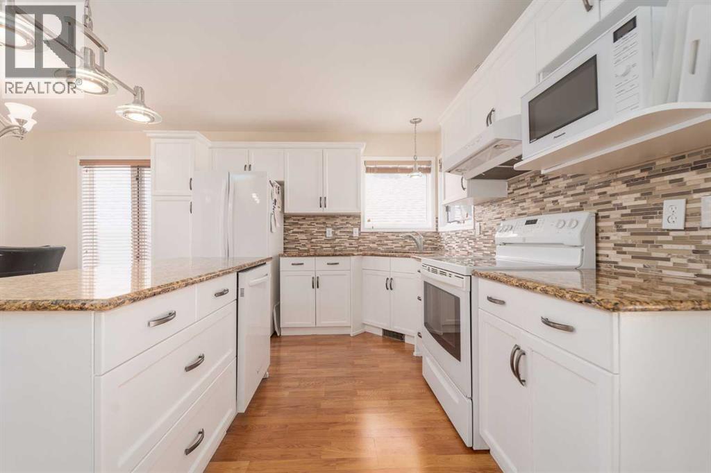 Located in the mature and sought-after neighbourhood of Heritage Heights in west Lethbridge, this clean and move-in ready bi-level home is the full package. The area itself has so much to offer—easy access to the coulees for those who love a good walk, plenty of nearby parks and playgrounds, and all the best west-side amenities just minutes away.Out front, the inviting patio gives you a perfect spot to enjoy your morning coffee before stepping through the door. Inside, the open-concept main floor greets you with a bright and spacious living room featuring oversized windows that flood the space with natural light. Flowing seamlessly into the dining area and kitchen, you’ll find stylish quartz countertops, a crisp updated backsplash, and plenty of room to cook or gather.The primary bedroom is tucked at the back of the home for extra privacy, offering generous space that easily fits a king-sized bed. Right beside it, the impressive 5-piece bathroom includes dual vanities and a smart layout that feels both practical and luxurious. Another large bedroom rounds out this level, making it ideal for family or guests.Step just off the kitchen to a raised deck overlooking the beautifully maintained backyard. Down below, a concrete patio adds even more outdoor living space, complete with a natural gas line ready for your future BBQ setup—or even a cozy fireplace.The lower level continues to impress with two massive bedrooms, a comfortable family room perfect for movie nights or a quiet kids’ hangout, and a 3-piece bathroom with a fully tiled shower.This home checks all the boxes: mature location, updated finishes, generous space, and an overall feel that’s been cared for and well-loved. (id:53676)