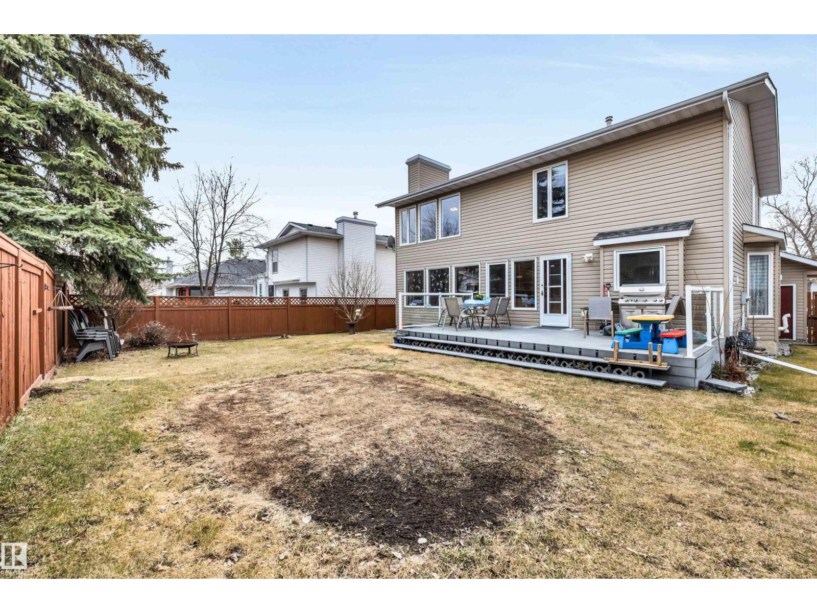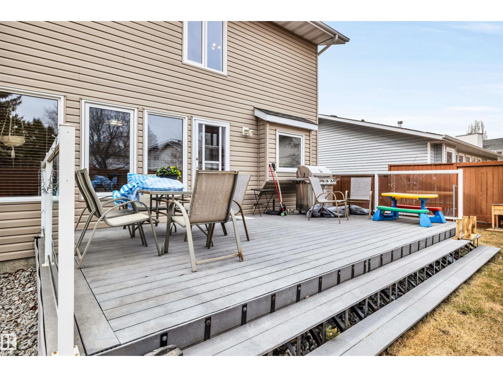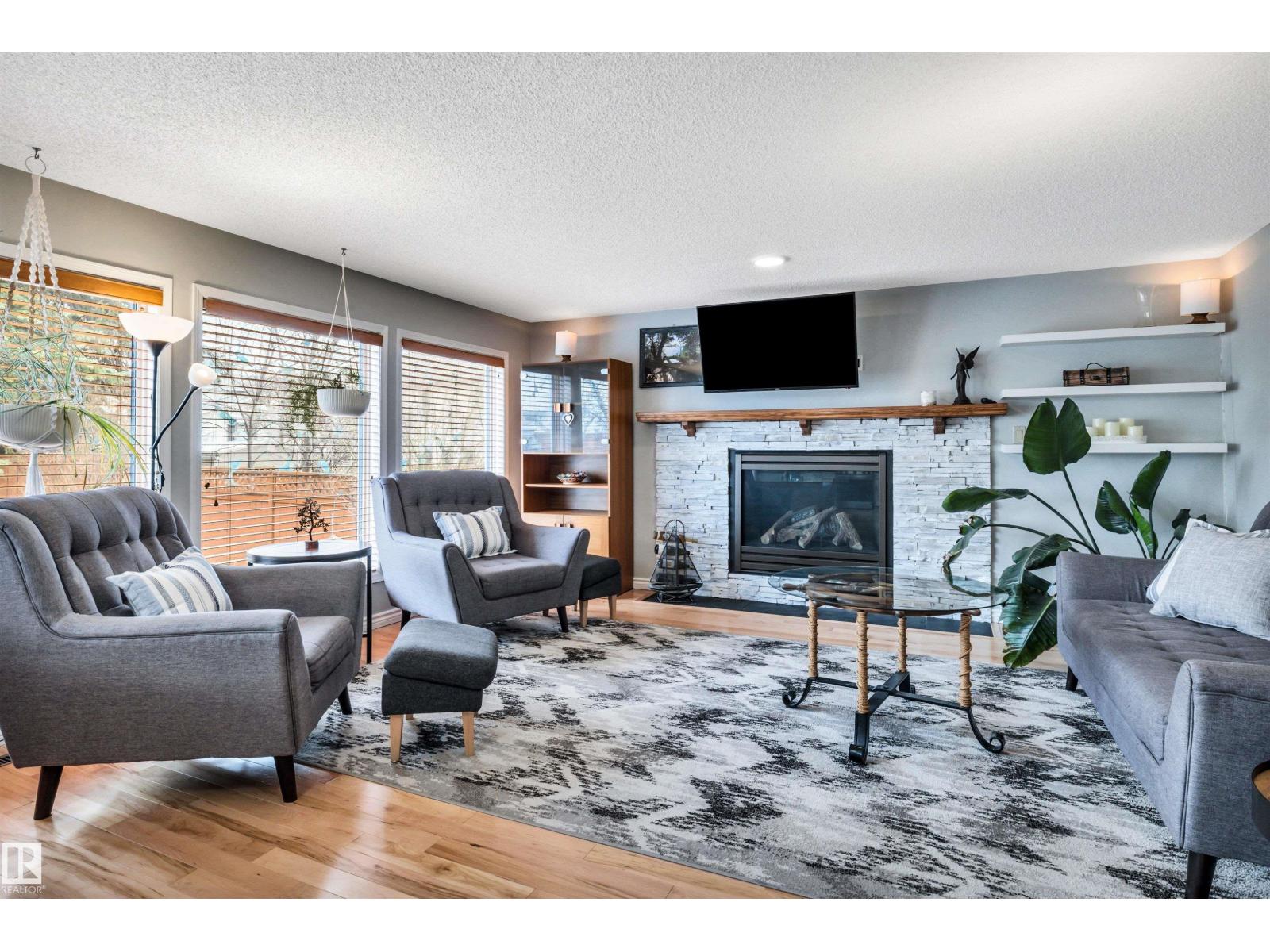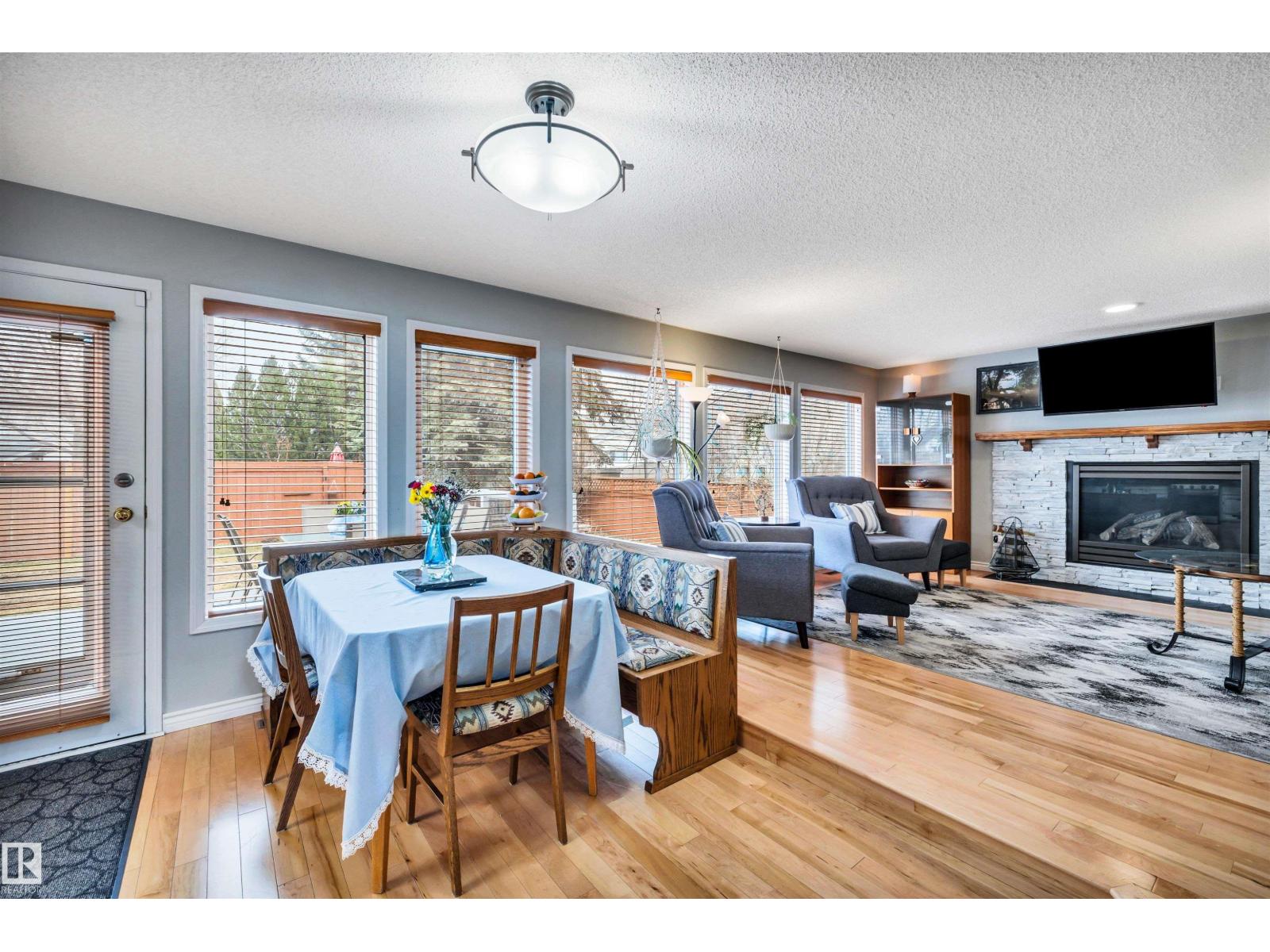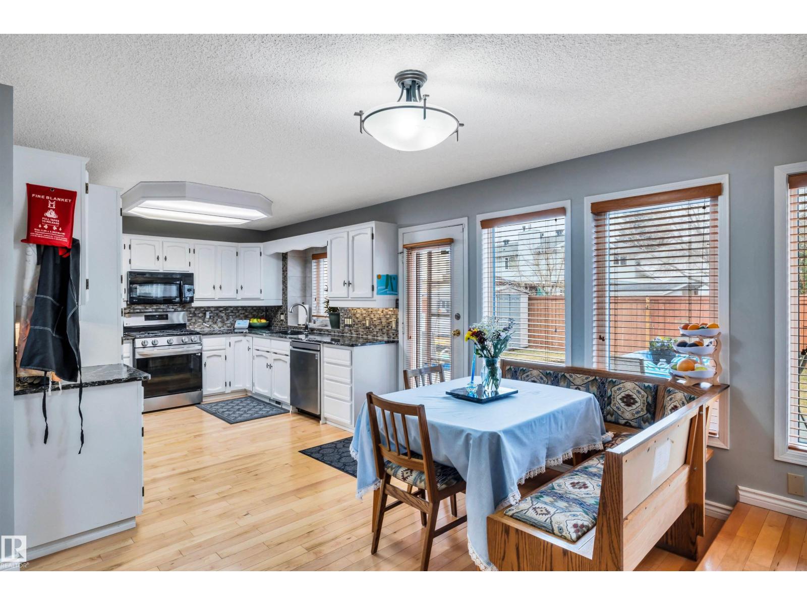 Beautifully upgraded 2250 sq. ft. 2 storey on a quiet, tree-lined crescent! From the bright and open foyer, you’ll see a large flex room perfect for a home office or separate living room. Spacious, white kitchen with newer appliances incl. gas stove, granite countertops and tile backsplash is open to the dining nook. The back of the home features large windows that bring sunshine into the dining nook and a large, raised family room with gas fireplace. Large dining room and main floor laundry round out the main floor which has hardwood flooring throughout. Upper floor features three HUGE bedrooms, including a primary with stunning 5 pce ensuite with heated floors, large shower, jetted tub and massive walk-in closet. Basement is fully finished with 4th bedroom, large rec room, games area and tons of storage. Heated double attached garage with floor drain. Maintenance free deck in backyard and newer wood deck at the front! Recent upgrades include: 2 egress windows in basement, furnace, HWT & central A/C. (id:53676)
