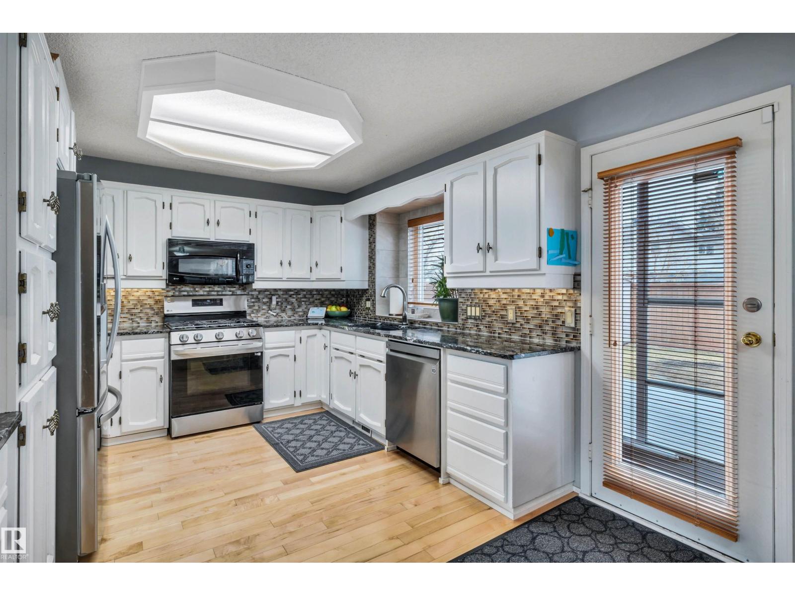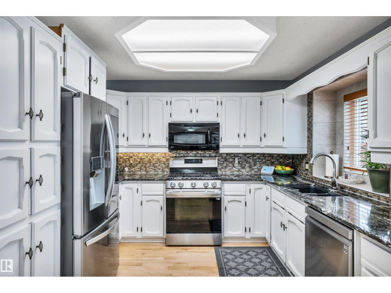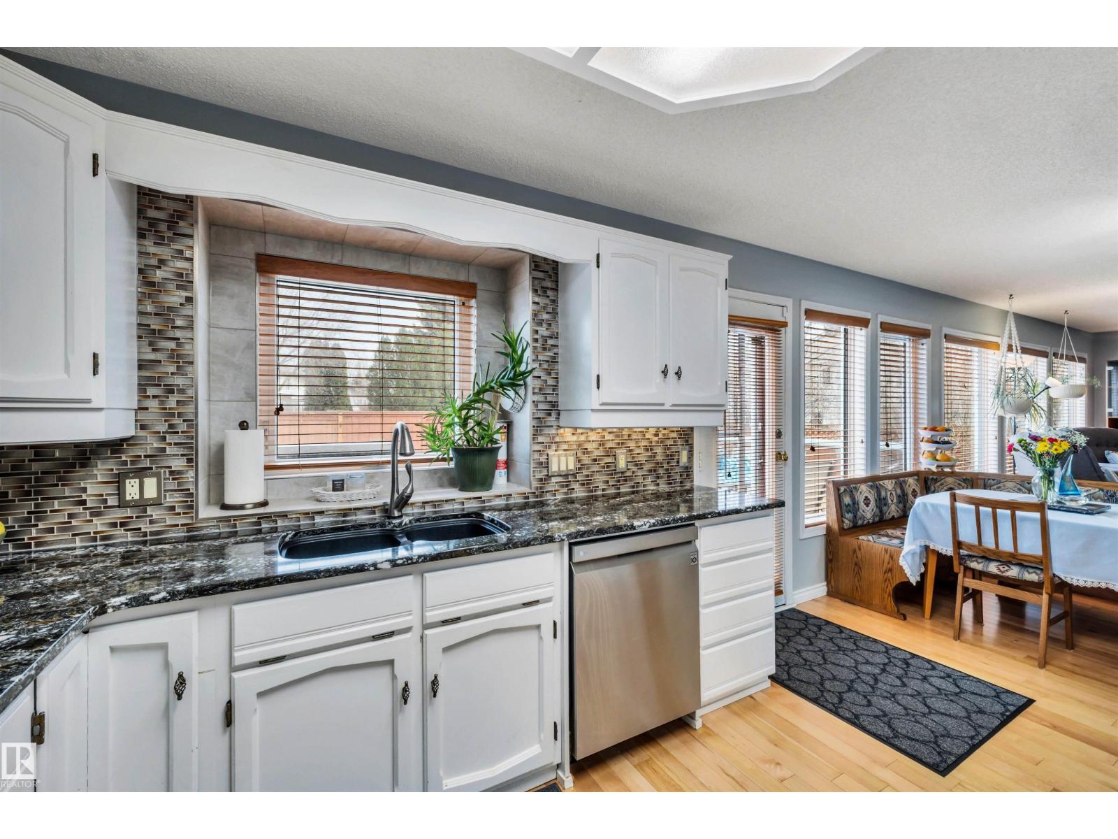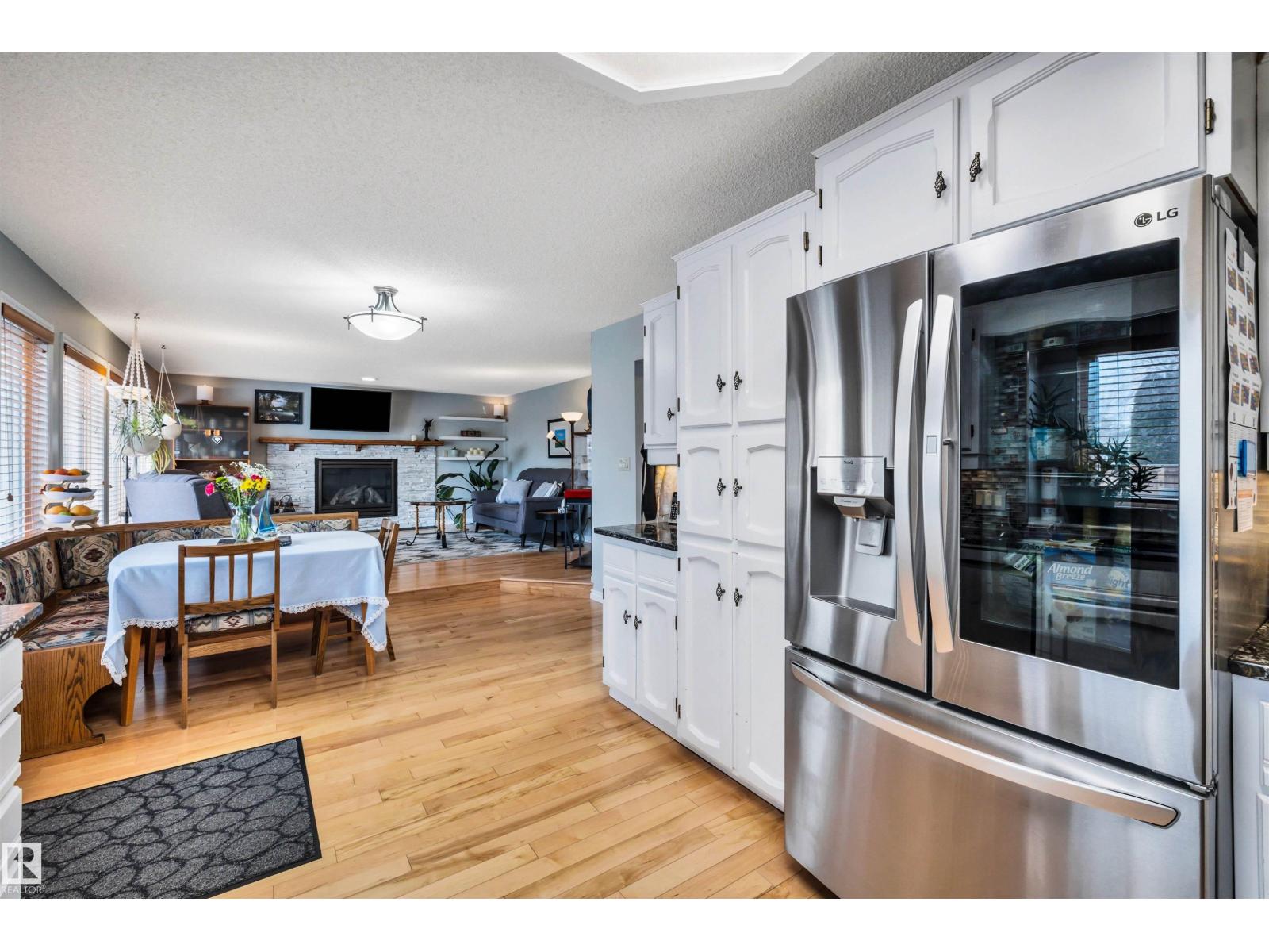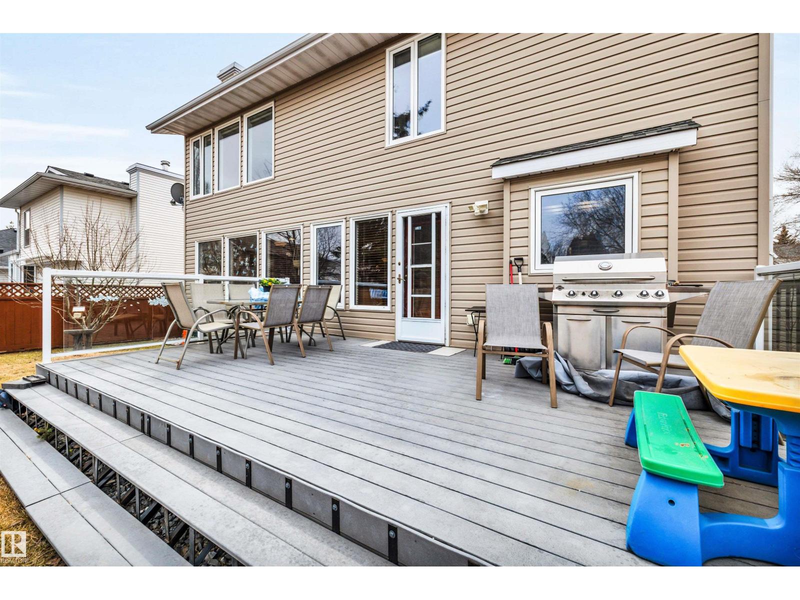 Beautifully upgraded 2250 sq. ft. 2 storey on a quiet, tree-lined crescent! From the bright and open foyer, you’ll see a large flex room perfect for a home office or separate living room. Spacious, white kitchen with newer appliances incl. gas stove, granite countertops and tile backsplash is open to the dining nook. The back of the home features large windows that bring sunshine into the dining nook and a large, raised family room with gas fireplace. Large dining room and main floor laundry round out the main floor which has hardwood flooring throughout. Upper floor features three HUGE bedrooms, including a primary with stunning 5 pce ensuite with heated floors, large shower, jetted tub and massive walk-in closet. Basement is fully finished with 4th bedroom, large rec room, games area and tons of storage. Heated double attached garage with floor drain. Maintenance free deck in backyard and newer wood deck at the front! Recent upgrades include: 2 egress windows in basement, furnace, HWT & central A/C. (id:53676)