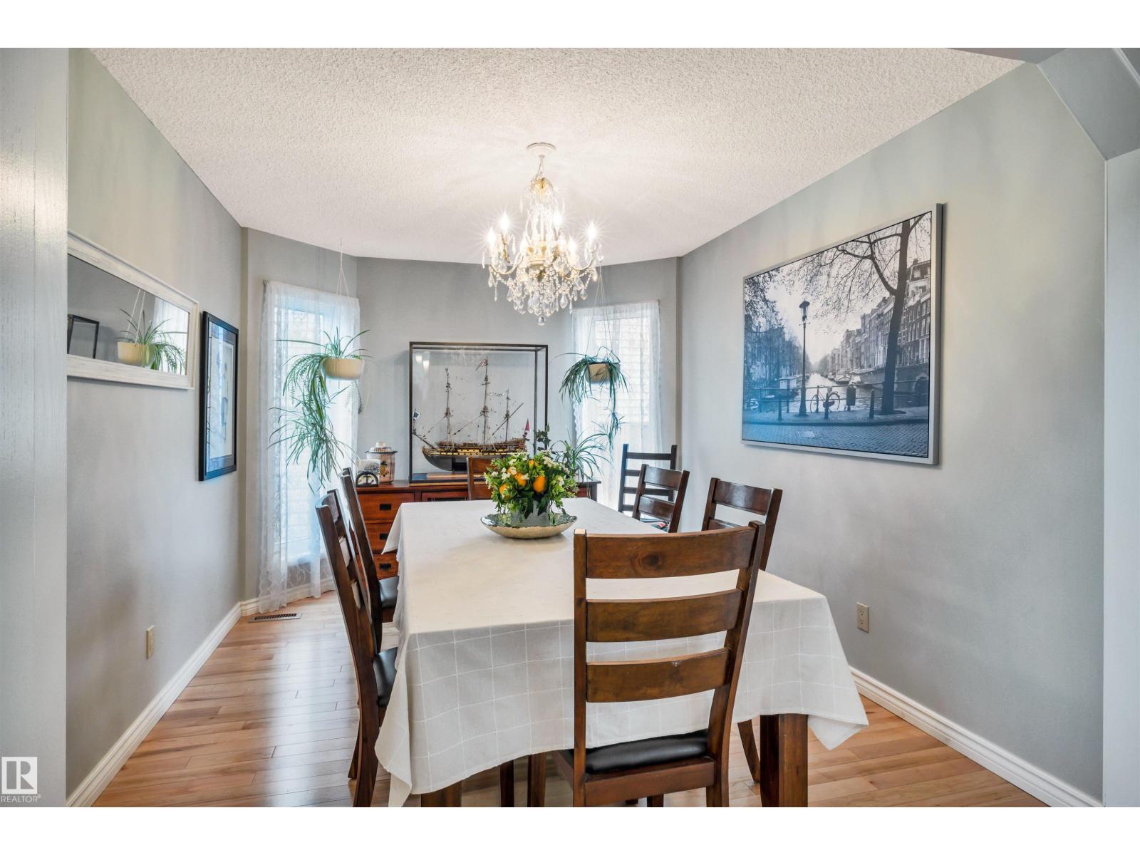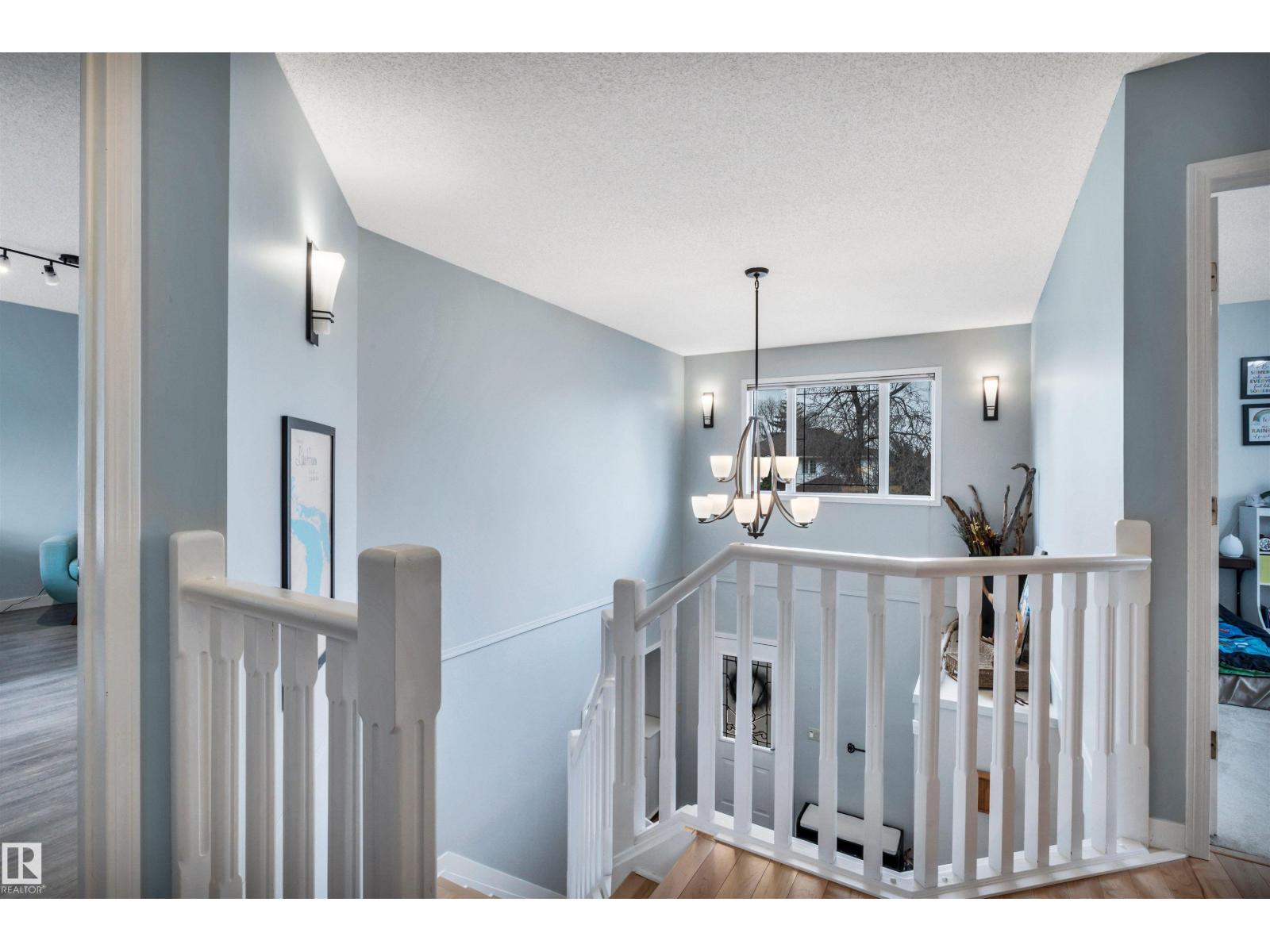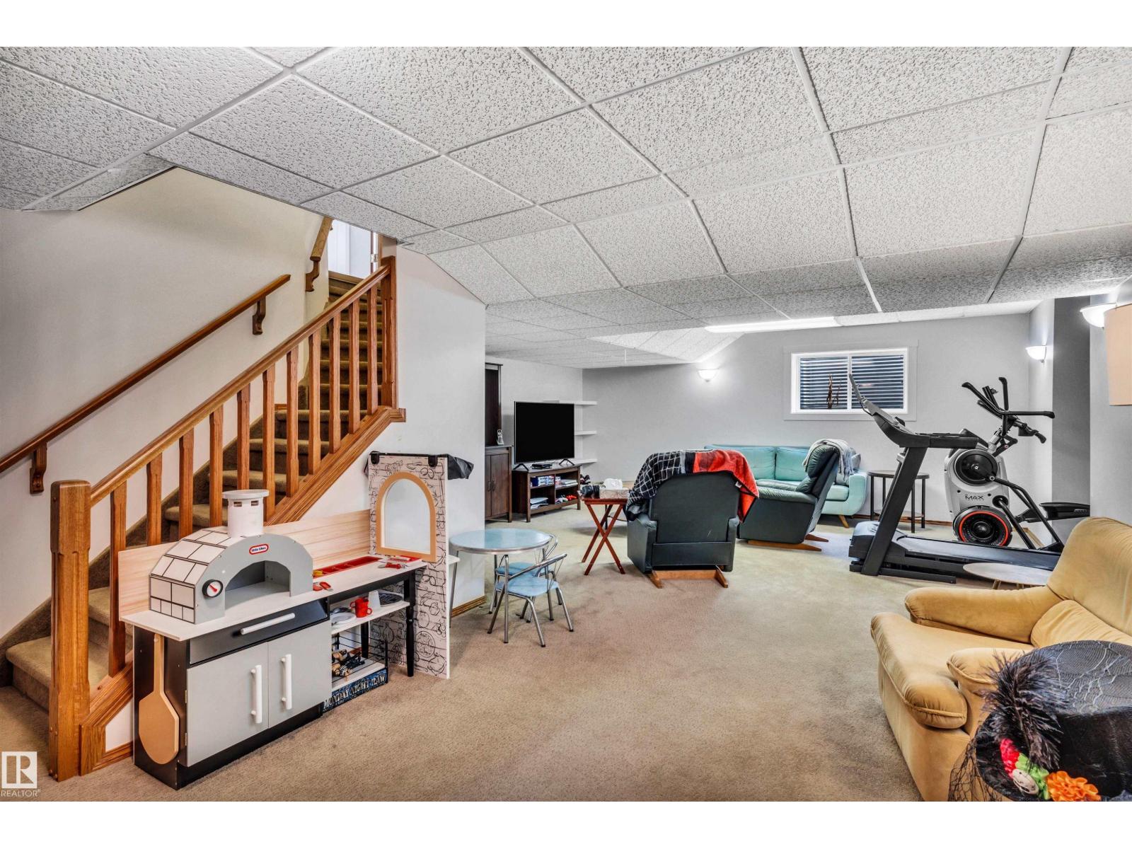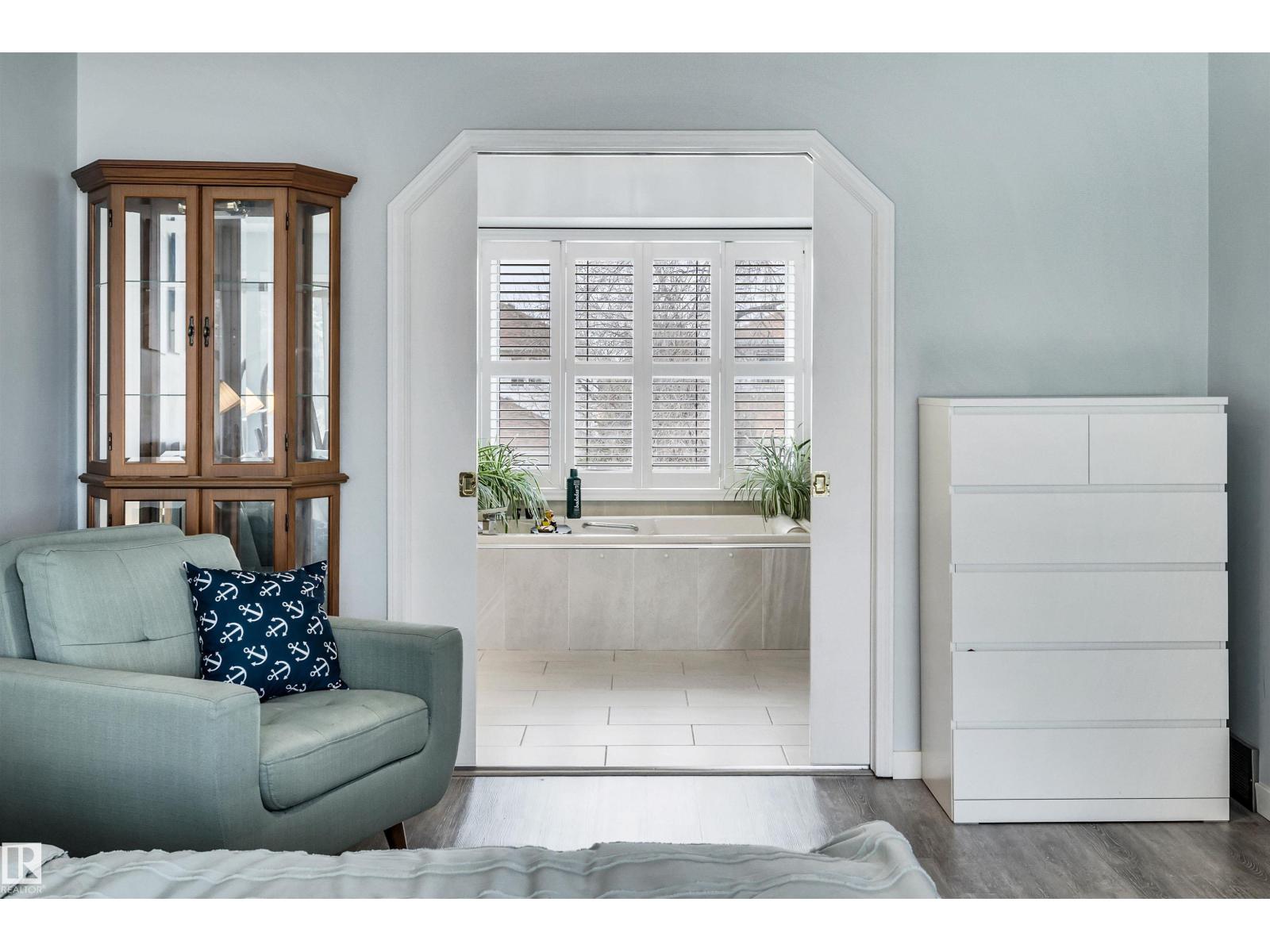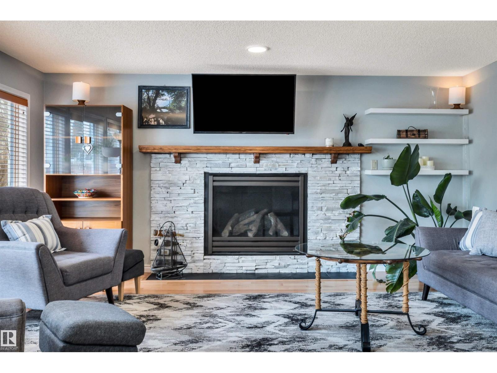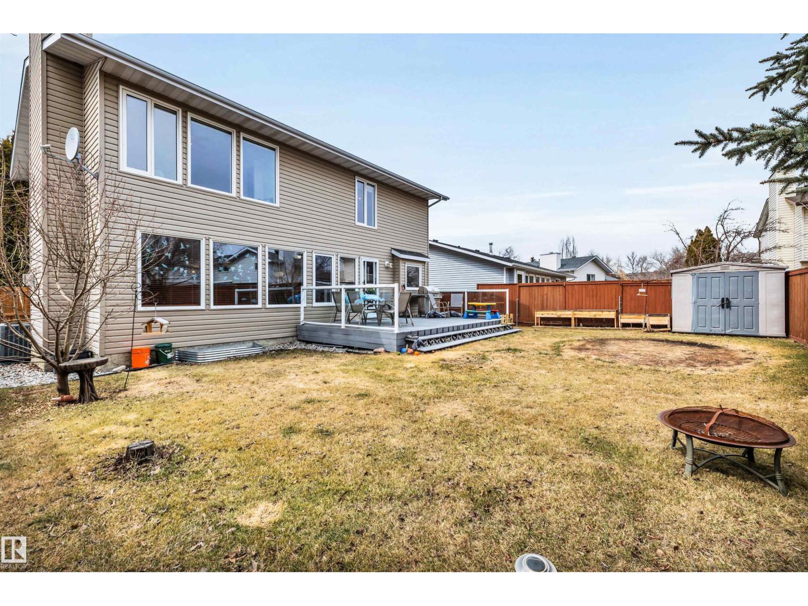 Beautifully upgraded 2250 sq. ft. 2 storey on a quiet, tree-lined crescent! From the bright and open foyer, you’ll see a large flex room perfect for a home office or separate living room. Spacious, white kitchen with newer appliances incl. gas stove, granite countertops and tile backsplash is open to the dining nook. The back of the home features large windows that bring sunshine into the dining nook and a large, raised family room with gas fireplace. Large dining room and main floor laundry round out the main floor which has hardwood flooring throughout. Upper floor features three HUGE bedrooms, including a primary with stunning 5 pce ensuite with heated floors, large shower, jetted tub and massive walk-in closet. Basement is fully finished with 4th bedroom, large rec room, games area and tons of storage. Heated double attached garage with floor drain. Maintenance free deck in backyard and newer wood deck at the front! Recent upgrades include: 2 egress windows in basement, furnace, HWT & central A/C. (id:53676)