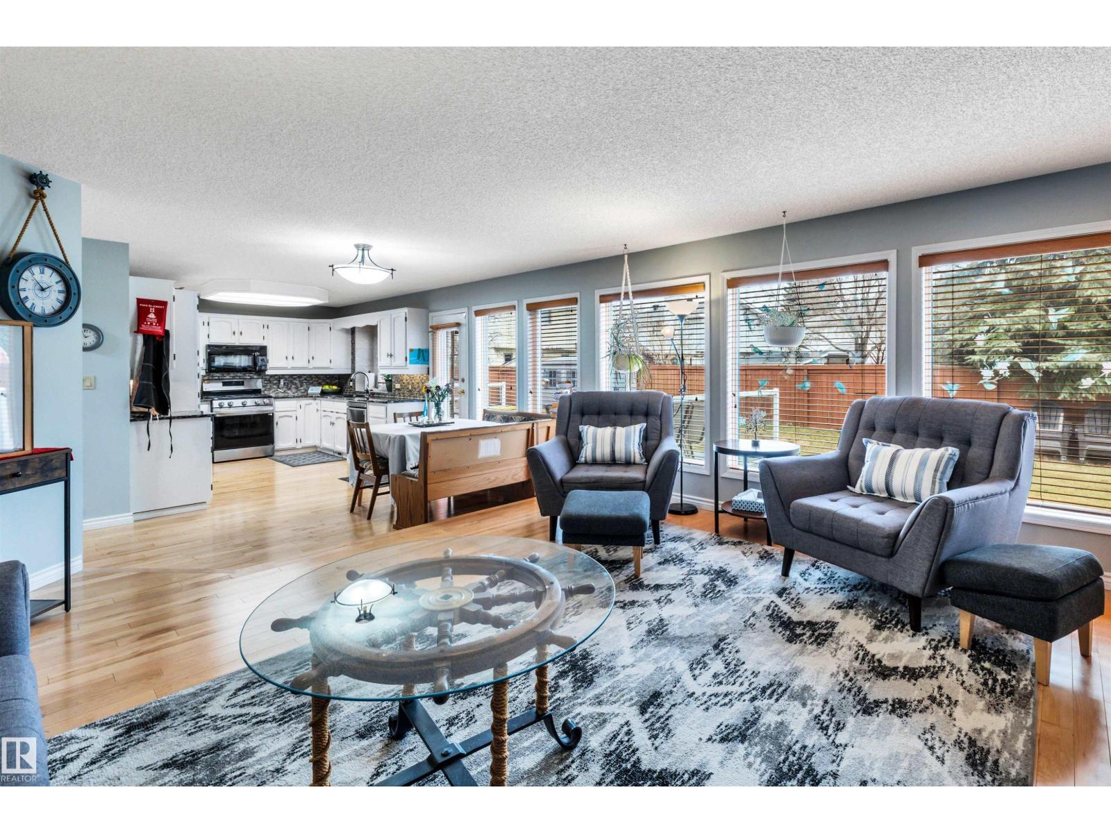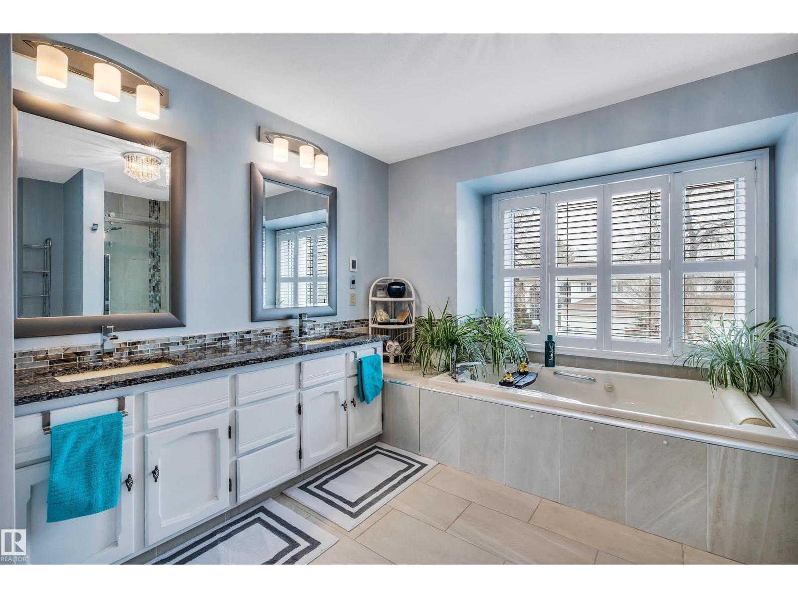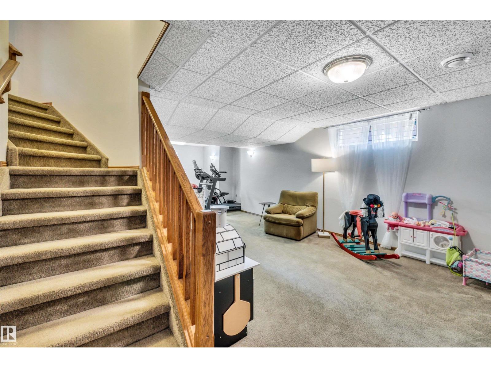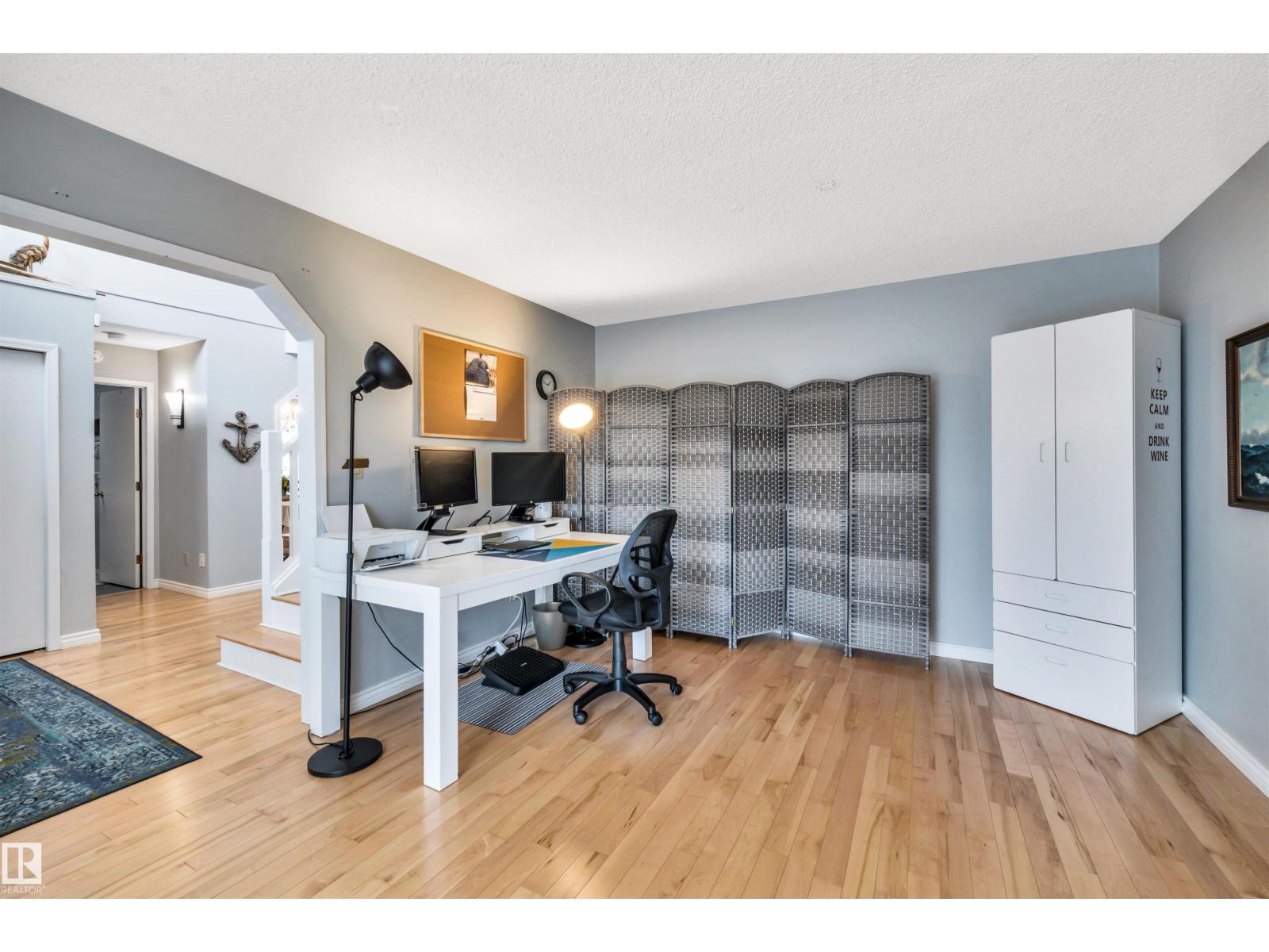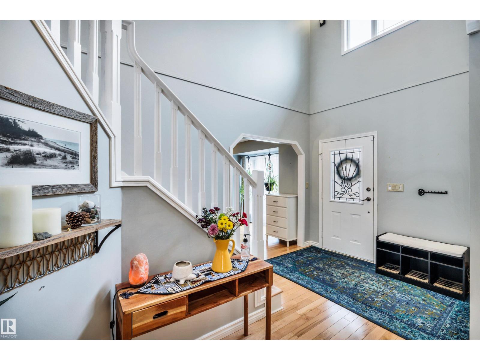 Beautifully upgraded 2250 sq. ft. 2 storey on a quiet, tree-lined crescent! From the bright and open foyer, you’ll see a large flex room perfect for a home office or separate living room. Spacious, white kitchen with newer appliances incl. gas stove, granite countertops and tile backsplash is open to the dining nook. The back of the home features large windows that bring sunshine into the dining nook and a large, raised family room with gas fireplace. Large dining room and main floor laundry round out the main floor which has hardwood flooring throughout. Upper floor features three HUGE bedrooms, including a primary with stunning 5 pce ensuite with heated floors, large shower, jetted tub and massive walk-in closet. Basement is fully finished with 4th bedroom, large rec room, games area and tons of storage. Heated double attached garage with floor drain. Maintenance free deck in backyard and newer wood deck at the front! Recent upgrades include: 2 egress windows in basement, furnace, HWT & central A/C. (id:53676)