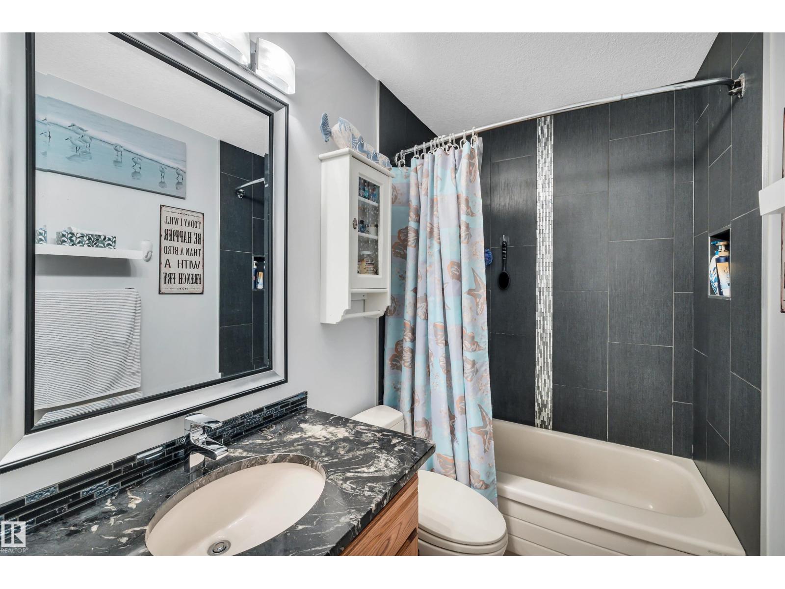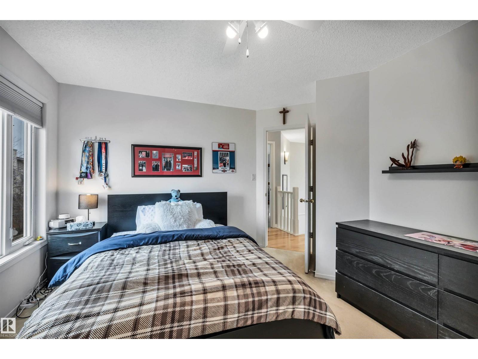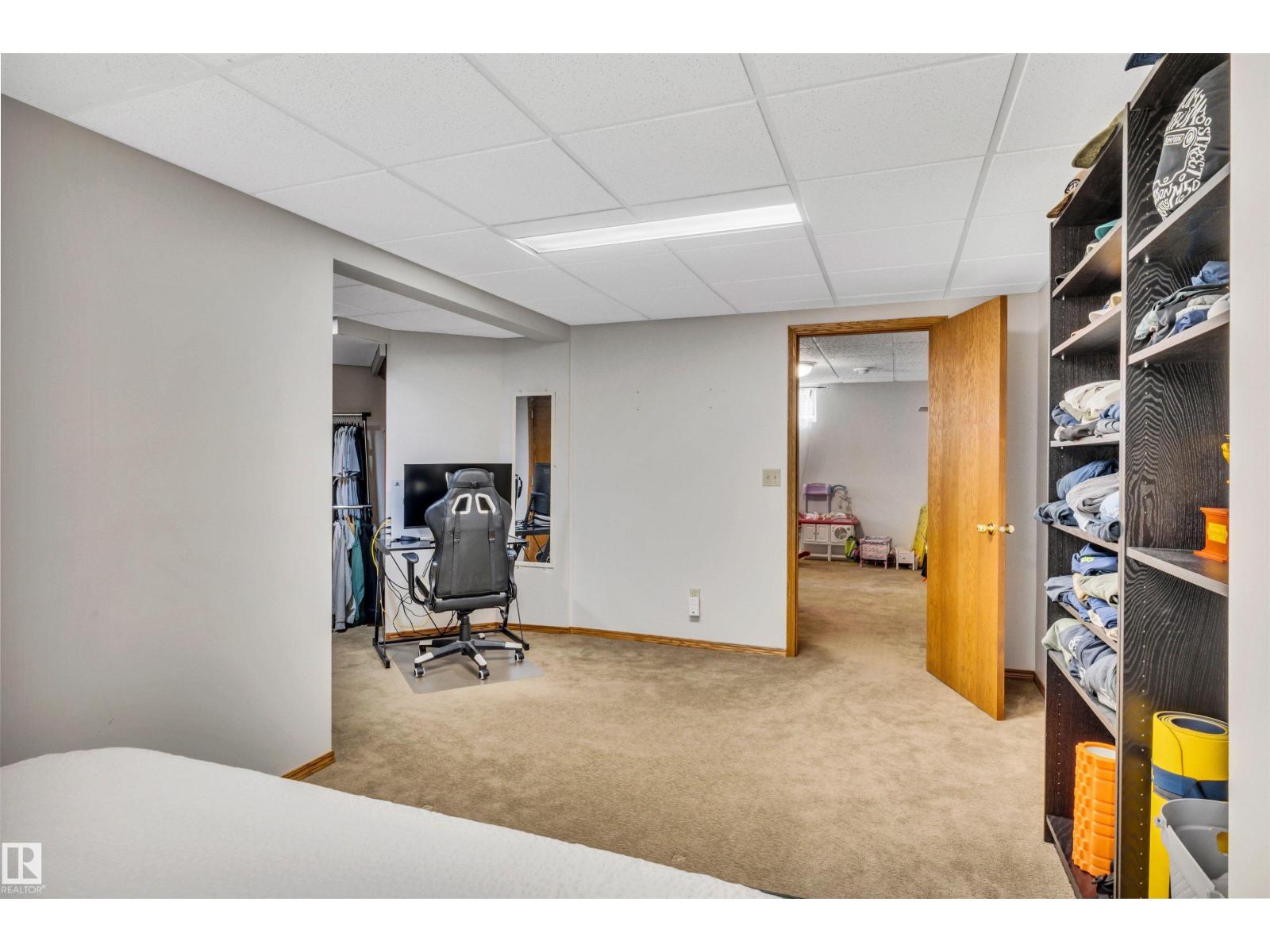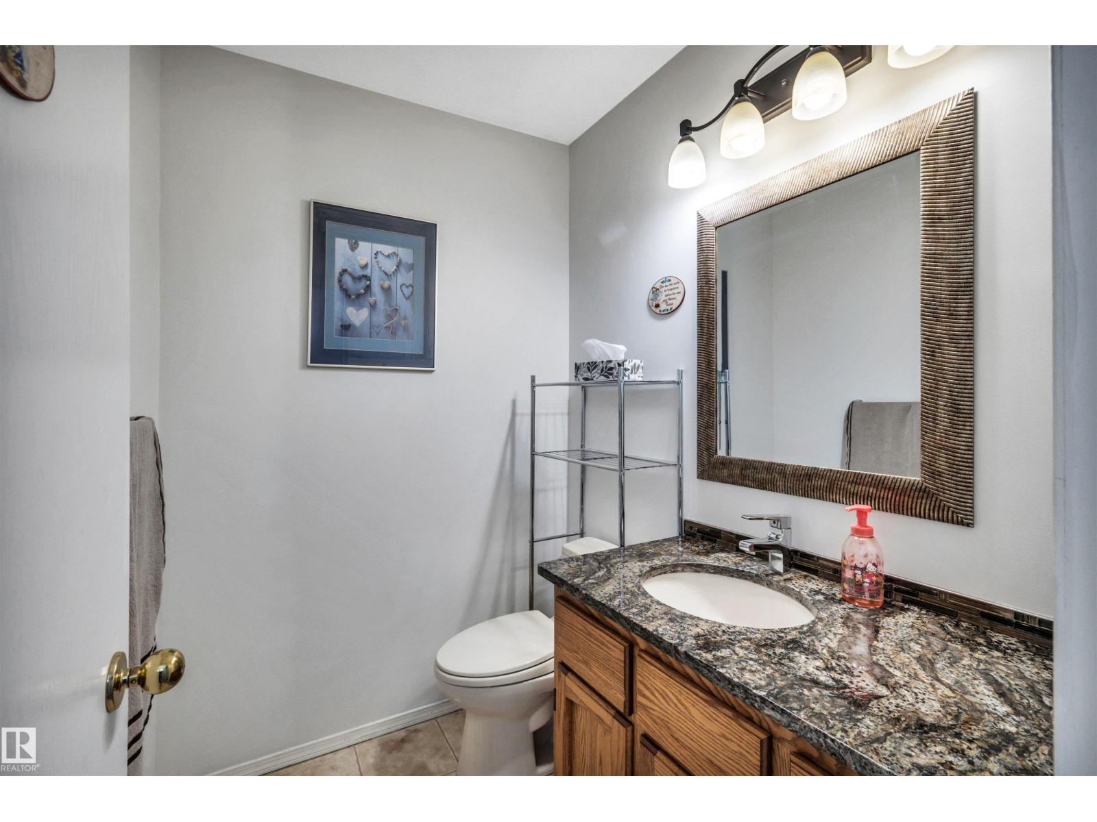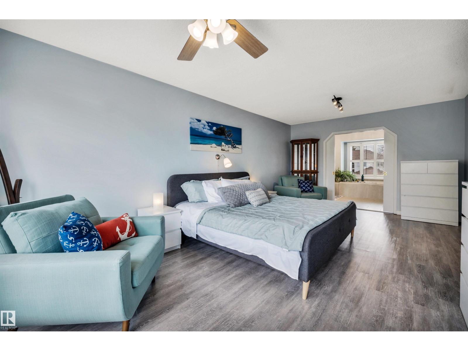 Beautifully upgraded 2250 sq. ft. 2 storey on a quiet, tree-lined crescent! From the bright and open foyer, you’ll see a large flex room perfect for a home office or separate living room. Spacious, white kitchen with newer appliances incl. gas stove, granite countertops and tile backsplash is open to the dining nook. The back of the home features large windows that bring sunshine into the dining nook and a large, raised family room with gas fireplace. Large dining room and main floor laundry round out the main floor which has hardwood flooring throughout. Upper floor features three HUGE bedrooms, including a primary with stunning 5 pce ensuite with heated floors, large shower, jetted tub and massive walk-in closet. Basement is fully finished with 4th bedroom, large rec room, games area and tons of storage. Heated double attached garage with floor drain. Maintenance free deck in backyard and newer wood deck at the front! Recent upgrades include: 2 egress windows in basement, furnace, HWT & central A/C. (id:53676)