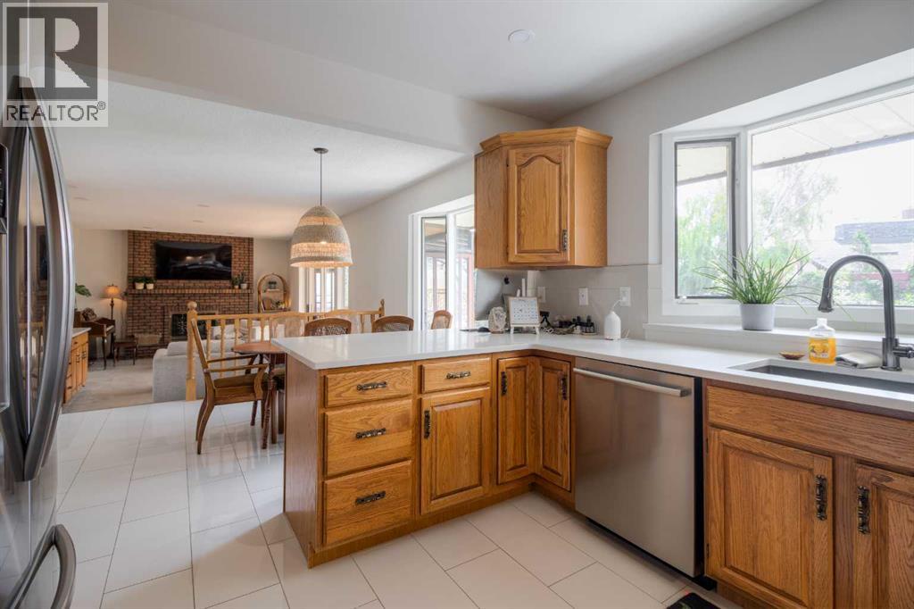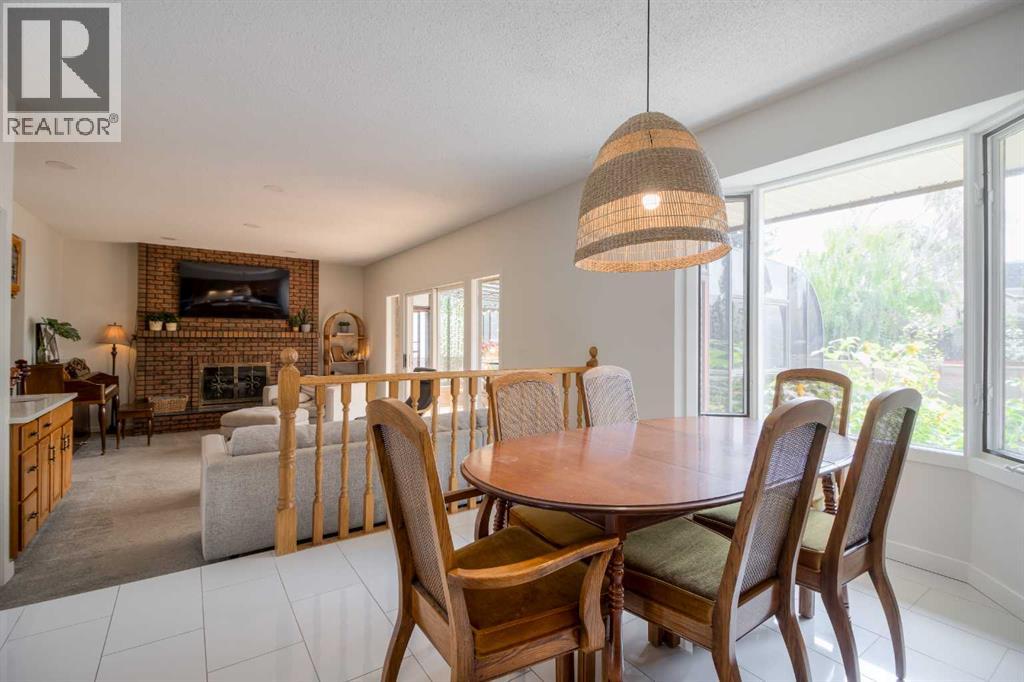 Immaculate and spacious, this 6-bedroom home is ideal for a large or growing family. Step into the grand foyer and you’re welcomed by a formal living room and dining area—perfect for entertaining. The kitchen features sleek stainless steel appliances, beautiful quartz countertops, and opens to a cozy breakfast nook and family room complete with a charming brick fireplace and wet bar. A powder room and main floor laundry add to the convenience.Upstairs, you'll find three bedrooms, including the generously sized primary suite with a walk-in closet and ensuite with shower. A handy laundry chute connects directly to the laundry room below. The fully developed basement offers a spacious rec room with a second brick fireplace, three additional bedrooms, a roughed-in bathroom, and ample storage.Enjoy the warmer months in the seasonal sunroom overlooking the well-landscaped yard. Located just steps from a nearby park, this home is the perfect blend of space, comfort, and family-friendly living. (id:53676)