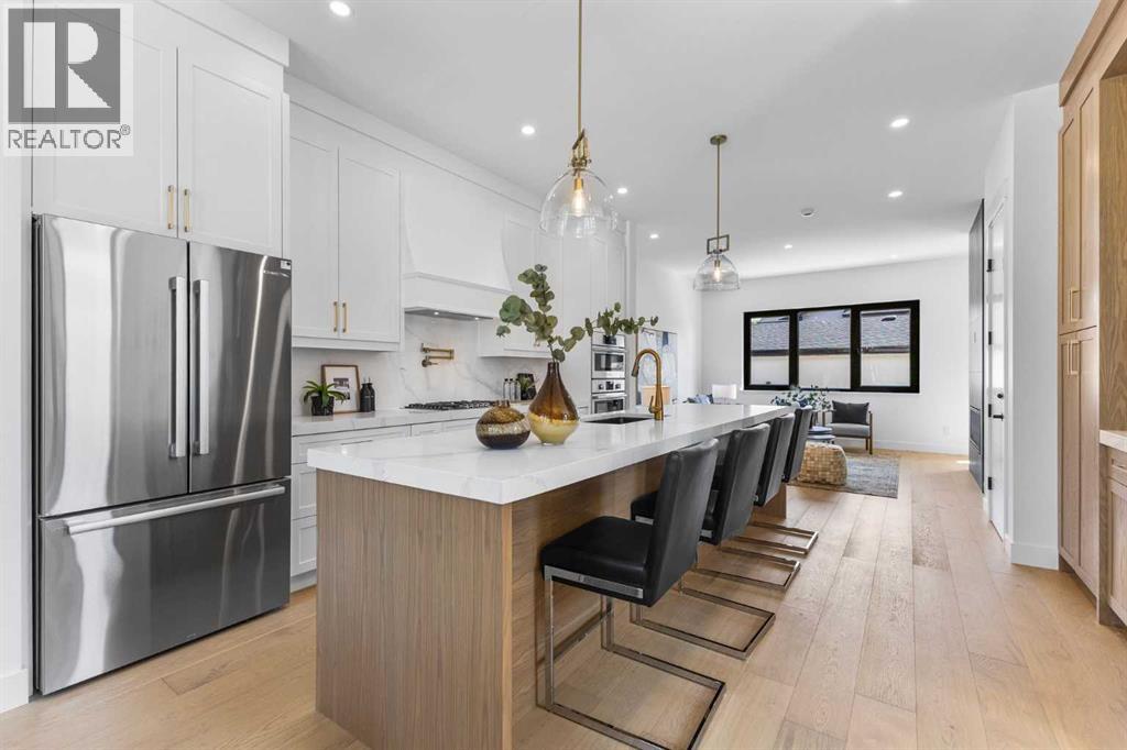 Welcome to your future luxurious semi-detached infill in the desirable community of Glenbrook. This home features a fantastic mortgage helper with a legal 2-bedroom basement suite, providing 847 square feet of private living space, with a separate entrance. You can enjoy the expansive 1,954 square feet of upper living space, which includes 3 bedrooms and 2.5 bathrooms, while renting out the legal basement suite. Glenbrook is the perfect neighborhood for young professionals and families, offering convenient access to shopping, dining, public transit, and excellent schools and parks. This home is designed for modern living with open-concept spaces, high ceilings, elegant lighting and plumbing fixtures, large windows, and an abundance of natural light.Upon entering the home, you'll be greeted by a spacious foyer with a built-in bench for convenient storage. The kitchen is a chef’s dream, featuring a stunning hood fan, ceiling-height cabinetry, a massive quartz island with ample seating, and high-end stainless-steel appliances. The living room boasts large windows, allowing natural light to flood the space, and a cozy fireplace for added warmth. Thoughtful touches like custom cabinetry and shelving provide ample storage while giving you the flexibility to personalize the space.Upstairs, the primary bedroom offers a walk-in closet with built-in shelving/hanging, while the luxurious ensuite features heated floors, a freestanding soaker tub, and a fully tiled shower with glass doors. This floor also includes a dedicated laundry room and two generously sized additional bedrooms with a beautifully appointed 4-piece bathroom.The legal basement suite has its own private entrance from the side of the house, offering two spacious bedrooms, a 4-piece bathroom, and a well-appointed kitchen with ceiling-height cabinets, quartz countertops, a built-in pantry, dual undermount sink, and stainless-steel appliances, including a fridge, electric range, and dishwasher. The basement al so features a spacious living/dining area and in-suite laundry.Don’t let this incredible opportunity pass you by—this home has everything you need and more! Book a showing with your favourite realtor today! (id:53676)