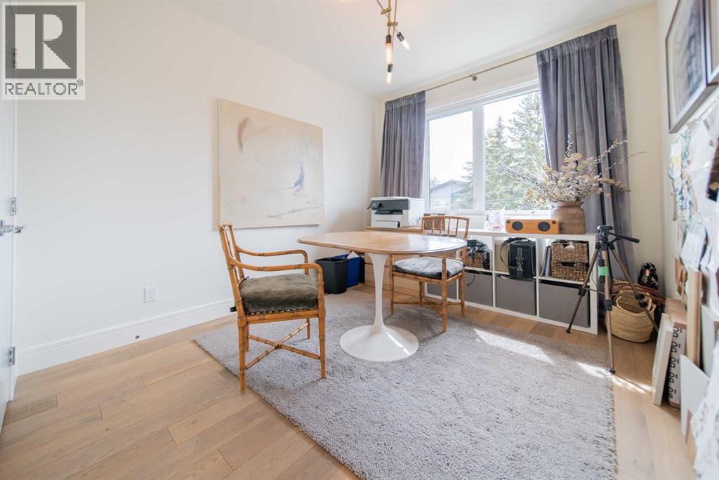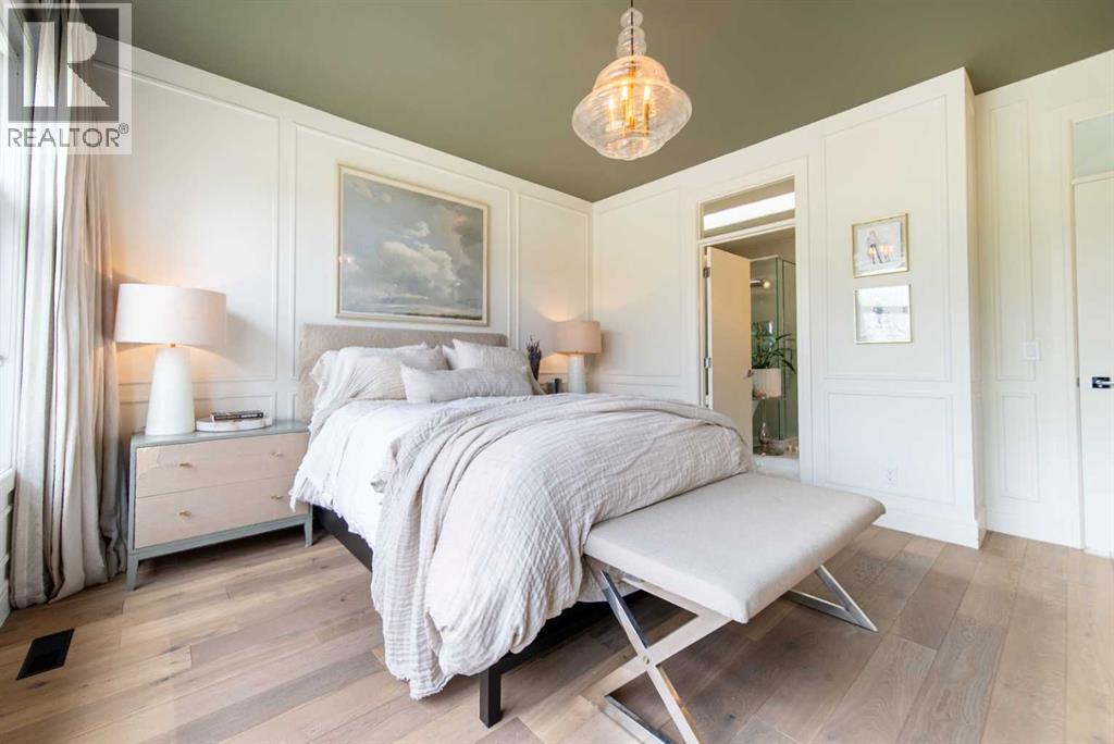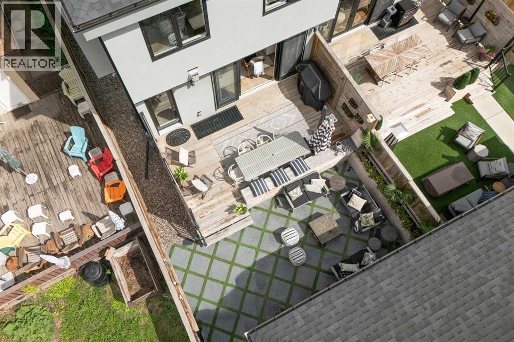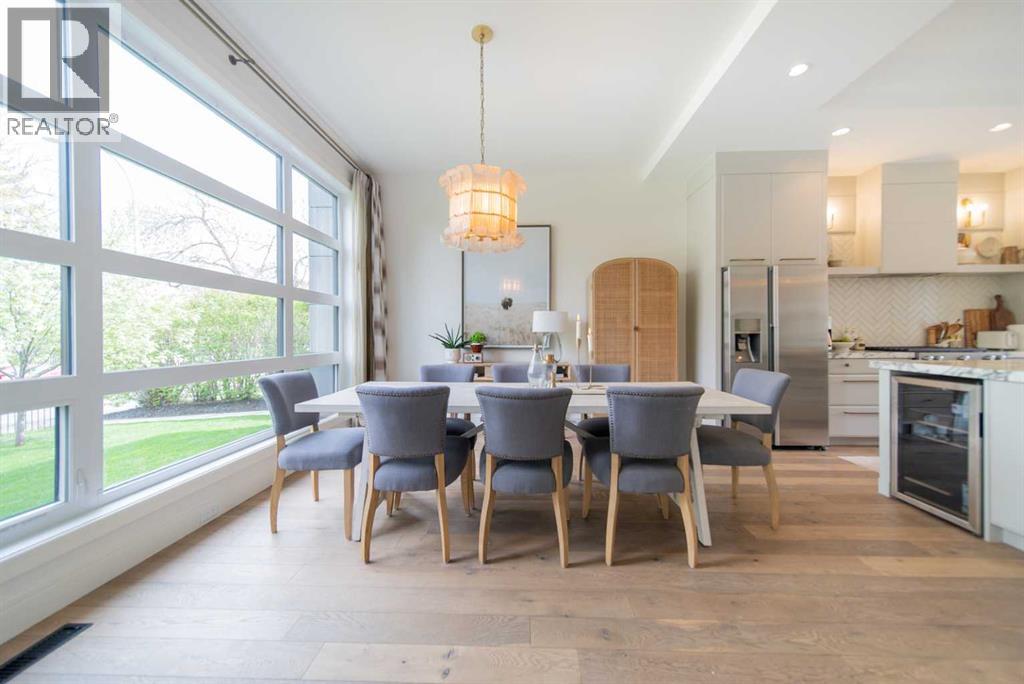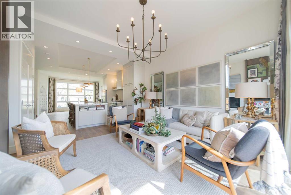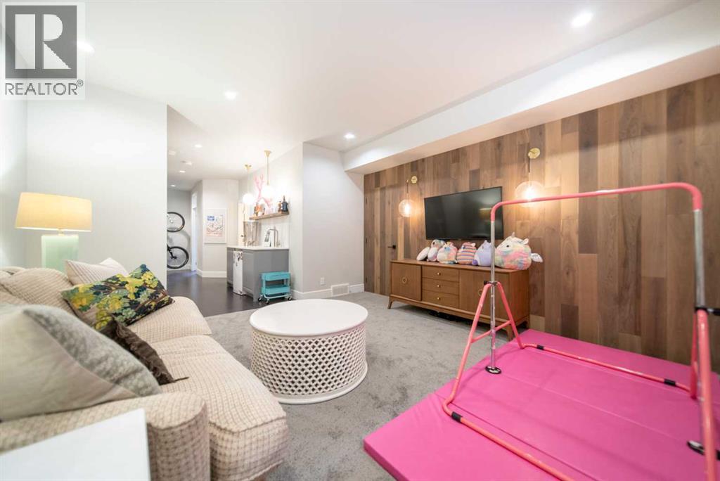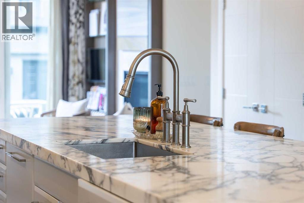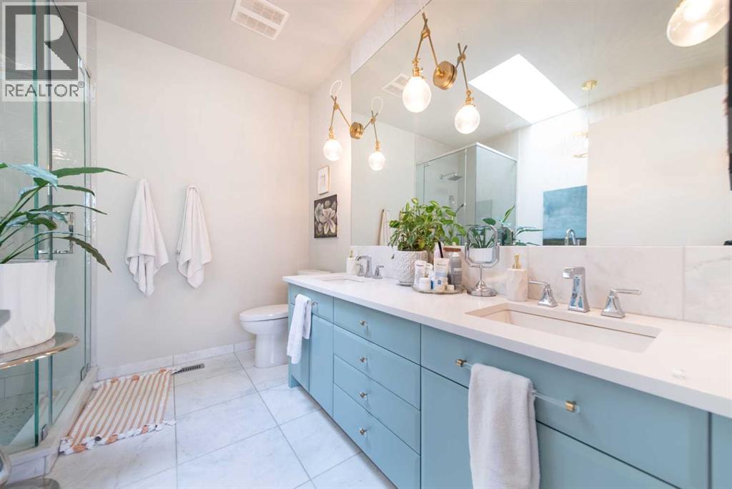 Discover this beautifully curated semi-detached home in the vibrant community of Glenbrook. Offering more than 2,500 sq. ft. of thoughtfully designed living space, this 4 bedroom, 3.5 bathroom residence combines modern elegance with everyday functionality. The main floor showcases an open-concept layout centered around a showstopping honed Arabescato Marble island, complemented by custom Rockpoint cabinetry and premium appliances a dream setup for both entertainers and home chefs. Wide plank Oiled Oak engineered hardwood flows throughout the main and upper levels, while wool carpeting on the stairs adds warmth and sophistication. In the living room, built-in shelving and a gas fireplace create a welcoming focal point, while French sliding doors extend the space to a private west-facing backyard with a deck and stone patio ideal for hosting sunset gatherings. Upstairs, the primary suite is a true retreat with a spa-inspired ensuite featuring heated floors, a freestanding soaker tub, glass enclosed shower, dual vanity, and custom cabinetry. Two additional bedrooms, a functional laundry room and a full bath complete the upper level. The fully finished basement offers even more living space with a sleek wet bar, a large rec room with hidden storage cleverly tucked behind a secret door, plus a guest bedroom with a cheater ensuite. Rounding out this home is an insulated, and heated double detached garage with rough-in for EV charging. Perfectly positioned near parks, schools, and everyday conveniences, this property delivers upscale living in one of Calgary’s most desirable neighbourhoods. (id:53676)