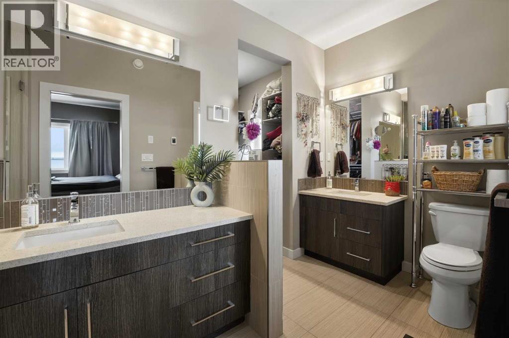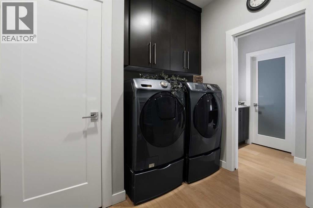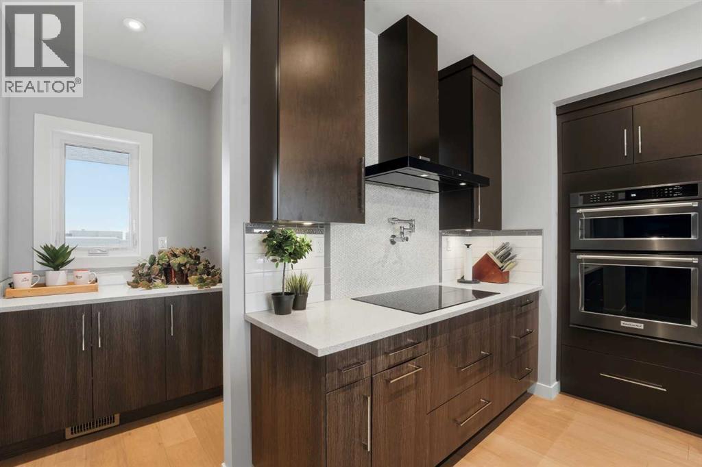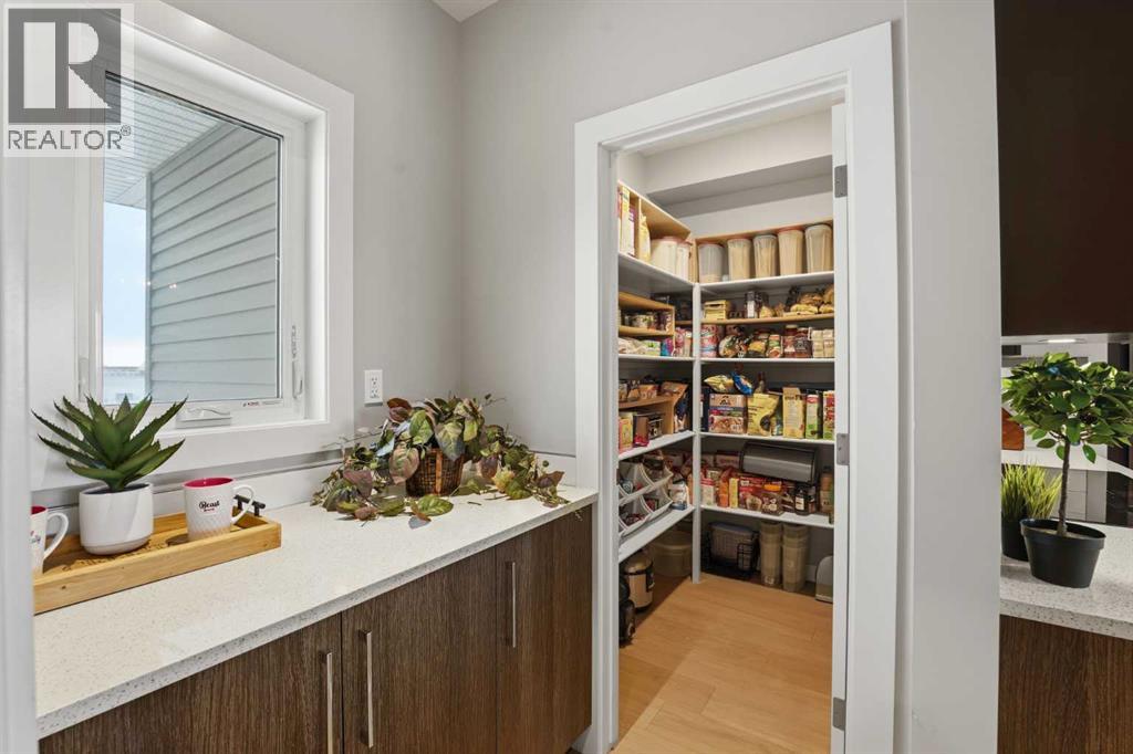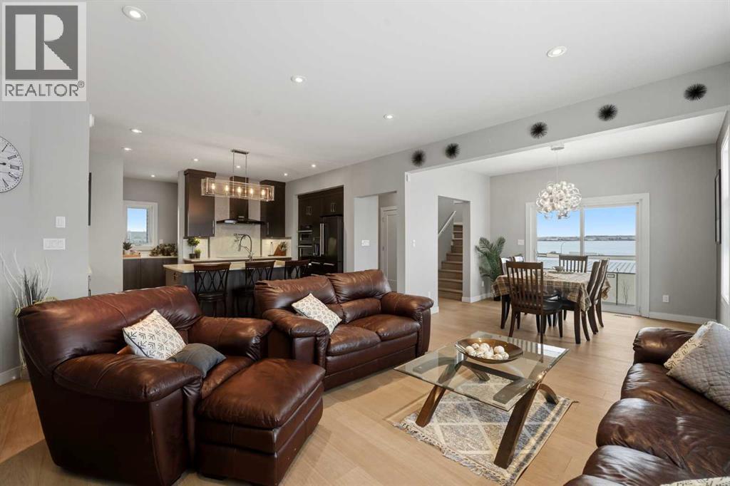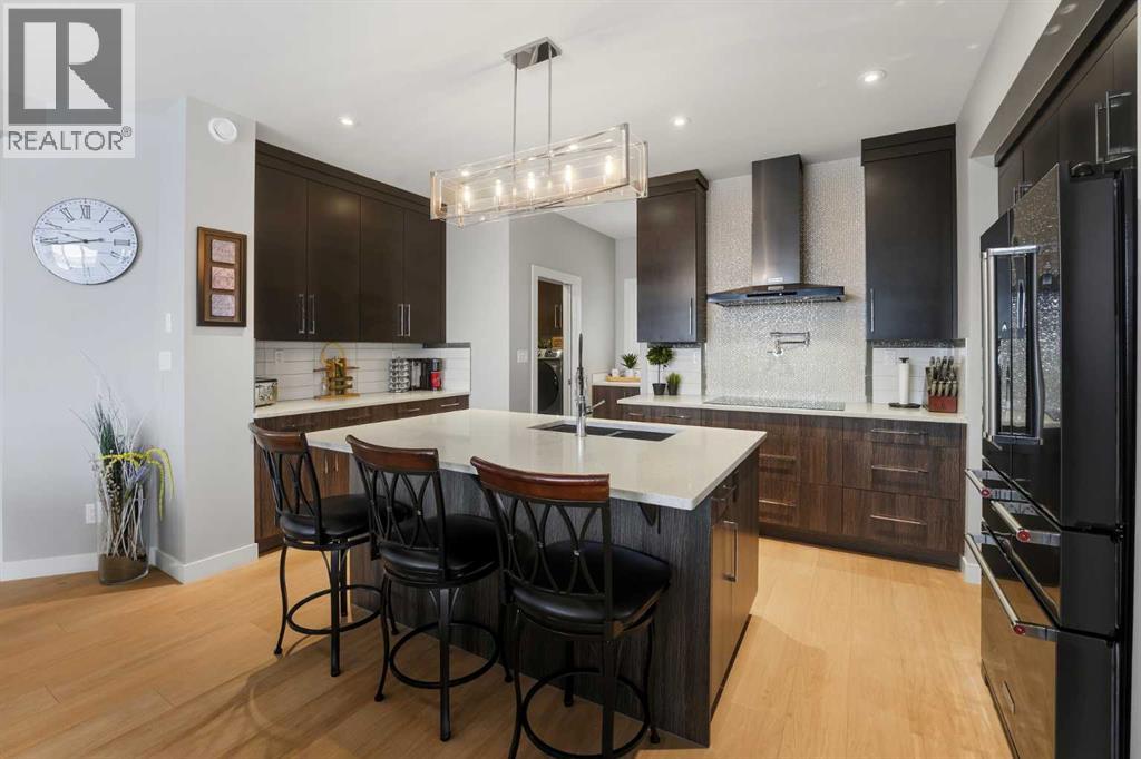 Experience the height of modern luxury in this custom-built Mason Martin home, where an abundance of designer windows creates a beautifully bright and open atmosphere. The gourmet kitchen is a chef’s dream, featuring premium quartz countertops, a stylish backsplash, slate appliances, an induction stovetop with a pot filler, and both walk-in and butler’s pantries. Uniquely designed for convenience, the spacious primary suite is located on the main floor and boasts a luxurious ensuite with a custom no-lip shower and walk-in closet. The upper level offers two additional bedrooms and a sun-drenched bonus room ideal for an office or play space, while the massive walk-out basement features in-floor heating ready for your future development. Complete with central A/C, a heated flex room off the garage perfect for a gym or workshop, and footings already in place for a future deck, this one-of-a-kind property is perfectly situated at the end of a quiet close with a stunning view. (id:53676)