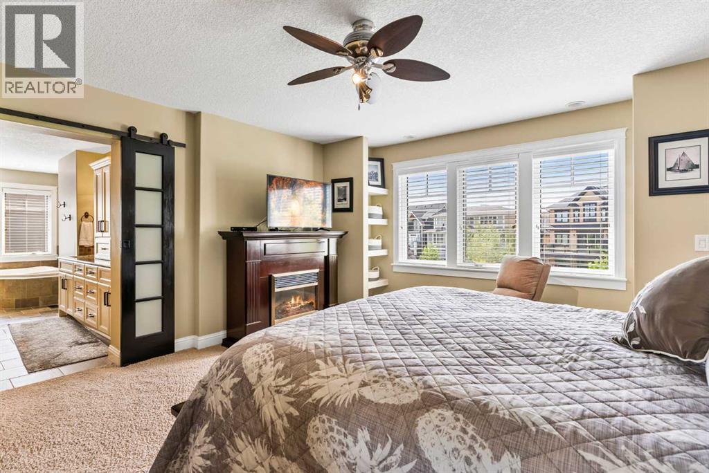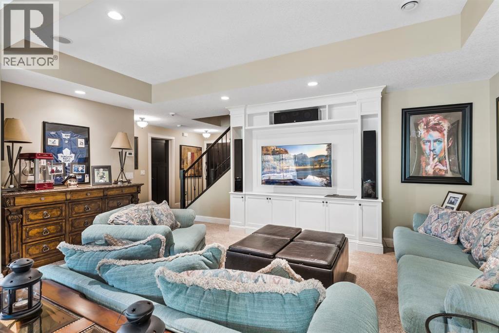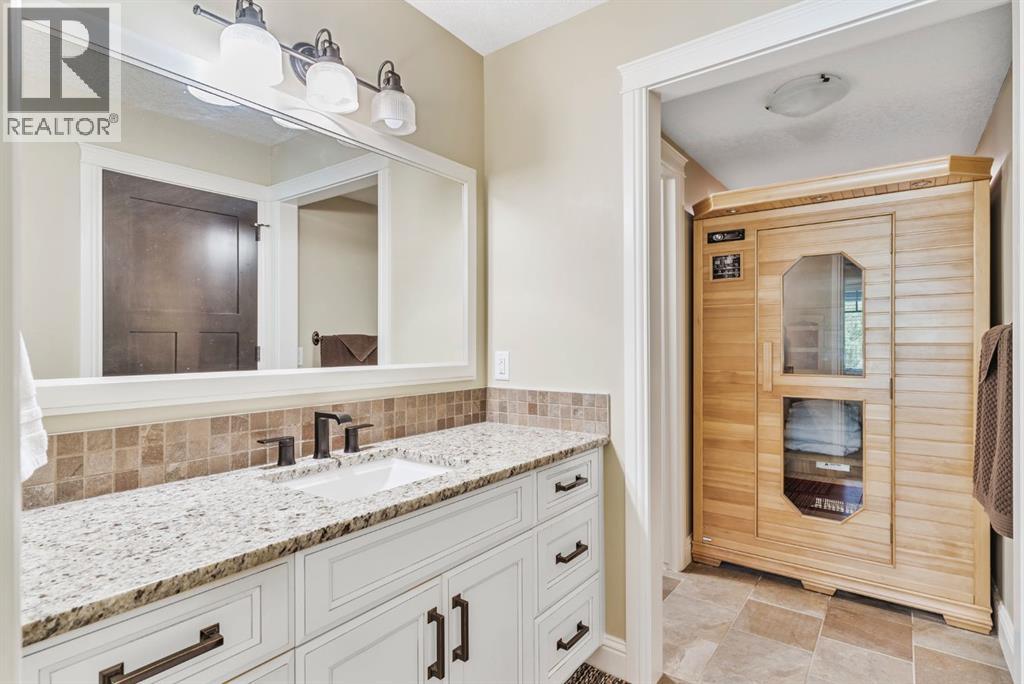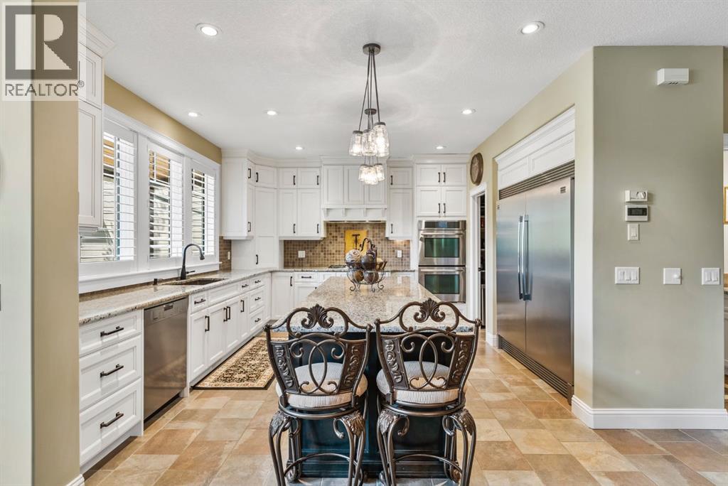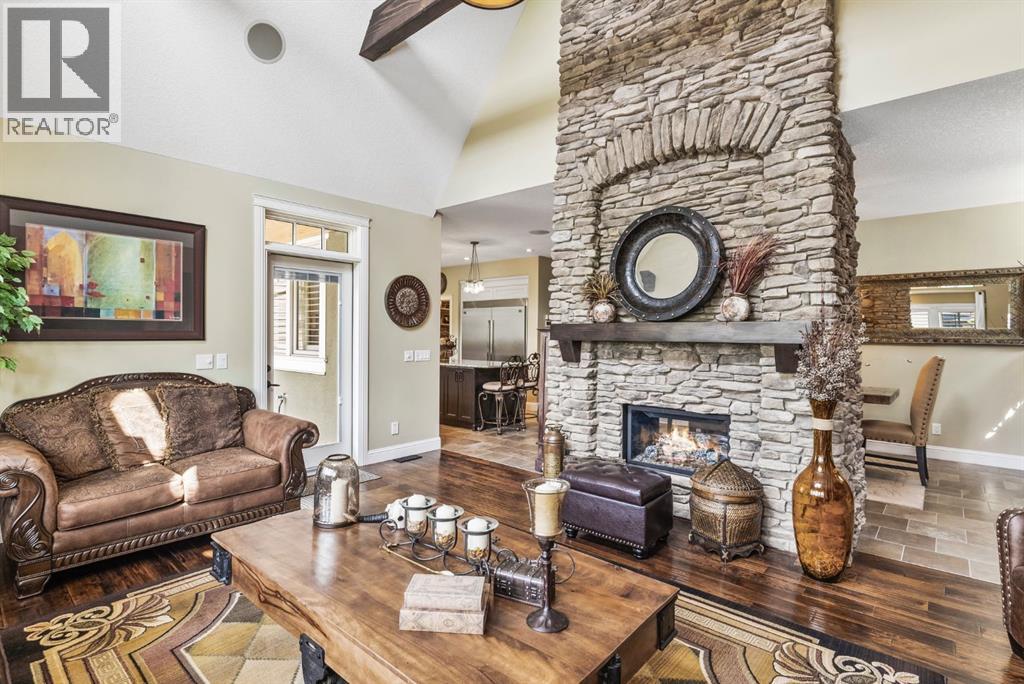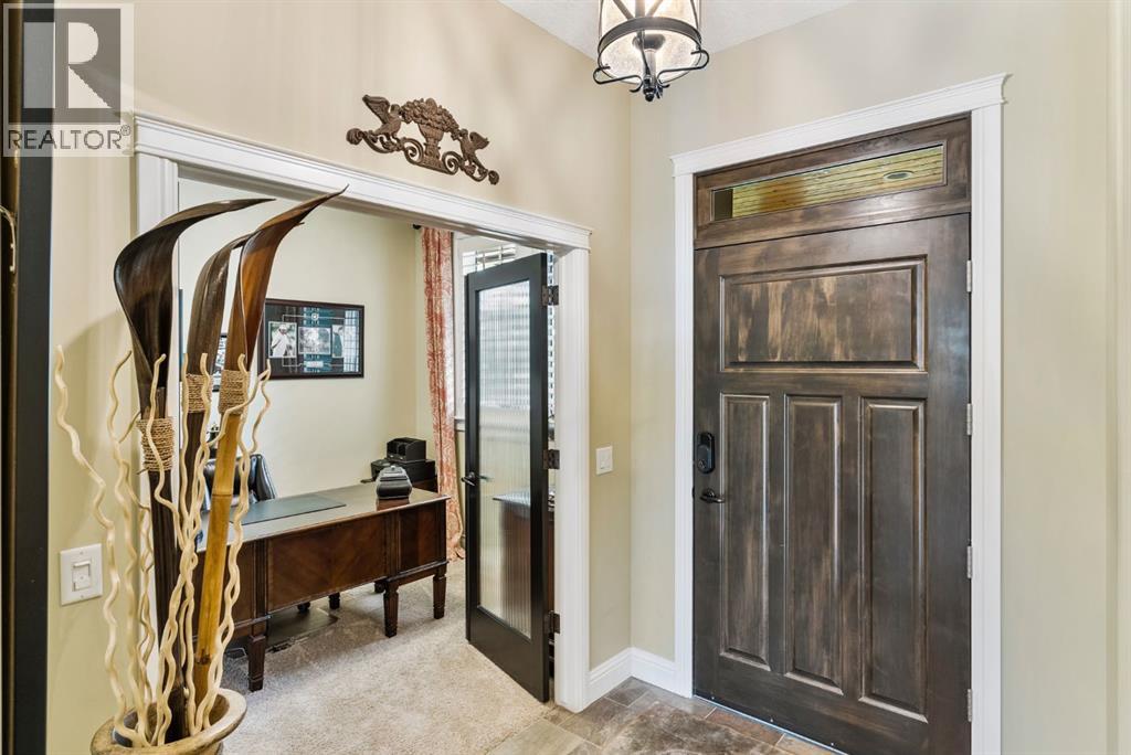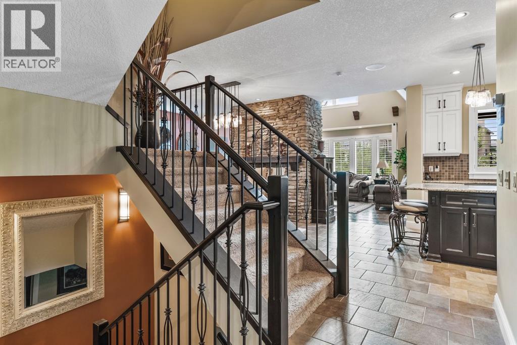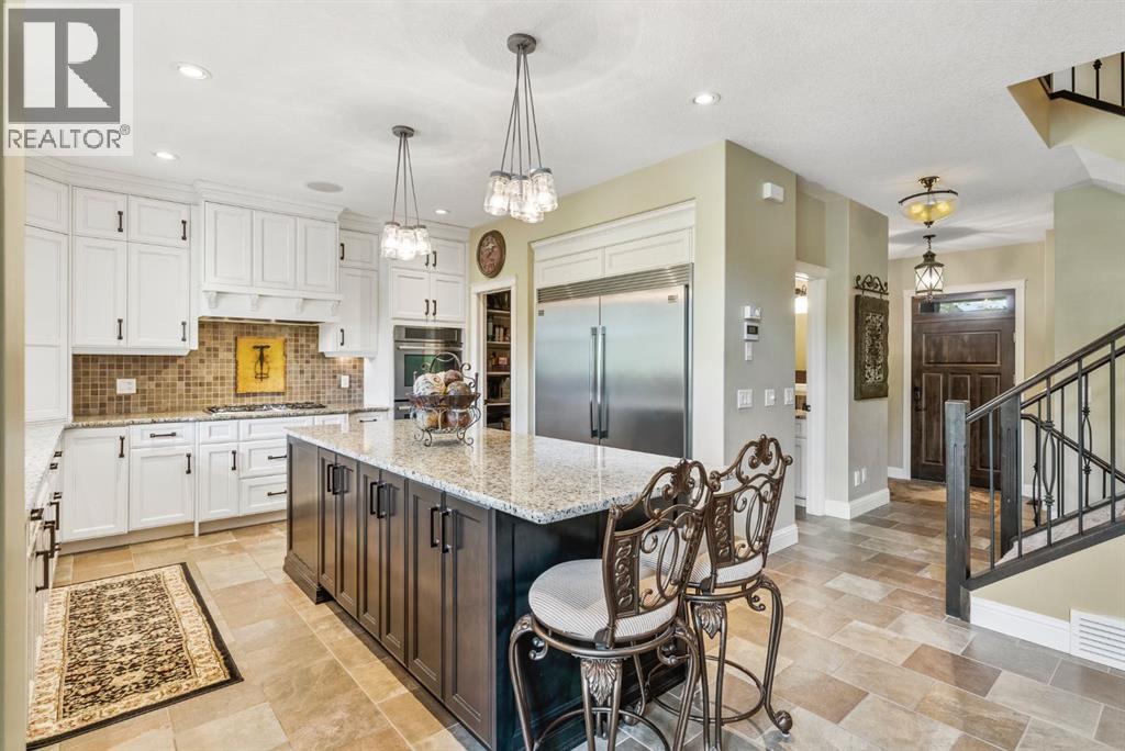 Get ready to fall in love.Welcome to 384 Coopers Terrace, a show-stopping walkout estate home in the heart of the prestigious Coopers Crossing. Perfectly positioned at the end of a quiet cul-de-sac and backing onto serene green space and walking paths, this property is the definition of elegance, craftsmanship, and timeless design.From the moment you arrive, the curb appeal impresses—with a sophisticated stone and stucco exterior, manicured landscaping, exposed aggregate concrete, and a massive triple tandem garage that checks every box.Inside, the wow-factor continues. This home has been immaculately maintained and offers refined touches throughout—from soaring vaulted ceilings to custom built-ins and premium finishes. The grand foyer welcomes you with space and warmth. To one side, a private office with custom cabinetry. To the other, a spacious mudroom with a walk-in closet designed for busy lives.The heart of the home is the gourmet kitchen—a dream for both chefs and entertainers. Outfitted with built-in stainless steel appliances including a Frigidaire Professional dual-door fridge, JENN-AIR gas cooktop & oven, and MIELE dishwasher, this kitchen blends functionality and beauty. A massive island, granite countertops, and warm wood shaker cabinets elevate the space, while the massive walk-in pantry ensures everything has a place.The open-concept main level features sky-high vaulted ceilings, with an 18 ft dual-sided stone fireplace that warms both the dining area and the inviting living room, drenched in natural light from oversized windows.Upstairs, the primary retreat is your own private escape—featuring a spa-like ensuite and large walk-in closet. Three more generously sized bedrooms, each with walk-in closets, and a versatile bonus room above the garage (think playroom, gym, or yoga sanctuary) complete the upper level.Downstairs, the fully finished walkout basement expands your living space with an additional bedroom, 4-piece bathroom with sauna, a hug e rec room, and a cozy family room perfect for movie nights or game days. Walk out to your professionally landscaped, low-maintenance backyard, finished with high-end astroturf and exposed aggregate paths for year-round beauty without the hassle.Just minutes from top-rated schools, shops, parks, and a quick commute to Calgary or the mountains—this home is the total package.Homes like this don’t come up often. Book your private tour today and see why 384 Coopers Terrace is the one you've been waiting for. (id:53676)