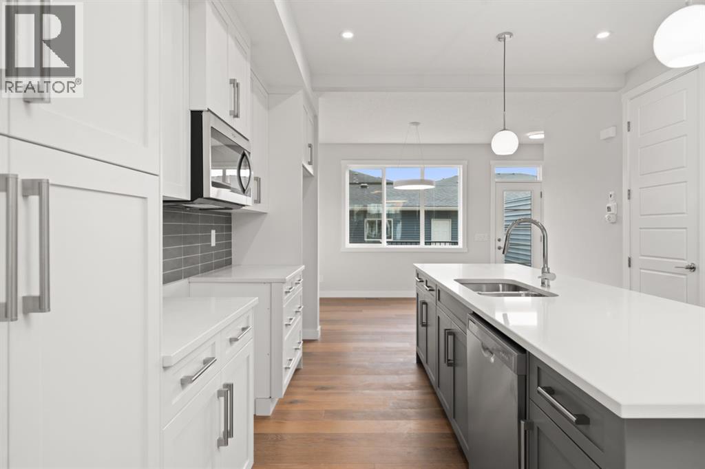 Welcome to 384 Sora Blvd! You'll love the large open kitchen with a huge quartz topped island- perfect for busy mornings, casual family meals, and hosting friends. 9-foot ceilings and large windows flood the space with natural light. Durable engineered hardwood and modern finishes ensure this home looks stylish today and for years to come. Upstairs, the primary suite with walk-in closet and ensuite provides a private retreat, while two additional bedrooms adapt as your family grows- whether you need space for kids, guests, or a home office. Upstairs you'll also find a laundry closet, conveniently located near the bedrooms. With a detached double garage, no condo fees, and the peace of mind that comes with new-home warranty protection, this home is built with your future in mind. Located with quick access to Deerfoot and Stoney Trail, commuting and zipping around the city is a breeze. Surrounded by wetlands, pathways, and green space, Sora blends the calm of nature with easy access to the conveniences homeowners need. *** The First-Time Home Buyers' GST Rebate could save you up to $50,000 on a new home! You must be 18+, a Canadian citizen or permanent resident, and haven't owned or lived in a home you or your spouse/common-law partner owned in the last four years. Terms and conditions are subject to the Government of Canada/CRA rules and guidelines.*** (id:53676)