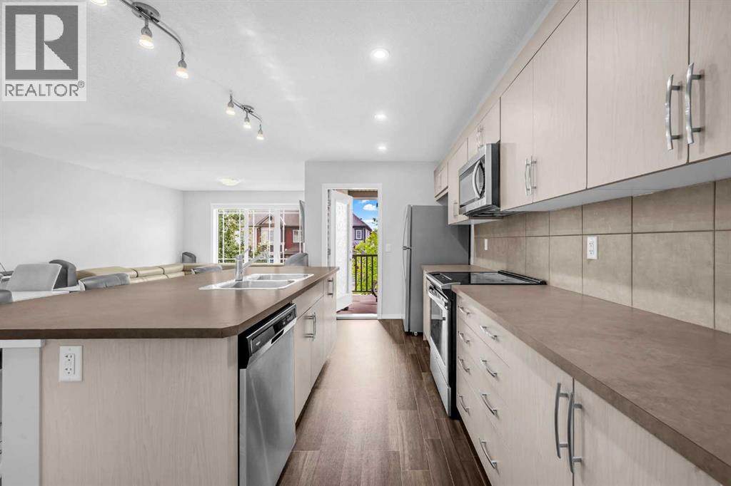 Welcome to this modern three-storey townhouse in Cityscape (NE Calgary), offering 1,341 sq ft of well-designed living space. The contemporary kitchen features countertops, stainless steel appliances, and ample cabinetry. Upstairs, discover two spacious bedrooms, including a comfortable primary with excellent closet space and attached full bathroom. The convenience of upper-floor laundry makes daily routines simple. Parking is a breeze with a single attached garage plus driveway parking. Exceptional value, a fantastic location, and low condo fees round out the package.This interior unit blends contemporary style with everyday practicality—ideal for first-time buyers, professionals, or investors. The bright, open living area is designed for both entertaining and day-to-day living, with a generous living/dining zone flowing into the sleek kitchen. A sunny balcony extends the space for morning coffee or evening BBQs. Situated in a growing community close to parks, shopping, schools, transit, major roadways, and the airport, this home offers low-maintenance living without compromising comfort or convenience. Book your showing today. (id:53676)