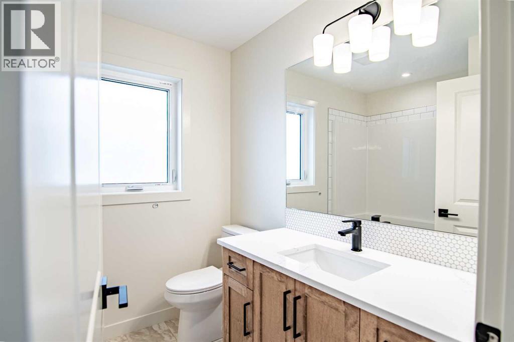 Beautiful New Build with a TRIPLE ATTACHED garage by Bella Rosa Developments Ltd. is now completed and ready for immediate possession! This gorgeous property showcases oak vinyl plank which will run all throughout the main floor. The open concept main level features a gorgeous kitchen with upgraded stainless steel appliances (water line to fridge), full tile backsplash, quartz counters, and a pantry. Off of the dining room you can access the 10x12 South facing deck with a gas line. The backyard is fully fenced & landscaped. Off the garage there is a bench & hooks perfect for the kids. Upstairs is a great layout with 3 bedrooms including the primary suite with a walk-in closet and ensuite with a double vanity with quartz counters and a large shower. Two additional bedrooms great for young kids, a beautiful 4pc bathroom with quartz counters and the laundry room complete the upper floor. The undeveloped basement awaits your finishes. The 23x29 attached garage has R/I heat. Located in a great spot with a nice size yard this new build is loaded with value! (id:53676)