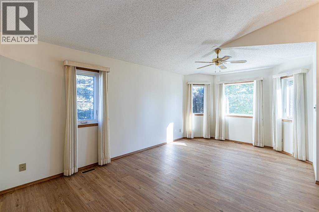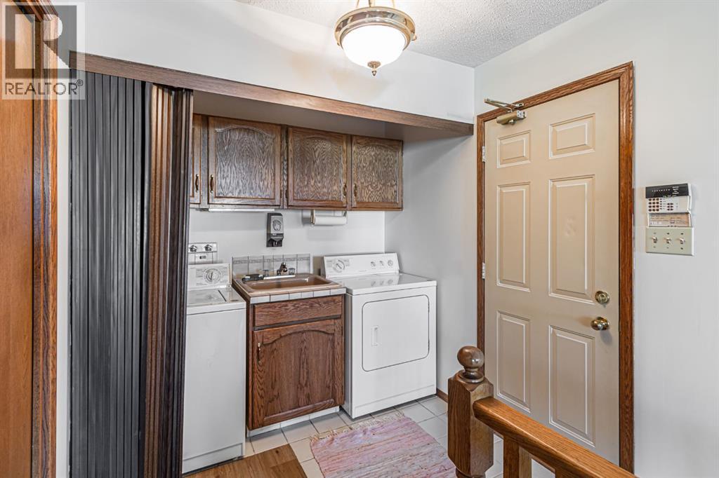 Here it is! A solid & well maintained home, located on one of the best streets in the area! w/corner lot and ample parking! Excellent curb appeal on this quiet location. This 4 bedroom/ 3 bath room bungalow offers 1,290 sq ft of living space, complemented by an attached double heated garage and vaulted ceilings. As you enter, you are greeted by a formal living/dining room combo that flows into the kitchen with oak cabinets & newer counters. Enjoy the warmth of a stone surround wood burning fireplace and beautiful vinyl plank floors throughout both levels. The main floor consists of a primary bedroom with a 4-piece ENSUITE, an additional bedroom which could be used as an office, and you have the convenience of main floor laundry. The basement offers a large spacious family room, 2 additional bedrooms and a 3 piece bath. Recent updates include new paint, new floors, a 2021 water heater, High Efficiency furnace in 2017, and all windows and shingles (less than 10 yrs). This home has been well maintained and updated and awaits a new owner! *This home can be converted into a 5/6 bedroom house, 2 up/3/4 down with minimal work! Conveniently located near shopping, schools, park, and playground, C- train access, Weather you are young professionals or a retired couple, this is a great opportunity, don't miss out on this one! (id:53676)
