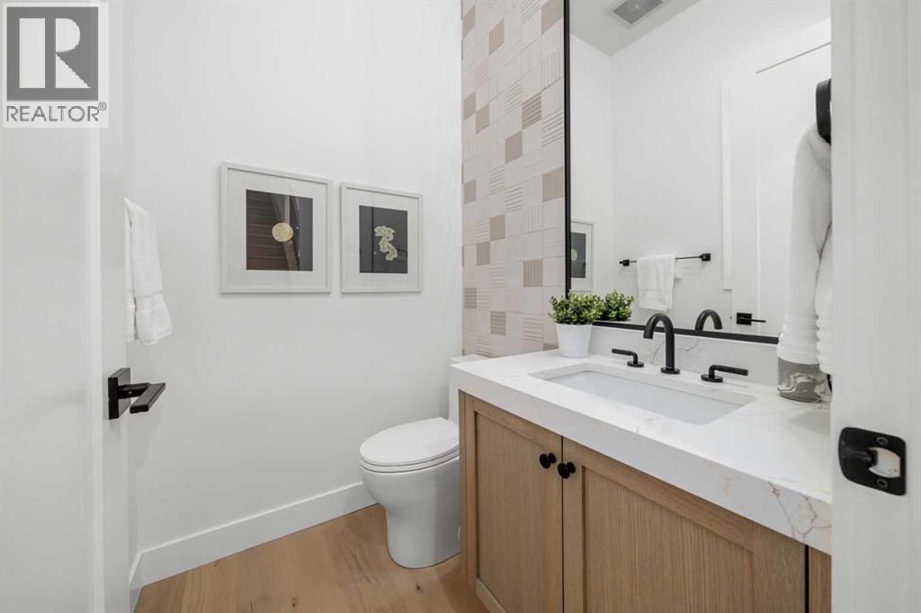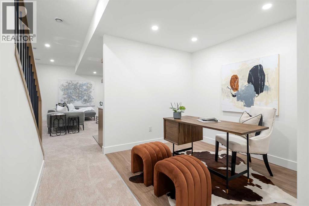 Welcome to 3919 19 Street SW, a beautifully designed home that perfectly blends modern elegance, comfort, and functionality. This thoughtfully crafted residence offers spacious living areas, high-end finishes, and an ideal layout for families and entertainers alike.The fully developed basement provides an inviting space for relaxation or hosting guests, featuring a large rec room, stylish wet bar, comfortable bedroom, and a full bathroom. On the main floor, the open-concept design showcases a sophisticated dining area and a gourmet kitchen with premium finishes, seamlessly flowing into a bright and airy living room complete with a cozy fireplace—the perfect spot to unwind. A well-appointed mudroom adds functionality and organization to the space.Upstairs, the primary suite is a true retreat, offering a spacious walk-in closet and a spa-inspired ensuite designed for ultimate relaxation. Two additional generously sized bedrooms, each with their own ensuite and closet, provide comfort and privacy for family or guests. The convenient upper-floor laundry ensures everyday ease.Situated in a highly desirable location, this exceptional home offers both luxury and convenience—a must-see for those seeking refined living in an incredible community! **Interior photos represent a home by the same builder with a similar layout, though finishes may vary.** (id:53676)
