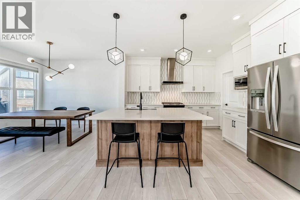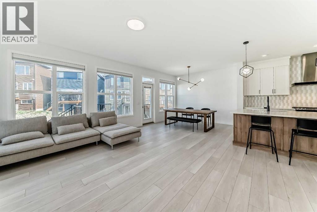 This fully upgraded 4-bedroom home , 9 ft and flat ceilings through the entire house, on a desirable pie-shaped lot offers comfort, and functionality in the sought-after community of Carrington. The main floor features a bright, open-concept layout. oversized windows, and a convenient main-floor bedroom with a full bath—ideal for guests or seniors. The chef’s kitchen is the heart of the home, with abundant cabinetry, expansive counters, a gas range, built-in microwave and oven, stainless steel appliances, and a large center island. The dining area flows into the inviting living room with a cozy electric fireplace. Upstairs, the spacious bonus room separates the luxurious primary suite—with a 5-piece ensuite and walk-in closet—from two additional bedrooms and the full bathroom. A convenient upper-level laundry adds to the home’s functionality. The fully developed basement provides a versatile recreation or play area, while the expansive backyard offers plenty of space for kids and pets to play. Located close to parks, schools, and shopping, this home delivers the best of Carrington living in a prime NW Calgary location! (id:53676)