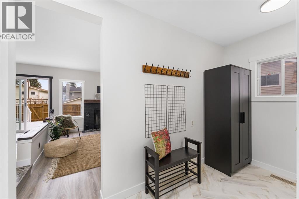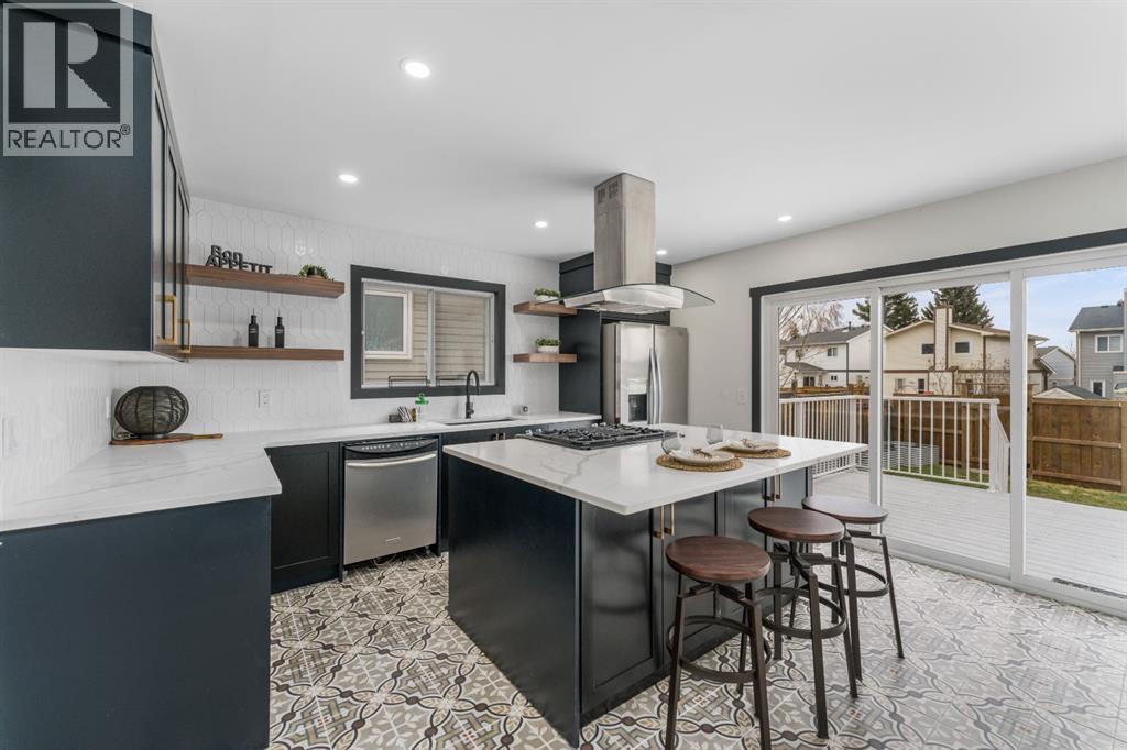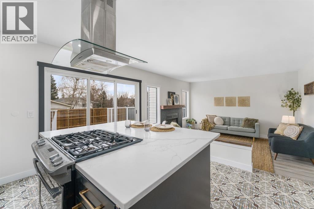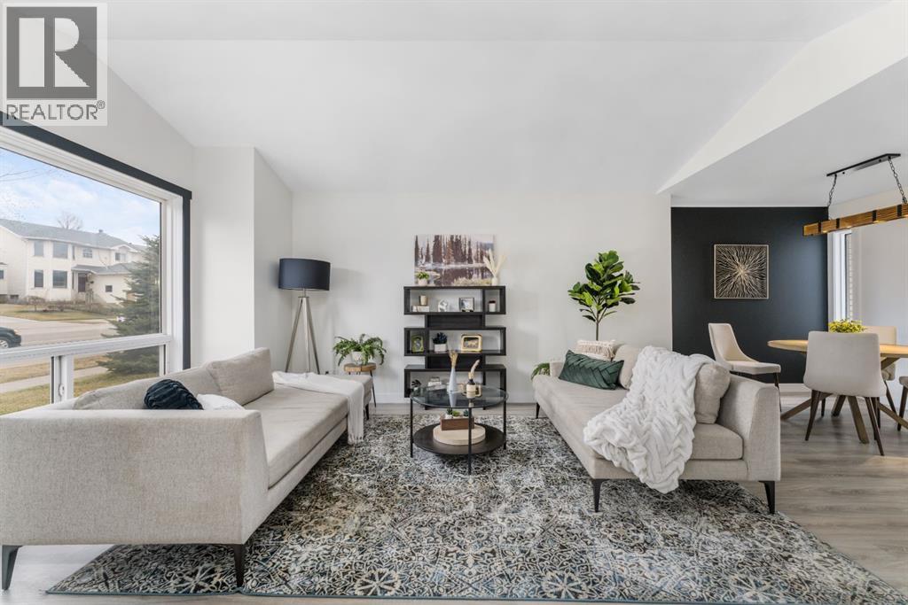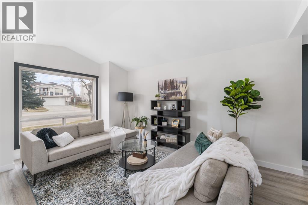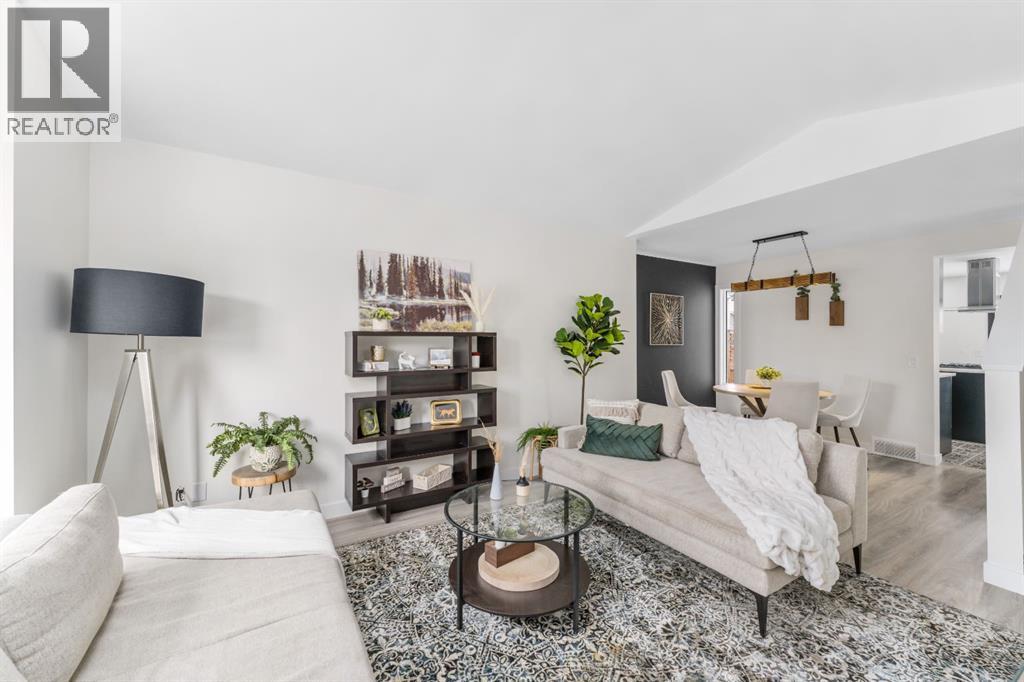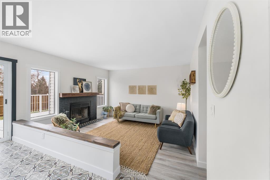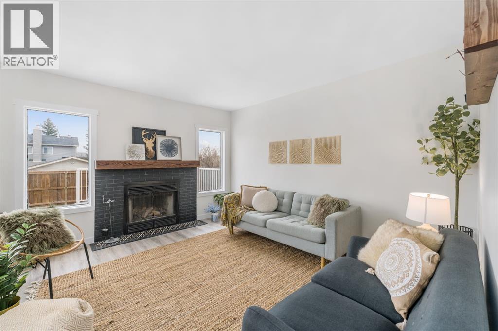 Beautifully renovated and ready to impress in Millrise! This 4-bedroom, 2.5-bathroom home has been transformed with modern finishes and thoughtful upgrades throughout. From the moment you walk in, the vaulted ceilings and oversized west-facing window set the stage for a bright, welcoming main floor. The open-concept layout flows into a designer kitchen with striking black cabinetry, a quartz island, and a statement range hood. Brand-new triple-panel sliding doors open to the backyard—where a rebuilt deck, fresh railings, and a new fence create the perfect space for outdoor living. A cozy sunken family room with a wood-burning fireplace adds character and warmth, while the large mudroom and chic 2-piece bath keep the main floor both stylish and functional. Upstairs, the primary suite is a relaxing retreat, highlighted by a custom feature wall and ample closet space. Two additional bedrooms and a fully renovated bathroom with double vanity, custom tile, and stacked laundry complete the upper level.The basement extends your living space with a spacious rec room finished with brand-new carpet, a 4th bedroom, and an upgraded 3-piece bath with a walk-in shower. Set on a quiet street close to schools, parks, shopping, and transit, this home blends style, comfort, and convenience. Everything is done—move in and make it yours! (id:53676)