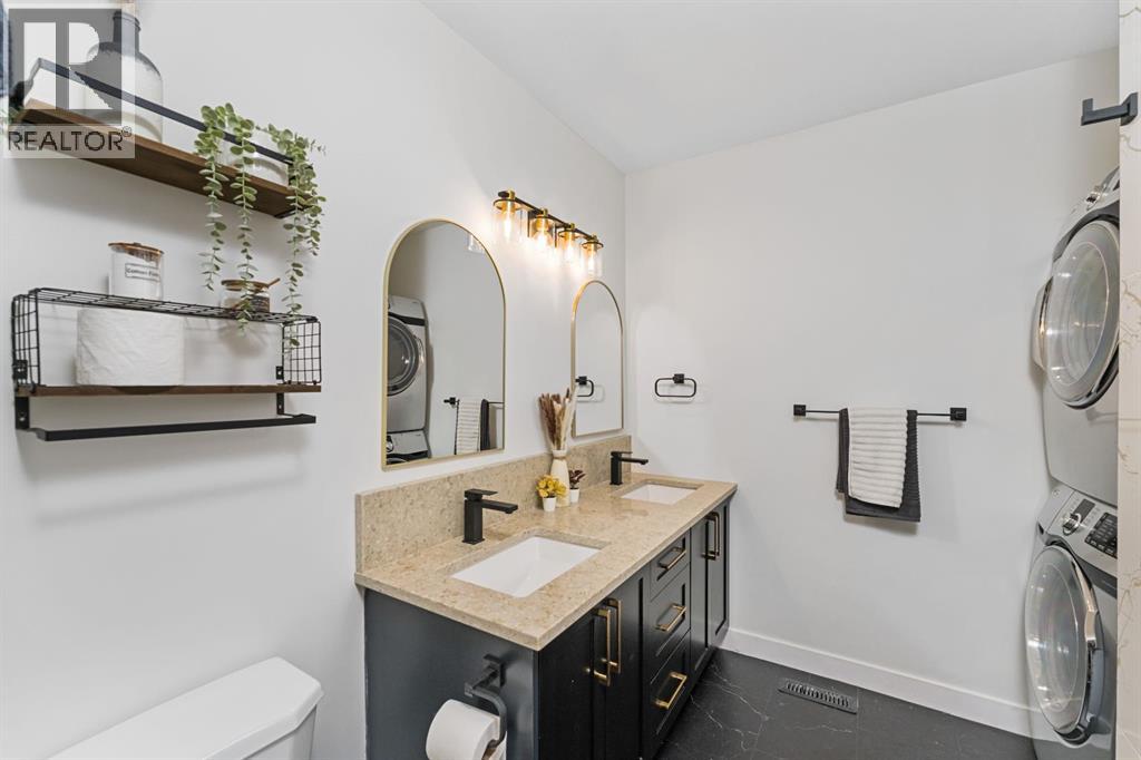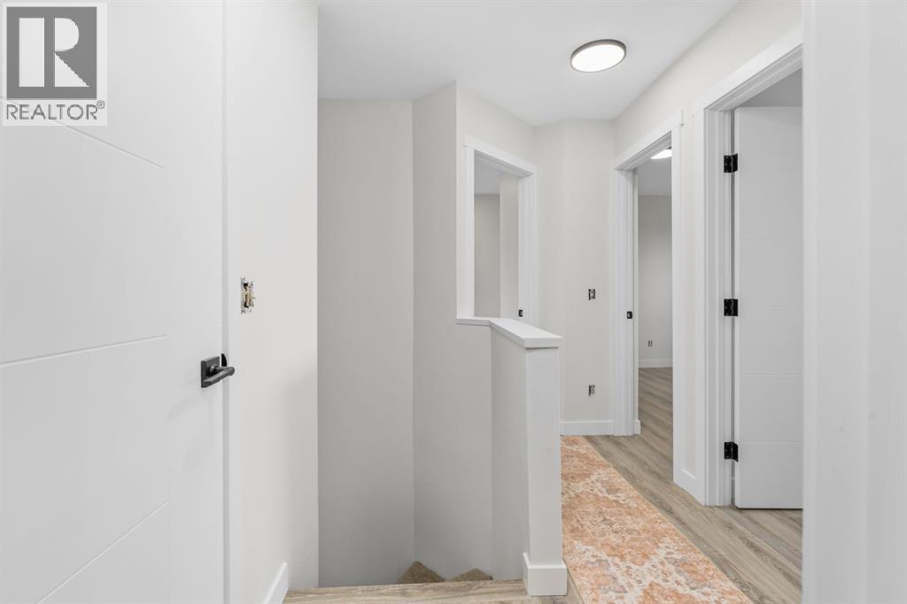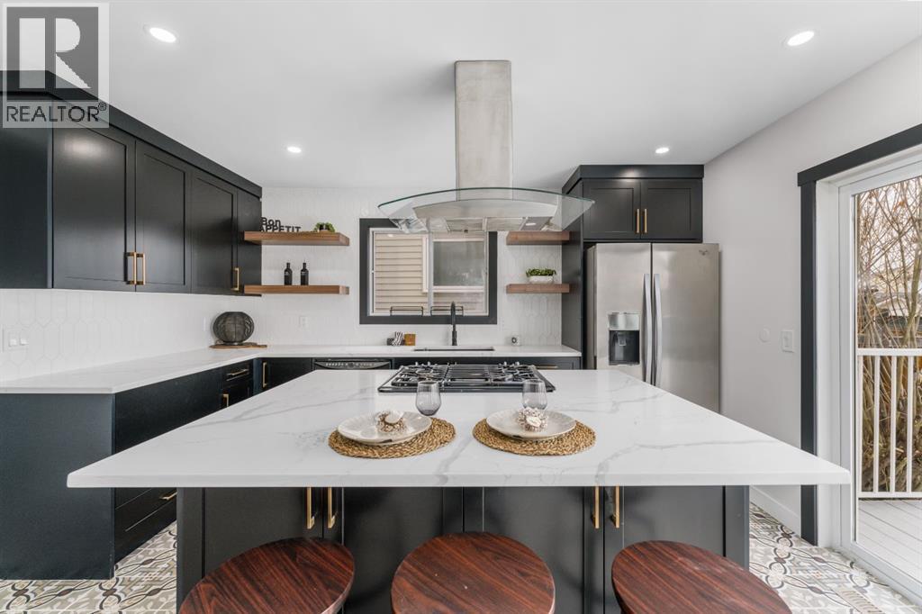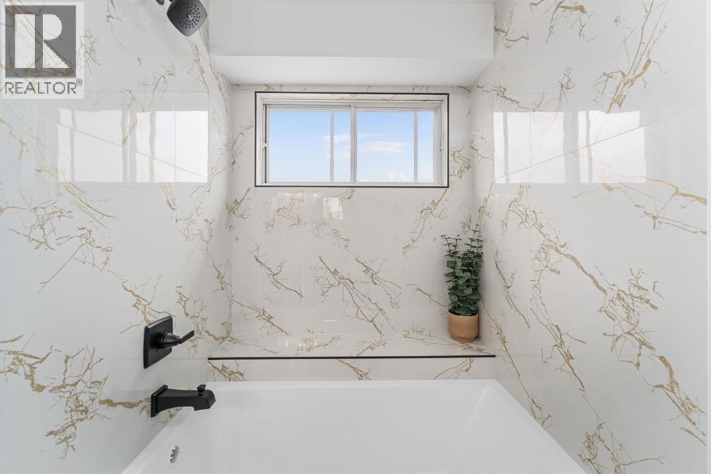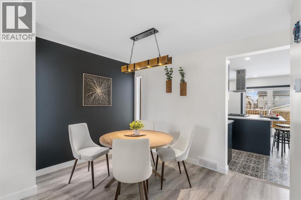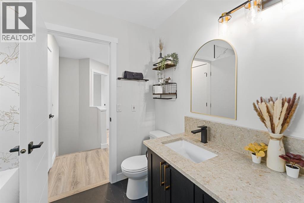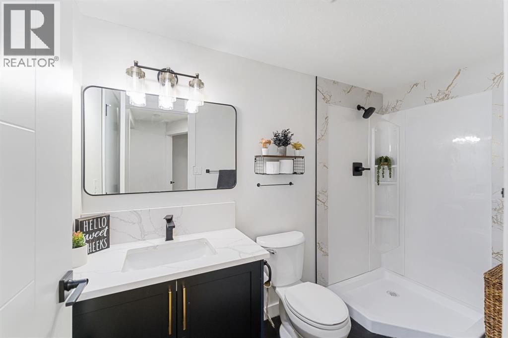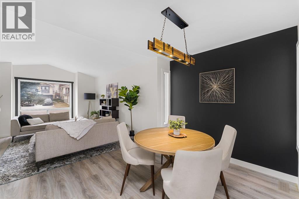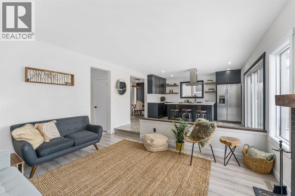Beautifully renovated and ready to impress in Millrise! This 4-bedroom, 2.5-bathroom home has been transformed with modern finishes and thoughtful upgrades throughout. From the moment you walk in, the vaulted ceilings and oversized west-facing window set the stage for a bright, welcoming main floor. The open-concept layout flows into a designer kitchen with striking black cabinetry, a quartz island, and a statement range hood. Brand-new triple-panel sliding doors open to the backyard—where a rebuilt deck, fresh railings, and a new fence create the perfect space for outdoor living. A cozy sunken family room with a wood-burning fireplace adds character and warmth, while the large mudroom and chic 2-piece bath keep the main floor both stylish and functional. Upstairs, the primary suite is a relaxing retreat, highlighted by a custom feature wall and ample closet space. Two additional bedrooms and a fully renovated bathroom with double vanity, custom tile, and stacked laundry complete the upper level.The basement extends your living space with a spacious rec room finished with brand-new carpet, a 4th bedroom, and an upgraded 3-piece bath with a walk-in shower. Set on a quiet street close to schools, parks, shopping, and transit, this home blends style, comfort, and convenience. Everything is done—move in and make it yours! (id:53676)