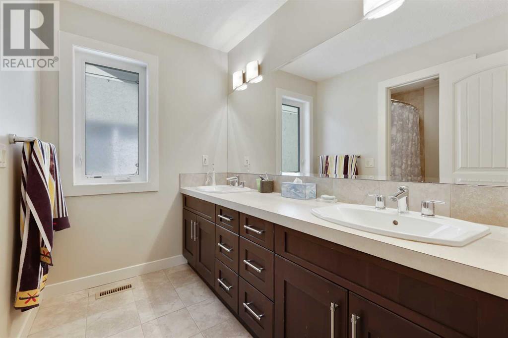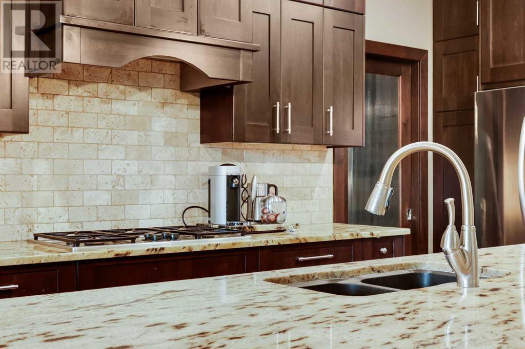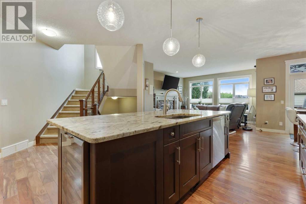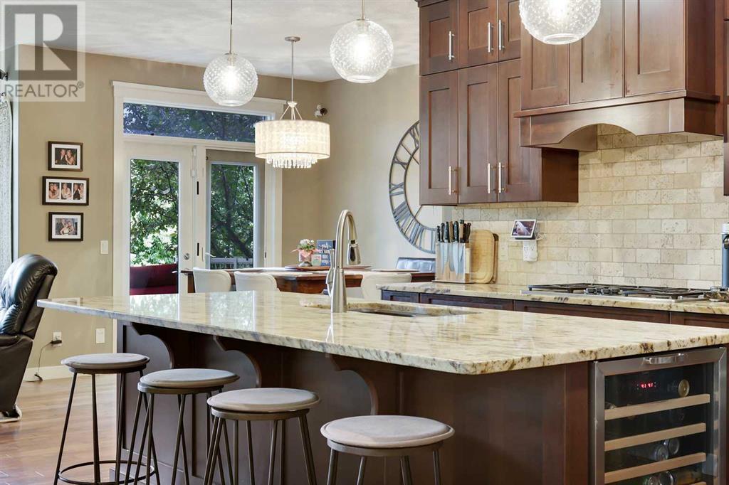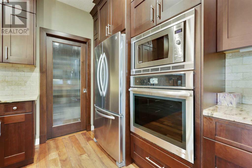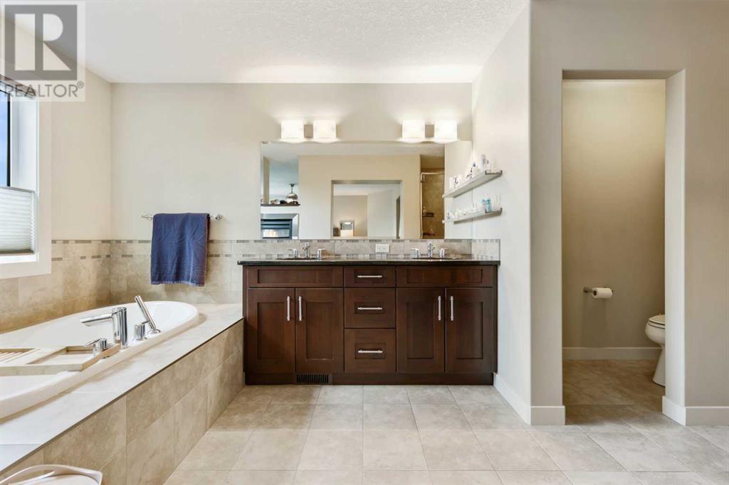 Custom-Built ALBI Executive Home | Stunning Corner Lot on a Quiet Cul-de-Sac | Over 2,620+ Sq Ft of Luxurious Living Space. Welcome to this meticulously designed and extensively upgraded ALBI-built executive home—a perfect blend of elegance, function, and comfort. Situated on a premium corner lot in a quiet cul-de-sac, this air-conditioned gem offers breathtaking west-facing views of mature trees and a serene pond backdrop on the side. From the moment you arrive, you'll be impressed by the home’s rich curb appeal: dramatic roof peaks, Hardie Board siding, a covered front verandah, stone-faced columns, and a 24' x 22' oversized double garage with wood-trimmed door and extended concrete driveway. Every detail has been thoughtfully designed for lasting beauty and performance. Step inside to discover over 2,620 sq ft of finely finished space with 9' ceilings, real hardwood flooring, oversized windows, and high-end finishes throughout. The heart of the home is the chef-inspired gourmet kitchen—complete with ceiling-height custom shaker cabinetry, granite countertops, a five-burner gas cooktop, stainless steel appliances, recessed lighting, and a walk-in pantry room. The large central island with a flush eating bar and undermount sink makes entertaining and everyday living a joy. A spacious breakfast nook offers captivating views and direct access to the upper 10' x 10' deck—ideal for summer barbecues and sunsets. Below, enjoy the lower 18' x 14' patio and hot tub for relaxing evenings with friends and family. The inviting main floor layout includes a generous family room with a stone-faced gas fireplace, custom wood mantel, an executive-style home office near the front entry, and an expansive open foyer—creating a welcoming space to gather and connect. Upstairs, you'll find three generously sized bedrooms, a shared walk-through laundry room with ample storage, and a bonus room perfect for a playroom, media zone, or cozy retreat. The primary bedroom suite is a true sanctu ary featuring large west-facing windows, a two-sided gas fireplace, and a custom walk-in closet. The stunning ensuite includes dual sinks, a deep soaker tub, a frameless glass shower, and a private powder room—designed for ultimate relaxation. This home is loaded with thoughtful upgrades and built-in conveniences, making it move-in ready for your family to enjoy this summer. Pride of ownership is evident in every corner, from the pristine finishes to the intelligent layout and serene location. Homes of this quality and location are rare—don’t miss out! Call your favourite REALTOR® today to schedule your private viewing! (id:53676)