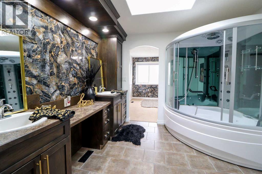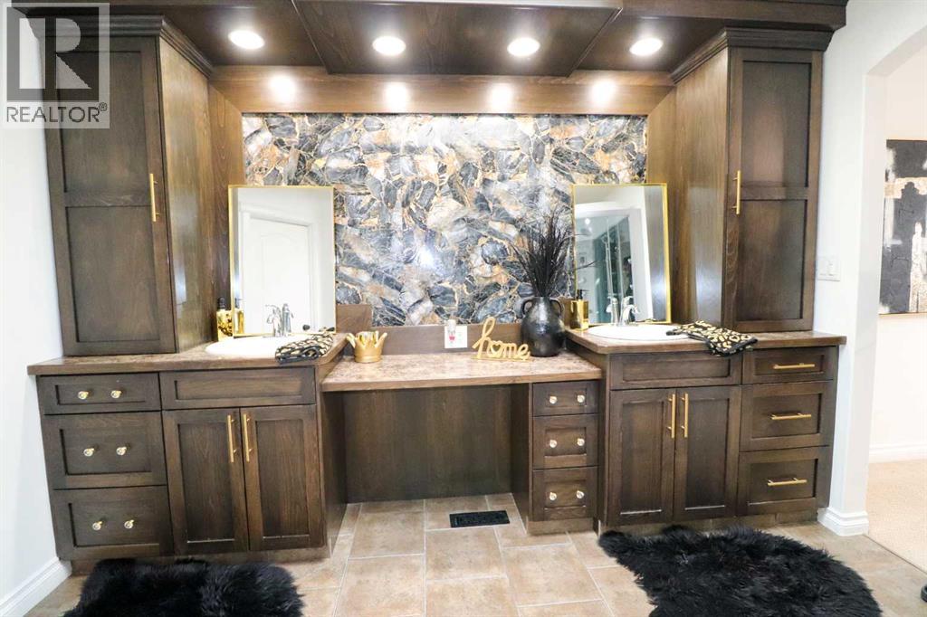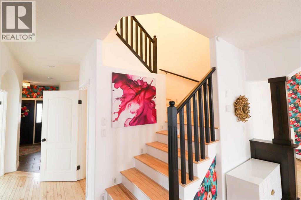 Discover exceptional square footage, elegance, and a peaceful neighborhood setting in this beautifully maintained two-story home with a walkout basement, perfectly situated on a corner lot in the sought-after Heritage Heights community. With over 4,000 sq. ft. of finished living space, this property offers room to grow, entertain, and live in comfort.Recent upgrades within the past year include new lighting and faucets throughout, new appliances, a high-efficiency hot water tank, fresh paint, and updated landscaping. The oversized, extra-tall garage is ideal for hobbyists, car enthusiasts, or anyone needing space for lifts, toys, or storage.Step inside to a welcoming tile entry and custom hardwood flooring. A bright, naturally lit den sits just off the foyer. The gourmet kitchen is a chef’s dream, featuring floor-to-ceiling cabinetry, granite countertops, stainless steel appliances, a large granite island, and a spacious corner pantry.The living room offers a cozy natural gas fireplace with a custom wood mantle, while the adjacent breakfast nook opens to the first of two private decks. A formal dining room with its own garden doors leads to the second deck—perfect for hosting or relaxing outdoors. A convenient laundry room and 2-piece bath complete the main level.Upstairs, you’ll find a massive enclosed bonus/flex room, pre-wired for a 7.1 surround-sound system—ideal as a family movie room or kids’ play space. This level includes three bedrooms, including a generous primary suite with a 5-piece ensuite featuring a tub/shower combo, double vanity, and walk-in closet.The fully finished walkout basement offers a spacious family room, a fourth bedroom, and a 3-piece bathroom with a stand-up shower. Double doors open to a covered patio, extending your living space outdoors.Located just a short walk from the coulees and Heritage Point Park, this home blends luxury, comfort, and an unbeatable location. Call your favorite REALTOR® today so as not miss out on thi s opportunity. (id:53676)