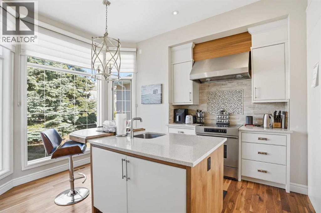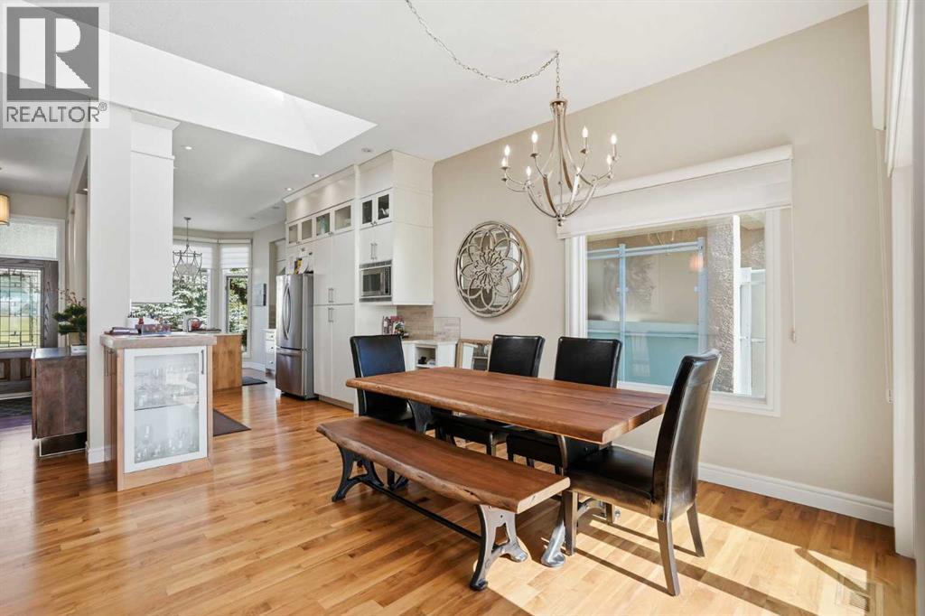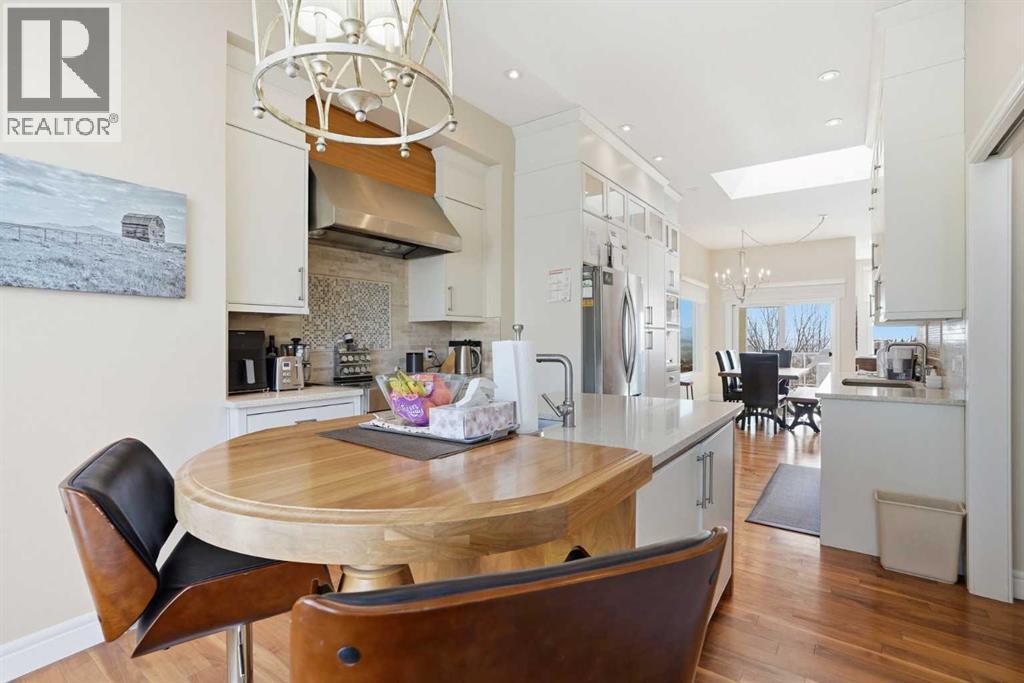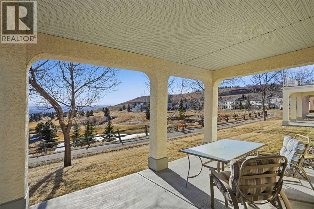 There is a specific feeling that comes with a 180-degree view of the Rockies, and at 40 Eagleview Way, that view is the focal point of the entire home. Situated in the Villas of Gleneagles, this walk-out bungalow was designed to let the landscape do the heavy lifting. Whether you’re looking out over the fairways of The Links of Gleneagles or watching the weather roll across the mountains, the backdrop is constant and unobstructed.The interior layout is intentional, moving from a quiet front foyer and private office into an open main floor that feels both expansive and connected. The ceilings are high, the hardwood is substantial, and the natural light is everywhere. In the kitchen, the focus is on clean lines and utility, centered around a large quartz island and custom white cabinetry that runs to the ceiling. A dedicated skylight ensures the space stays bright even on the rare grey day. The main living area is anchored by a gas fireplace with custom built-ins, and it opens directly onto a wrap-around deck built for people who want to spend time outside.The primary suite is a private retreat on the main level, notable for an ensuite that features its own skylight—a small detail that makes a big difference in the morning. Downstairs, the walk-out level is just as comfortable as the main floor, thanks to in-floor heating and luxury vinyl plank flooring, with 2 picture windows (84" x 68" each) facing the Rockies to the SW. It’s a functional space with a second fireplace, two legitimate guest bedrooms, a 4-pc bath, and clever additions like 2 built-in mini-fridges and deep storage. With central air conditioning, a layout that prioritizes a low-maintenance lifestyle, and maintenance-free grass and snow removal, this is a home for those who want the scale and views of a mountain estate without the constant upkeep. Reach out to me or call your favourite Realtor® to book your private showing today! (id:53676)