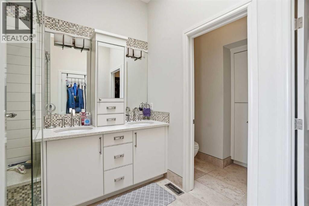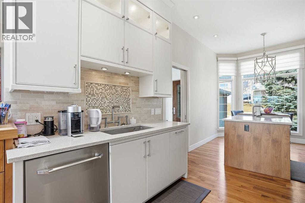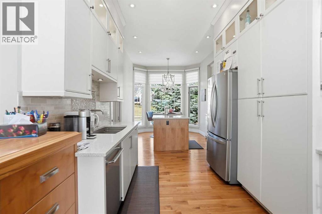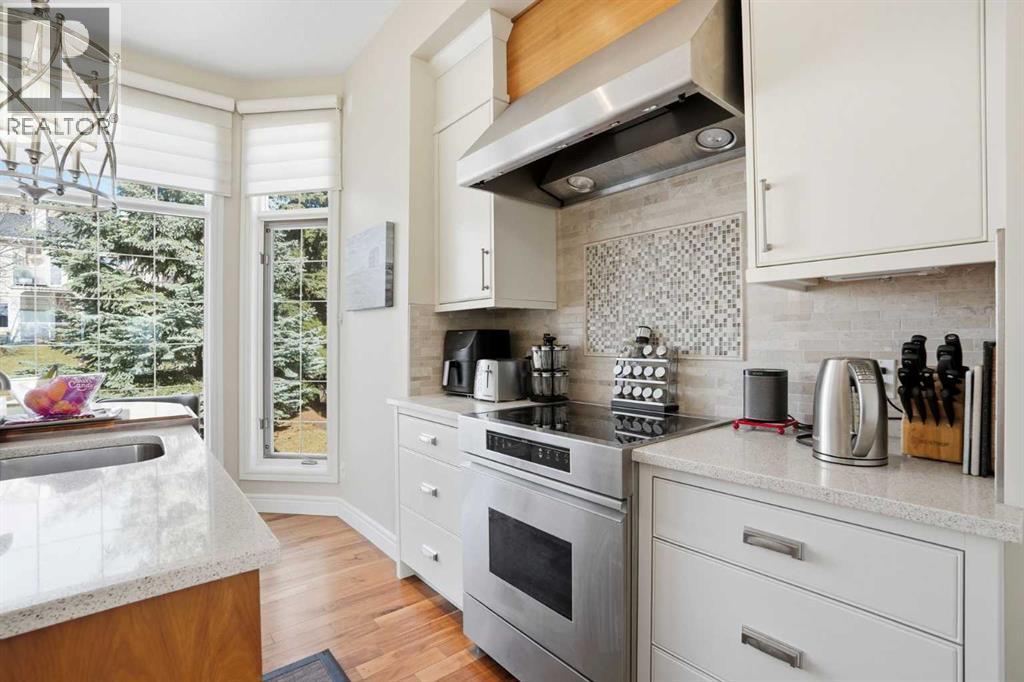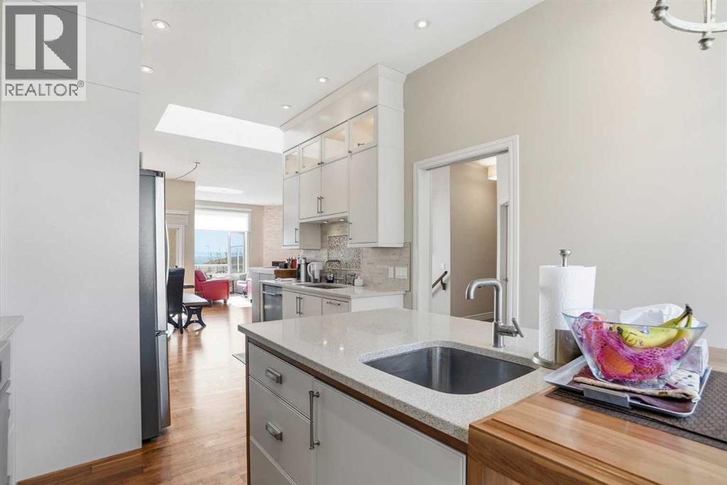 There is a specific feeling that comes with a 180-degree view of the Rockies, and at 40 Eagleview Way, that view is the focal point of the entire home. Situated in the Villas of Gleneagles, this walk-out bungalow was designed to let the landscape do the heavy lifting. Whether you’re looking out over the fairways of The Links of Gleneagles or watching the weather roll across the mountains, the backdrop is constant and unobstructed.The interior layout is intentional, moving from a quiet front foyer and private office into an open main floor that feels both expansive and connected. The ceilings are high, the hardwood is substantial, and the natural light is everywhere. In the kitchen, the focus is on clean lines and utility, centered around a large quartz island and custom white cabinetry that runs to the ceiling. A dedicated skylight ensures the space stays bright even on the rare grey day. The main living area is anchored by a gas fireplace with custom built-ins, and it opens directly onto a wrap-around deck built for people who want to spend time outside.The primary suite is a private retreat on the main level, notable for an ensuite that features its own skylight—a small detail that makes a big difference in the morning. Downstairs, the walk-out level is just as comfortable as the main floor, thanks to in-floor heating and luxury vinyl plank flooring, with 2 picture windows (84" x 68" each) facing the Rockies to the SW. It’s a functional space with a second fireplace, two legitimate guest bedrooms, a 4-pc bath, and clever additions like 2 built-in mini-fridges and deep storage. With central air conditioning, a layout that prioritizes a low-maintenance lifestyle, and maintenance-free grass and snow removal, this is a home for those who want the scale and views of a mountain estate without the constant upkeep. Reach out to me or call your favourite Realtor® to book your private showing today! (id:53676)