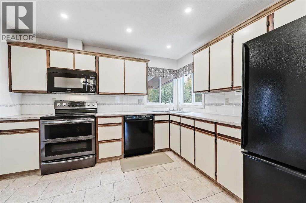 HUGE PIE LOT | QUIET CUL-DE-SAC | CENTRAL A/C | HEATED DOUBLE GARAGE | WALKABLE TO FISH CREEK!This lovely fully finished 4 level split home offers numerous upgrades and an absolutely massive 8,320 sqft pie-shaped lot at the end of a quiet cul-de-sac. The property provides a very functional floor plan with numerous living spaces and is close proximity to an abundance of community amenities including parks, playgrounds, sports courts and fields, schools, shopping, restaurants, MAX Yellow/BRT Transit, Canyon Meadows Golf Course and the natural beauty of Fish Creek Provincial Park.The main level of this home blends natural light, open space and everyday functionality. A spacious front entry opens to the living room, where large picture windows fill the space with sunshine, creating a bright and welcoming atmosphere for relaxing and entertaining. Just off the living room, the dining area offers plenty of room for family meals and connects easily to the back deck for seamless indoor-outdoor flow. The kitchen has ample cupboard and cabinet space, upgraded appliances, a drinking water tap and space for a cozy dinette, perfect for everyday breakfasts. While move-in ready, the space also presents excellent potential for a modern refresh. The above-grade lower level extends the living space with a warm family room anchored by a stone-faced gas fireplace and is ideal for cozy evenings or casual get-togethers. A bright flex room provides versatility as a home office, hobby space or guest room, while a dedicated laundry area, a convenient half bath and a practical back entry with storage add everyday convenience and easy access to the yard and deck. Upstairs, family living takes centre stage with 3 comfortable bedrooms and 2 full baths. The spacious primary suite features a 3-piece ensuite and a large closet, while the 2 additional bedrooms offer flexibility for kids, extended family or guests. The main 4-piece bathroom includes upgraded sink and tub fixtures and a handy line n closet. The basement provides abundant flexible space with a large open area perfect for a rec room, home gym or media space, along with a workshop featuring built-in benches and shelving. The crawl space is a standout feature, offering higher ceilings than typical for easy access, plus extensive storage as well as cold room areas, a laundry sink and an additional refrigerator.Outdoors, this one-of-a-kind massive pie lot is as functional as it is inviting. A generous covered deck sets the stage for barbecues and summer evenings, while the huge garden, complete with a self-watering system, rain barrels, compost bins and fruit trees, makes sustainability simple. A storage shed and plenty of green space round out this exceptional yard. The list of additional features includes upgraded siding, shingles, windows and central AC, rubber paved front driveway and sidewalk, oversized double garage with a Calcana gas heater, built-in vacuum system, window coverings and more. Welcome Home. (id:53676)