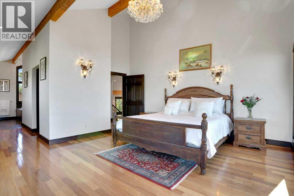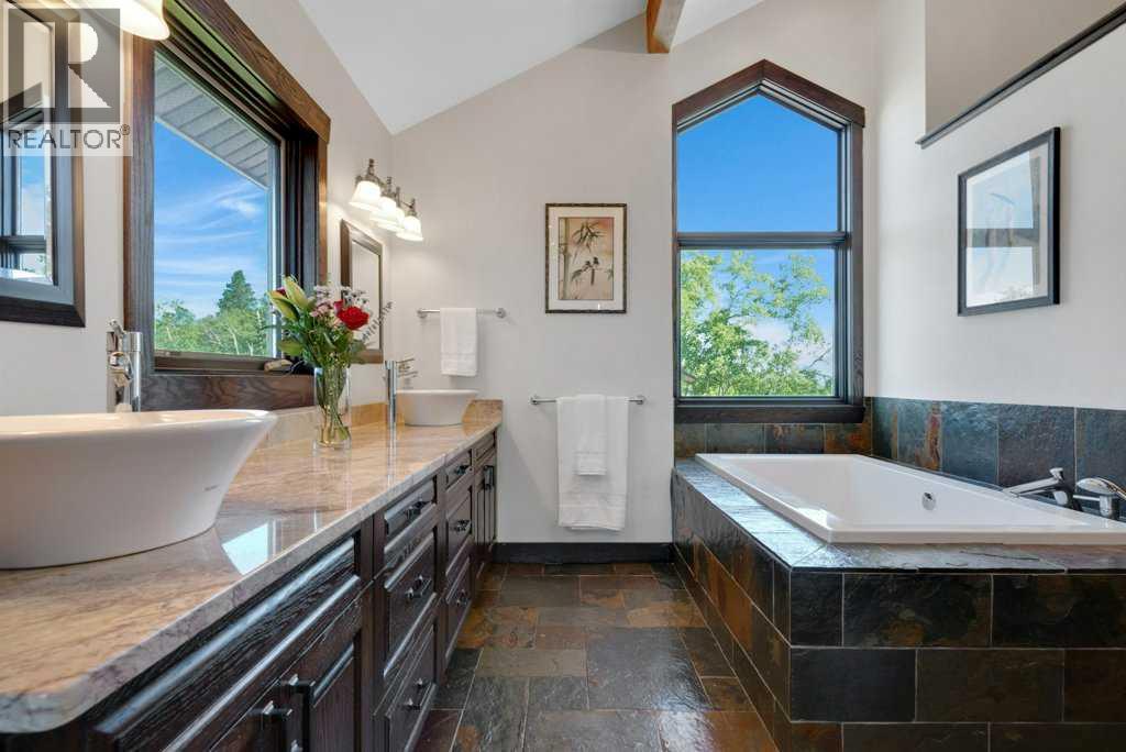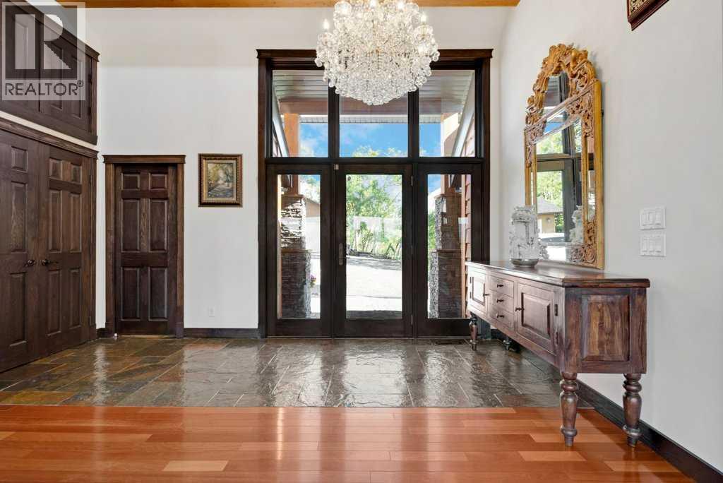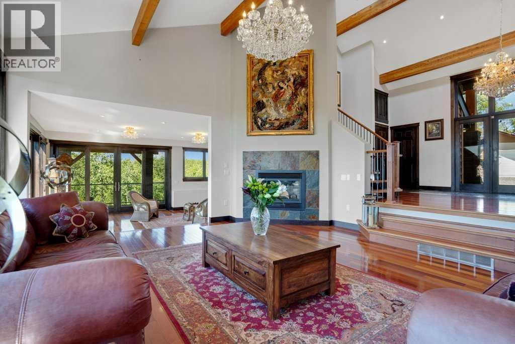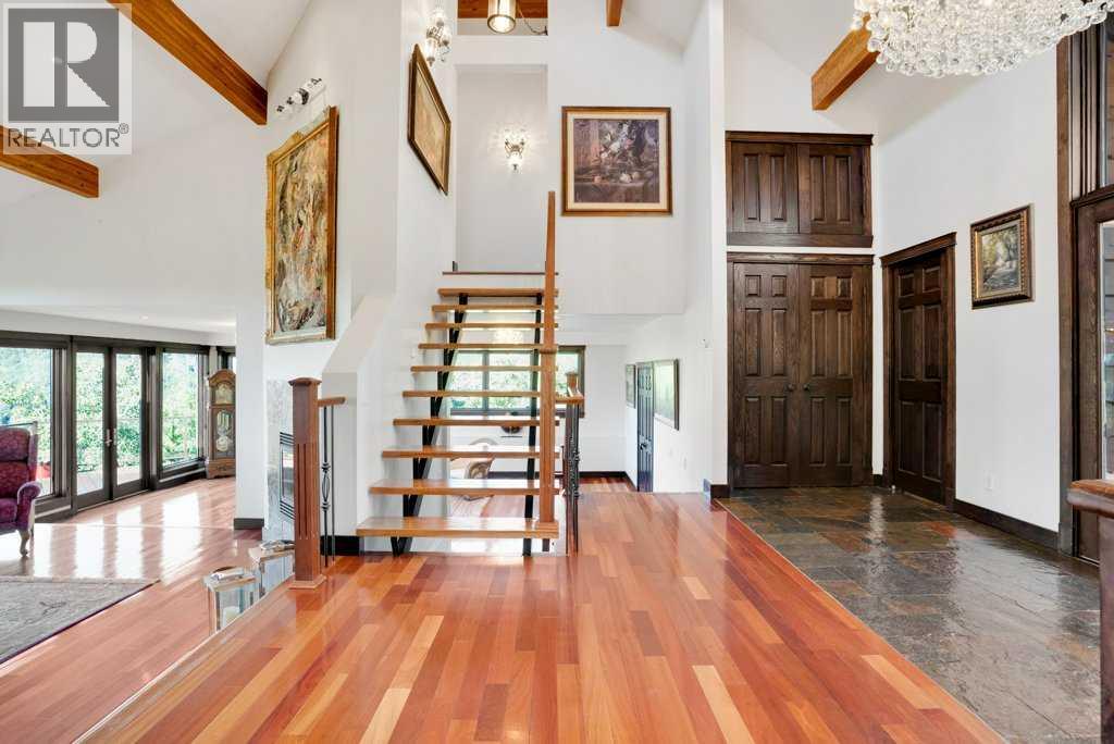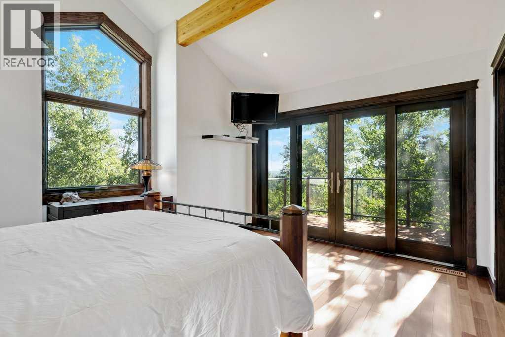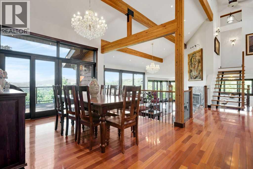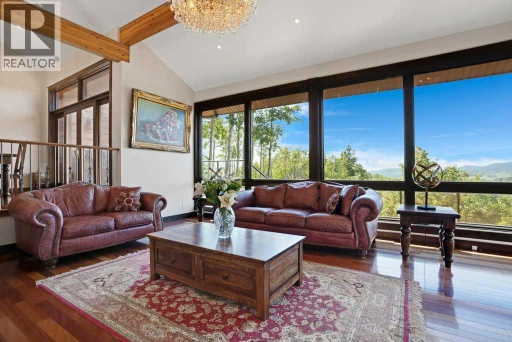 The Bragg Creek Trifecta: many properties have one of these three coveted things, but very few have it all! First, a beautiful home. Redesigned by award winning, internationally acclaimed designer, John Haddon, the 3968 sq. ft. of living space was taken down to the studs and rebuilt, inside and out, with the finest materials and craftsmanship. Second, incredible views of the mountains and forest. Given the seclusion and privacy, not a single curtain on any of the 55 windows impedes the breathtaking views afforded from every room. The third and most rare attribute of all, the thing that makes this “the hat trick”, is direct access to Kananaskis Country! That’s right, there is a private gate that connects to one of the most famous, beautiful, backcountry areas in Alberta, where you can hike or bike or ride for days. This home, sitting on 23 acres, is part of a small exclusive development of properties which span a ridge and directly border K-Country - the biggest backyard of all! Entering the home, the first thing you notice is the airy interior space, with cathedral ceilings and huge windows. The slate foyer gives way to Brazilian cherry hardwood floors, flowing throughout the balance of the home. Resisting the urge to immediately rush to the windows and deck system, to the left is the dining room and kitchen with quartz countertops and high-end appliances. Further on are two high-ceiling bedrooms, each with their own access to the wrap-around deck and connected by a large Jack and Jill 5-piece en suite. The upstairs is entirely devoted to the primary suite, which is unparalleled, with the huge windows and private deck all giving a new perspective to the vistas beyond. The 6-piece bathroom and walk-in closet complete this lofty sanctuary. The walk out lower level features a bar, exercise room, office area, expansive rec room with gas fireplace, 3-piece bath, and French doors to the walk-out patio and huge deck beyond. The property is completed by an insulated and dr ywalled triple car garage. You’re intrigued, I can tell, and further investigation is needed. Explore using our streaming video and 3-D tour; and then take the next step and make the Trifecta your own. (id:53676)