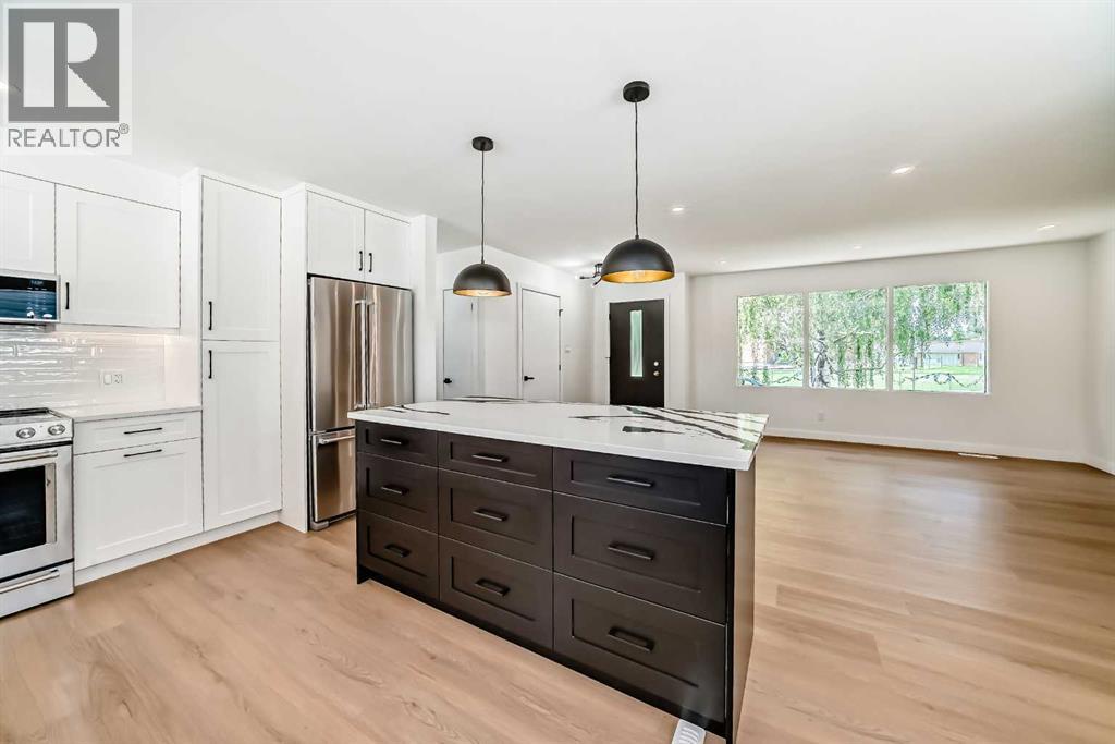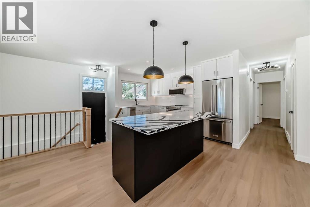 Open House: October 4, 12 - 2 PMWelcome to this stunningly renovated home in the desirable Varsity community, where every detail has been thoughtfully considered. With a modern open floor plan and luxury vinyl plank flooring throughout, this residence is perfect for both relaxed living and stylish entertaining.The main level features a bright family room highlighted by a striking fireplace wall, a spacious dining area, and a chef’s kitchen equipped with brand-new appliances, a large island, quartz countertops, and under-cabinet lighting. The primary bedroom includes a private 2-piece ensuite, complemented by two additional generously sized bedrooms and a full bathroom.The fully developed basement is ideal for family gatherings or hosting guests, featuring a large recreation room with another elegant fireplace wall, two additional bedrooms, and a sleek 3-piece bathroom with a seamless glass shower. You'll also enjoy the convenience of a brand-new washer and dryer, along with a new furnace and hot water tank for added peace of mind.Step outside to the professionally landscaped backyard, perfect for summer BBQs, and take advantage of the double detached garage for ample parking.Conveniently located near top-rated schools, Market Mall, the University of Calgary, and public transit, this home offers the perfect blend of luxury, comfort, and convenience. Don’t miss out on this exceptional opportunity! (id:53676)