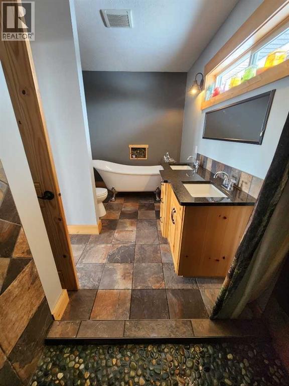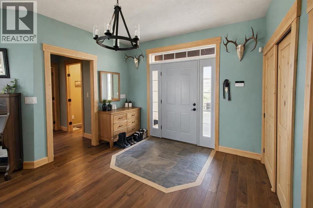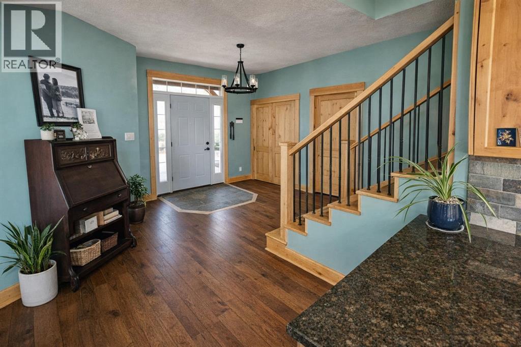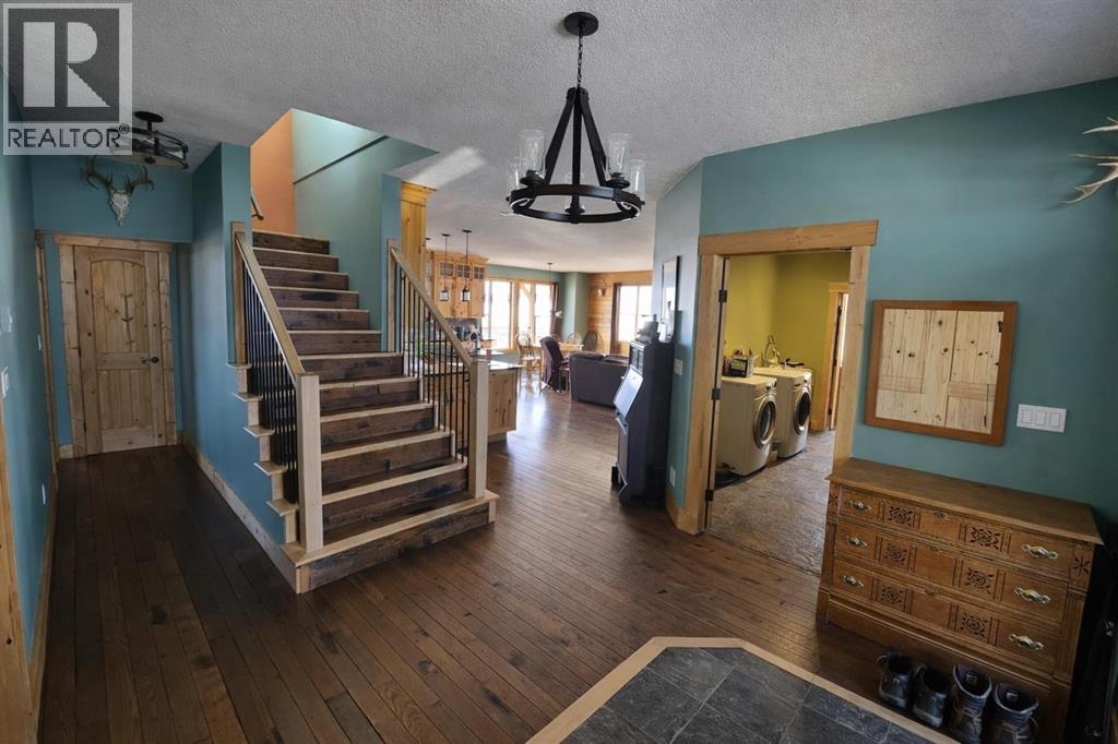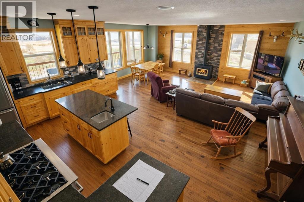 Off-grid paradise just 12 minutes from Stettler. This exceptional property offers over 3,400 sq ft of living space with 5 bedrooms and 4.5 bathrooms, set on approximately 150 acres—including ±100 acres of mature treed wildlife habitatand ±40 acres of productive cropland. Privacy is unmatched, with the nearest neighbour half a mile away, Crown land to the south and Nature Conservancy land to the east.The main floor features two bedrooms with private ensuites and large closets, an open-concept kitchen, dining, and living area with 9’ ceilings, hardwood flooring, and granite countertops throughout. A striking wood stove anchors the living space, radiating warmth while large windows capture breathtaking views in every direction. The kitchen is equipped with a stainless steel 8-burner, dual-oven propane range, ideal for entertaining or serious cooking. An office, half bath, and laundry room complete the main floor, with convenient access to the attached garage through a slate-tiled mudroom.A grand staircase leads to the upper-level primary retreat, featuring an ensuite bathroom, two walk-in closets, and access to a second-floor deck—the perfect spot to take in the peace, privacy, and sweeping bird’s-eye views.The walkout lower level offers in-floor heating, two additional bedrooms, a full bathroom, roughed-in wet bar area, cold storage, and a spacious living area ready for your personal finishing touches (stippled ceiling, primed walls). The mechanical room houses the 1,100-gallon water cistern, furnace, in-floor heating tank, hot water tank, power inverter, and deep-cycle battery bank.Outdoors, the yard site includes a mowed walking trail, secluded firepit area, ground-mounted solar array, a 200 sq ft multi-purpose/wood shed with additional solar panels, a smaller lean-to garden/wood shed, and young shelterbelt evergreens. A large, level area within the yard is ideal for a future shop. The surrounding woods feature multiple trails for walking or quadding, a spec tacular toboggan hill, and a slough that attracts abundant wildlife and doubles as a classic outdoor hockey rink in winter.Power and water are available on the west side of the property, and subdivision is possible. (id:53676)