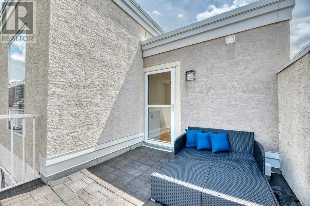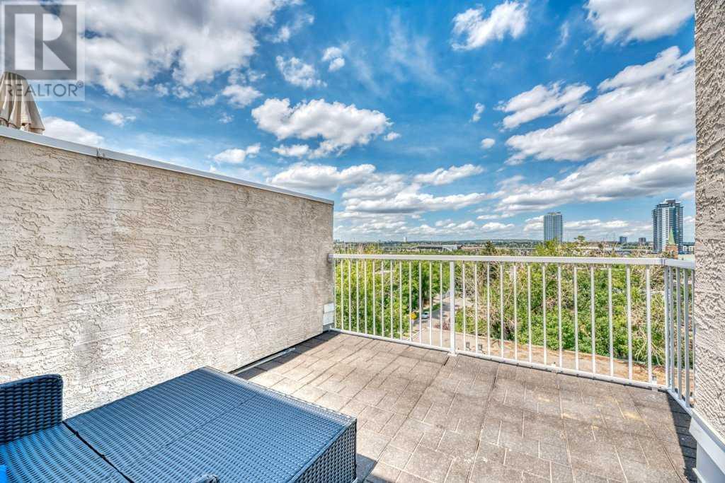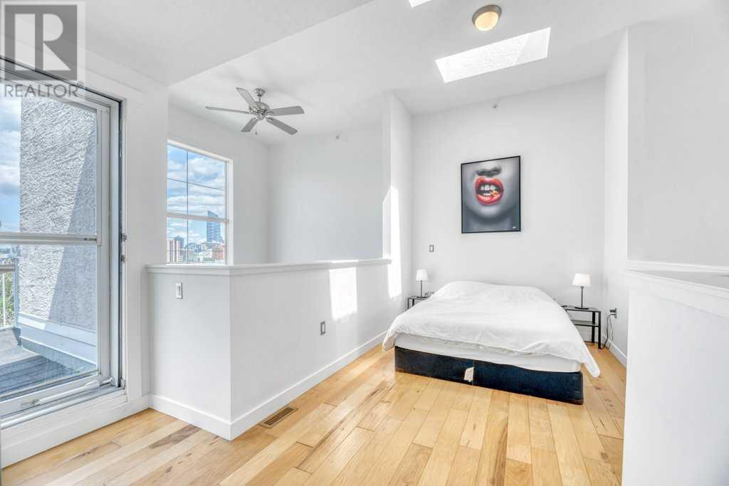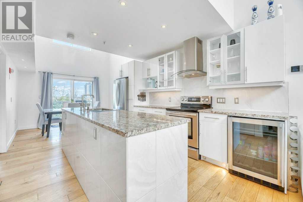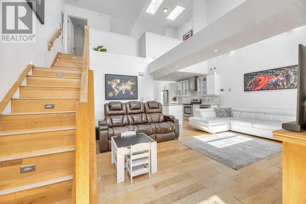 Experience luxury, volume, and privacy in this rare top-floor, lofted penthouse in Sunalta. Spanning 1,092 sq ft over two levels, this one-bedroom + loft + den layout features soaring 17-foot vaulted ceilings, skyline views, and two private outdoor spaces—including a massive rooftop patio ideal for entertaining or quiet evenings under the stars.The open-concept kitchen is fully renovated with granite counters, stainless steel appliances, island seating, and custom cabinetry. Enjoy two full bathrooms, a main-level den/flex space, and a dramatic second-floor loft perfect for a second bedroom, creative studio, or media retreat.Stay comfortable year-round with the newer high-efficiency furnace and central A/C installed in 2023. The unit includes in-suite laundry, smart thermostat, hardwood floors, and a titled underground parking stall.Located in a quiet, well-managed building with secure access and low condo fees. Walk to Sunalta LRT, 17th Ave restaurants, bike paths, and downtown core in minutes.This is inner-city living with volume, privacy, and finishings rarely seen under $500K. Flexible possession. Move-in ready and ready for your personal touches. (id:53676)