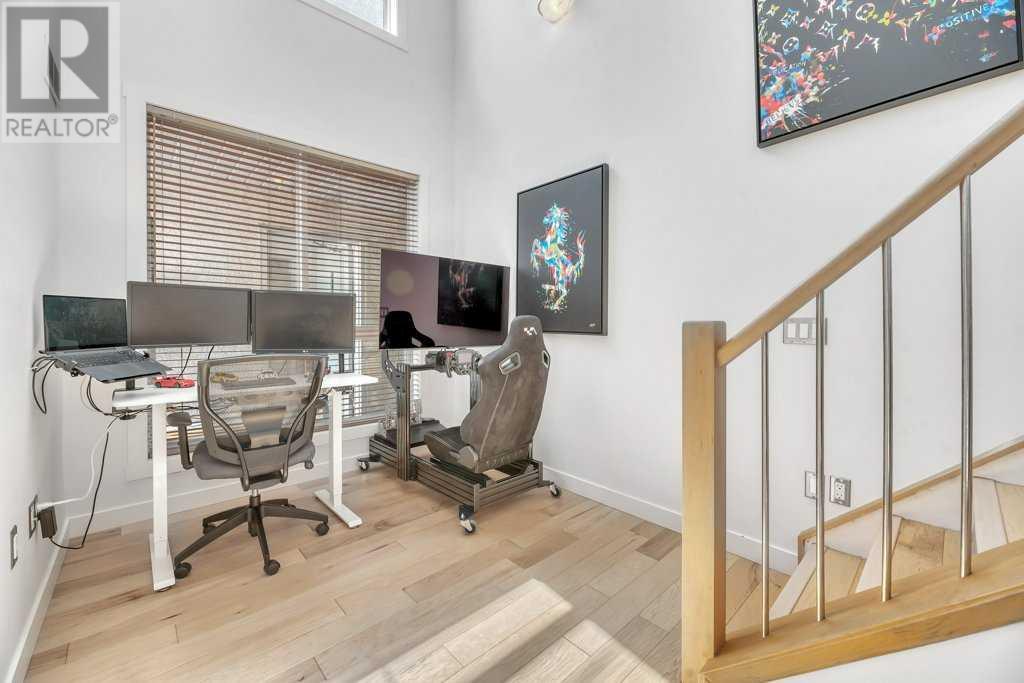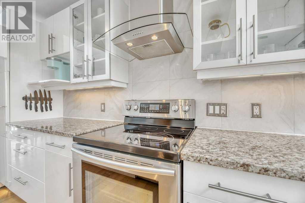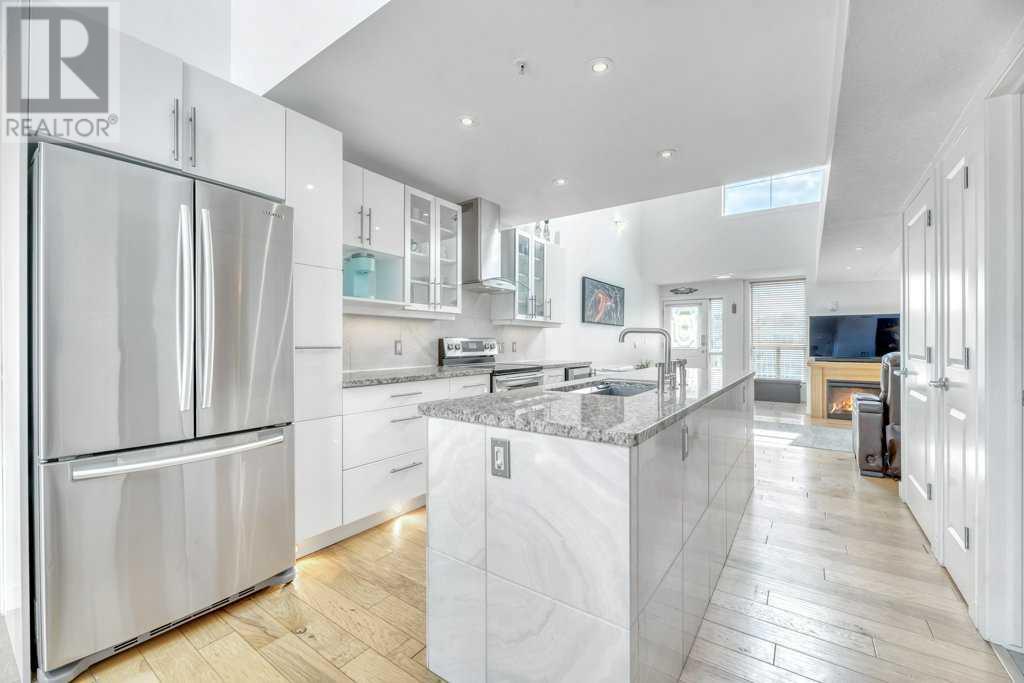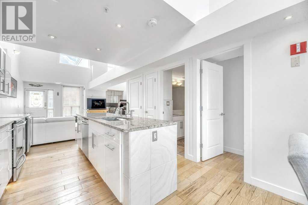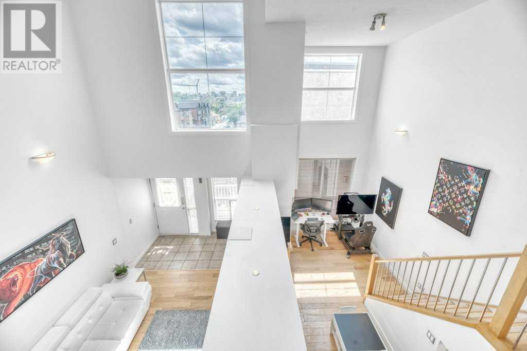 Experience luxury, volume, and privacy in this rare top-floor, lofted penthouse in Sunalta. Spanning 1,092 sq ft over two levels, this one-bedroom + loft + den layout features soaring 17-foot vaulted ceilings, skyline views, and two private outdoor spaces—including a massive rooftop patio ideal for entertaining or quiet evenings under the stars.The open-concept kitchen is fully renovated with granite counters, stainless steel appliances, island seating, and custom cabinetry. Enjoy two full bathrooms, a main-level den/flex space, and a dramatic second-floor loft perfect for a second bedroom, creative studio, or media retreat.Stay comfortable year-round with the newer high-efficiency furnace and central A/C installed in 2023. The unit includes in-suite laundry, smart thermostat, hardwood floors, and a titled underground parking stall.Located in a quiet, well-managed building with secure access and low condo fees. Walk to Sunalta LRT, 17th Ave restaurants, bike paths, and downtown core in minutes.This is inner-city living with volume, privacy, and finishings rarely seen under $500K. Flexible possession. Move-in ready and ready for your personal touches. (id:53676)