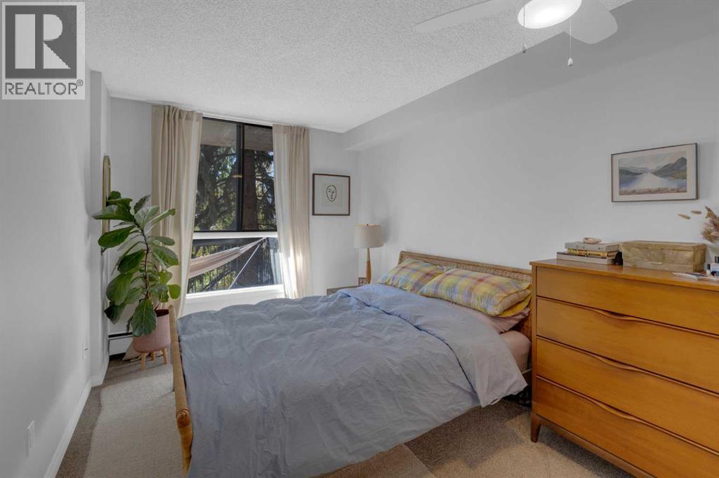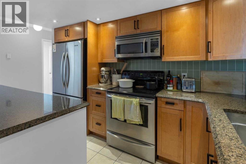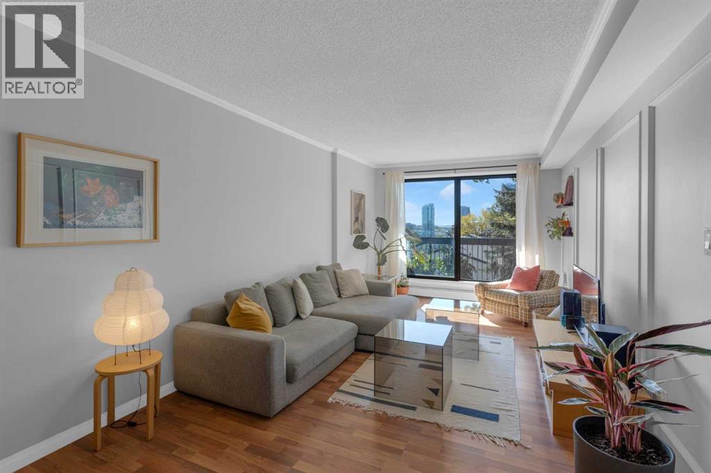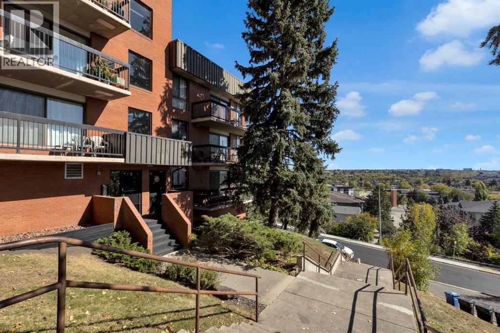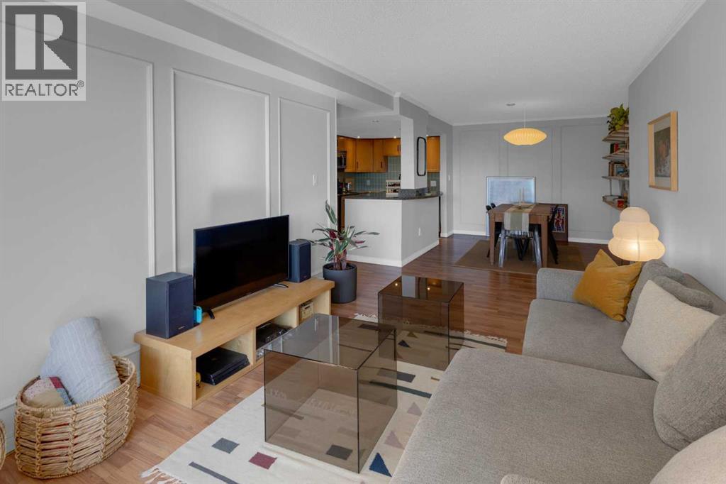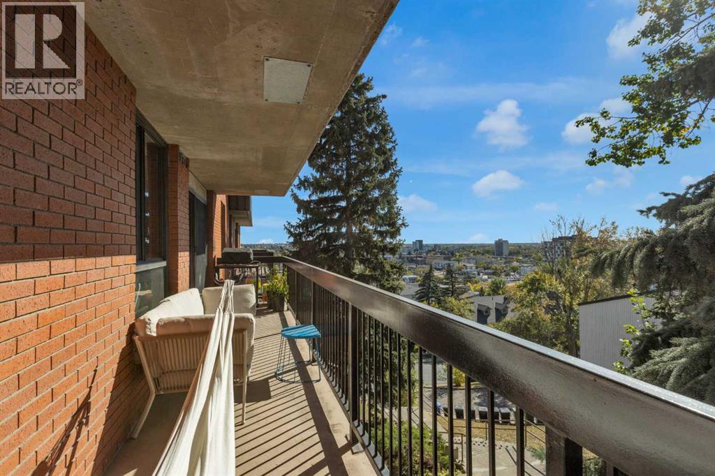 Welcome to your serene city sanctuary perched on a quiet, no-through street in one of Calgary’s most desirable locations. This thoughtfully updated 2-bedroom home offers unobstructed panoramic views of East Village, Bridgeland, and even a front-row seat to the Stampede fireworks — all framed by mature trees right outside your windows for added privacy and charm. With a south-facing orientation, natural light pours in throughout the day, while the balcony above provides strategic summer shading, keeping your home comfortably cool. Step out onto your sprawling private balcony — large enough for a BBQ, patio furniture, potted garden, and even a hammock — and take in the fresh air and city skyline. Inside, the updated kitchen features granite countertops, a new tiled backsplash, a functional island, and a cleverly integrated European-style front loading washer/dryer system. The adjacent dining area includes stylish shelving and a designer Herman Miller pendant light, creating a perfect space for entertaining. Stylish wall paneling adds architectural interest, while generous storage solutions — including a walk-in storage room, linen closet, large entry closet, and spacious bedroom closets — offer room for everything from bikes and extra tires to seasonal décor. The second bedroom/office features custom built-in shelving ideal for books, art, or files. This well-managed, concrete building is known for its quiet, respectful community and exceptional upkeep by long-standing board members and diligent property management. Units here rarely come available. Additional highlights include Secure underground parking with a recycling room, Garbage chute conveniently located on your floor, New ceiling fans in bedrooms and updated lighting in hallway, Access to a rooftop patio and 3rd-floor sauna, Walking distance to downtown, Bridgeland, Crescent Heights, Inglewood, and Kensington, Just steps to Rotary Park, Blush Lane, and Luke’s Drug Mart for everyday essentials. If you're looki ng for a beautiful, light-filled home with unbeatable views, seamless access to the city’s best neighbourhoods, and a true sense of community — this is the one. (id:53676)