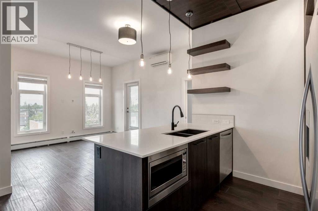 2 bedroom 2 bathroom Top Floor Home. Souther exposure floods this modern home with natural light all day. But dont worry there is Air Conditioning to keep you cool on those hot summer days. Bedrooms are on opposite sides of the common living spaces. The striking kitchen opens to the living room and has stainless steel built in appliances, a countertop gas stove and sleek hidden hood fan. An amazing location just 5 blocks to the LRT station and a stones throw from vibrant 17th ave. One underground parking stall in the heated parked. Out os suite Storage locker on the same floor as the home. This building also offers secure bike storage, and underground visitor parking stalls. Owner occupied since new. This hame has been gently lived in and immaculately maintained. (id:53676)