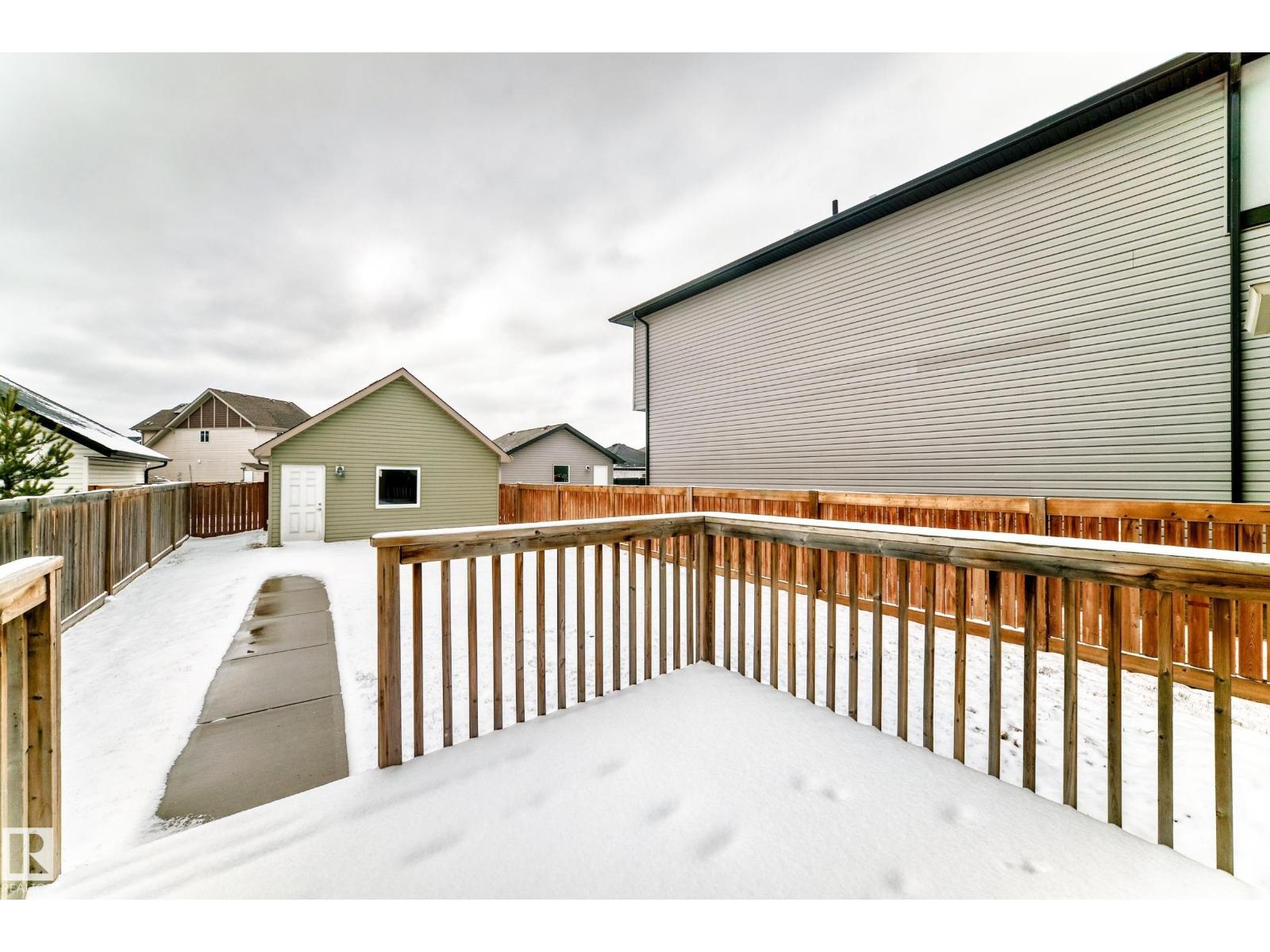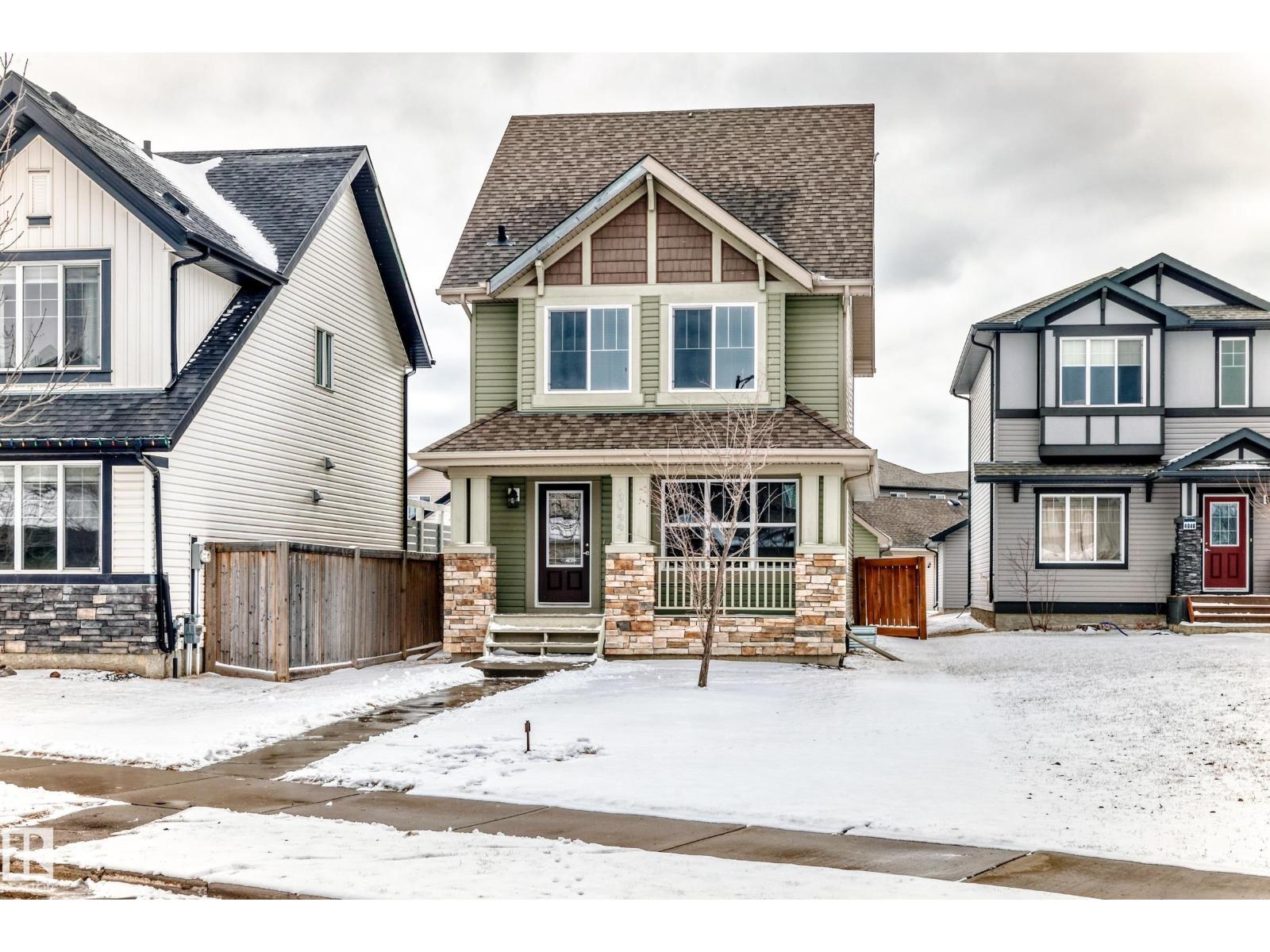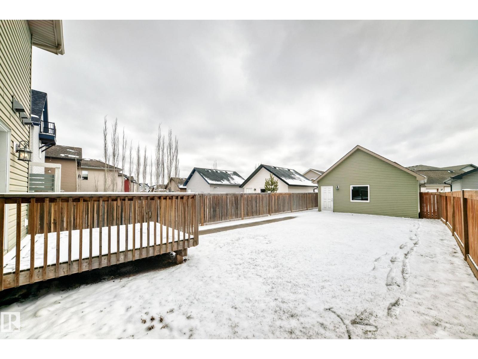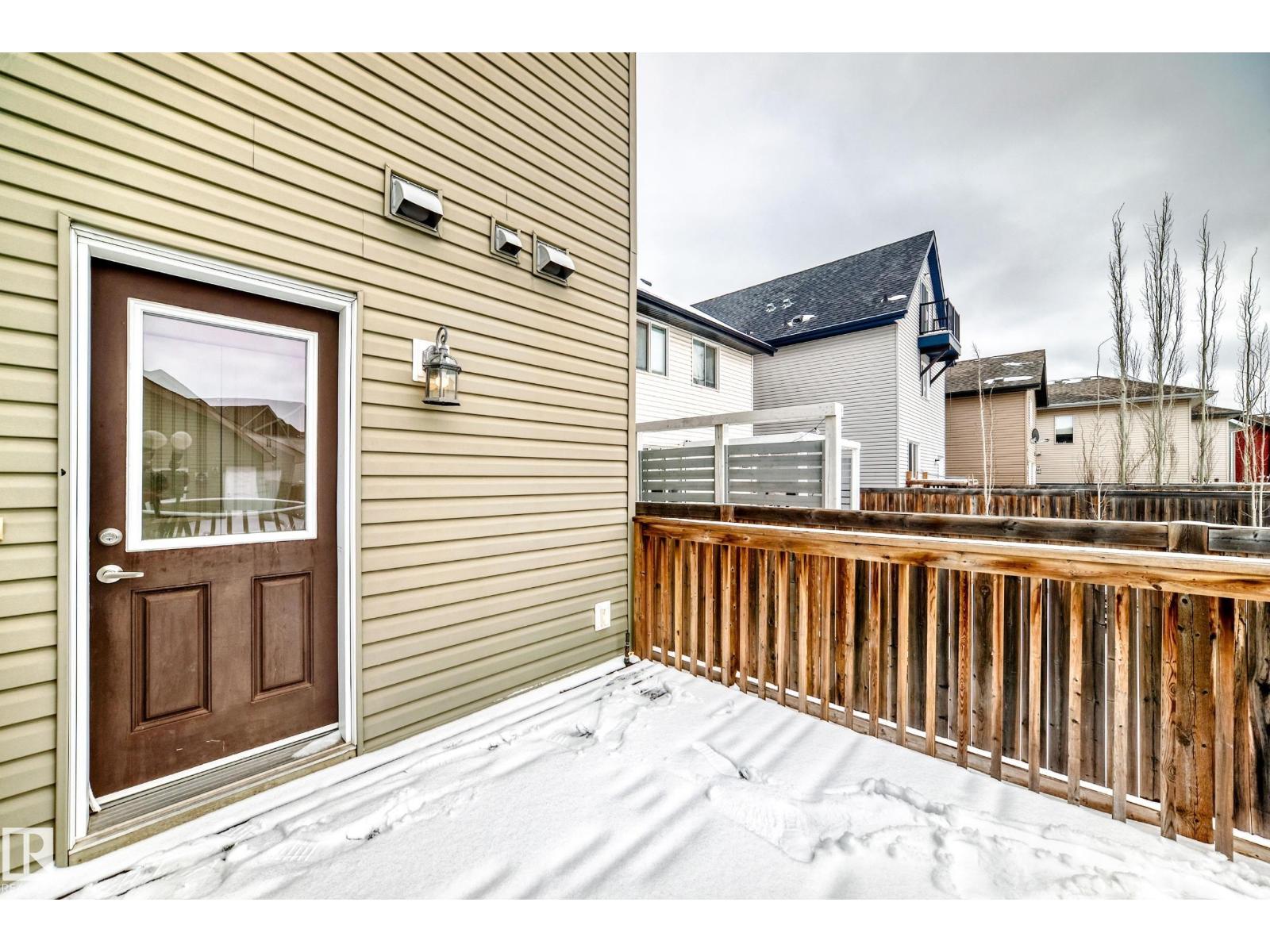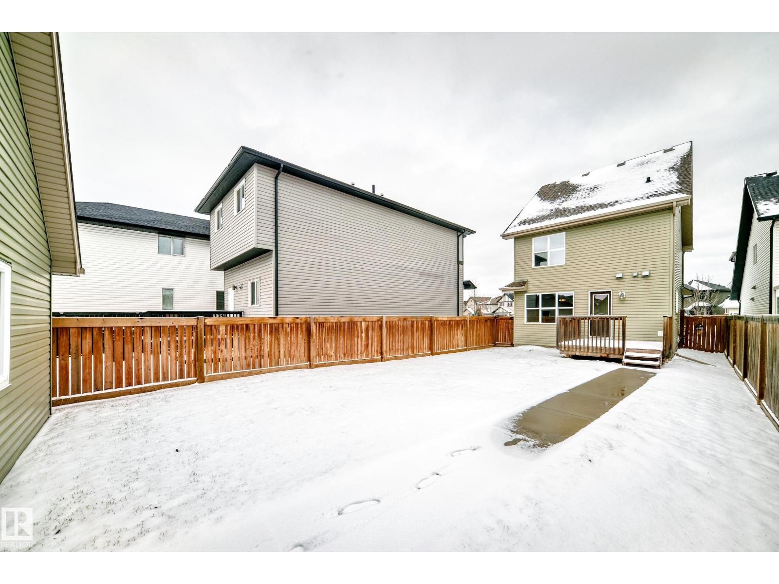 One of the best locations in Allard, quiet residential street. Walk to school, playground, parks, community skating rink just a couple blocks away. Welcoming front veranda into this 1777sqft, 3 story home ideal for the family & entertaining. Large front entry with double closet, hardwood floors through out the main floor area. Spacious and sunny living room. Kitchen has a massive walk-in pantry, lots of cabinets, island, all appliances stay. Great sized dining room area, back entry closet, 2 piece bath and a door to the deck. Upstairs on the 2nd. level is the primary bedroom, 4 piece ensuite, walk-in closet. 2 other big bedrooms w/ double closets and 4 piece bath. 3rd level is super large Bonus room, vaulted ceilings. Basement is wide open with a good layout, laundry and utility area. Completely finished landscaped, fenced big back yard. Gas BBQ line on sun deck, double detached garage. Allard Community has all the conveniences, amenities, restaurants, Highways, Airport, transit, South Edmonton! (id:53676)